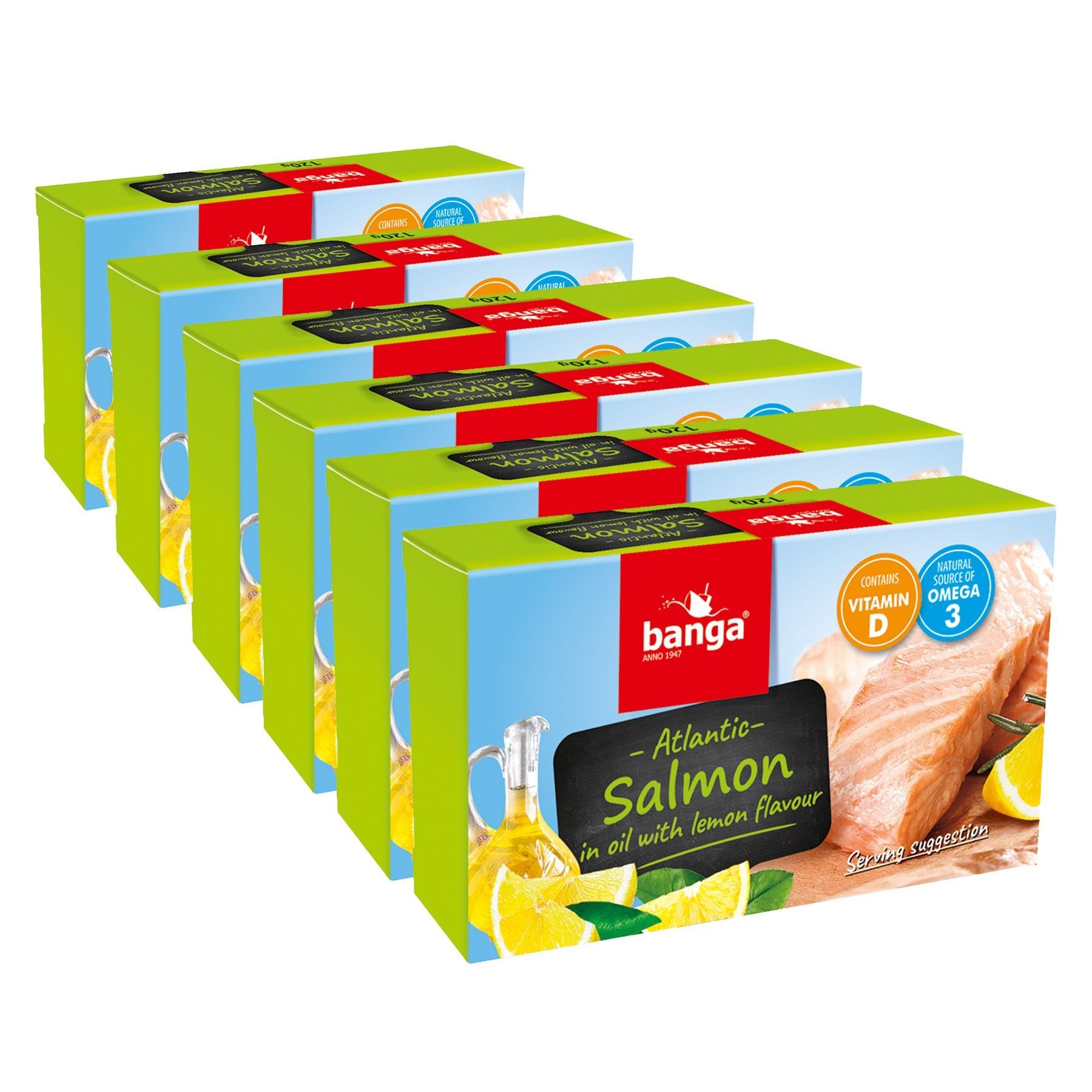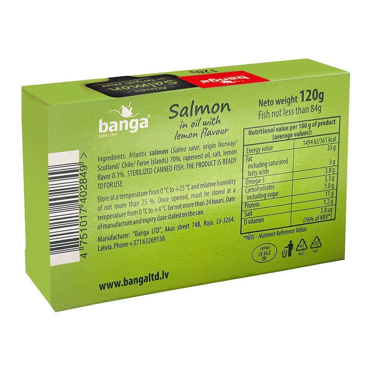Banga Atlantischer Lachs in Öl mit Zitronenaroma 3x 120g in der Dose mit Omega 3