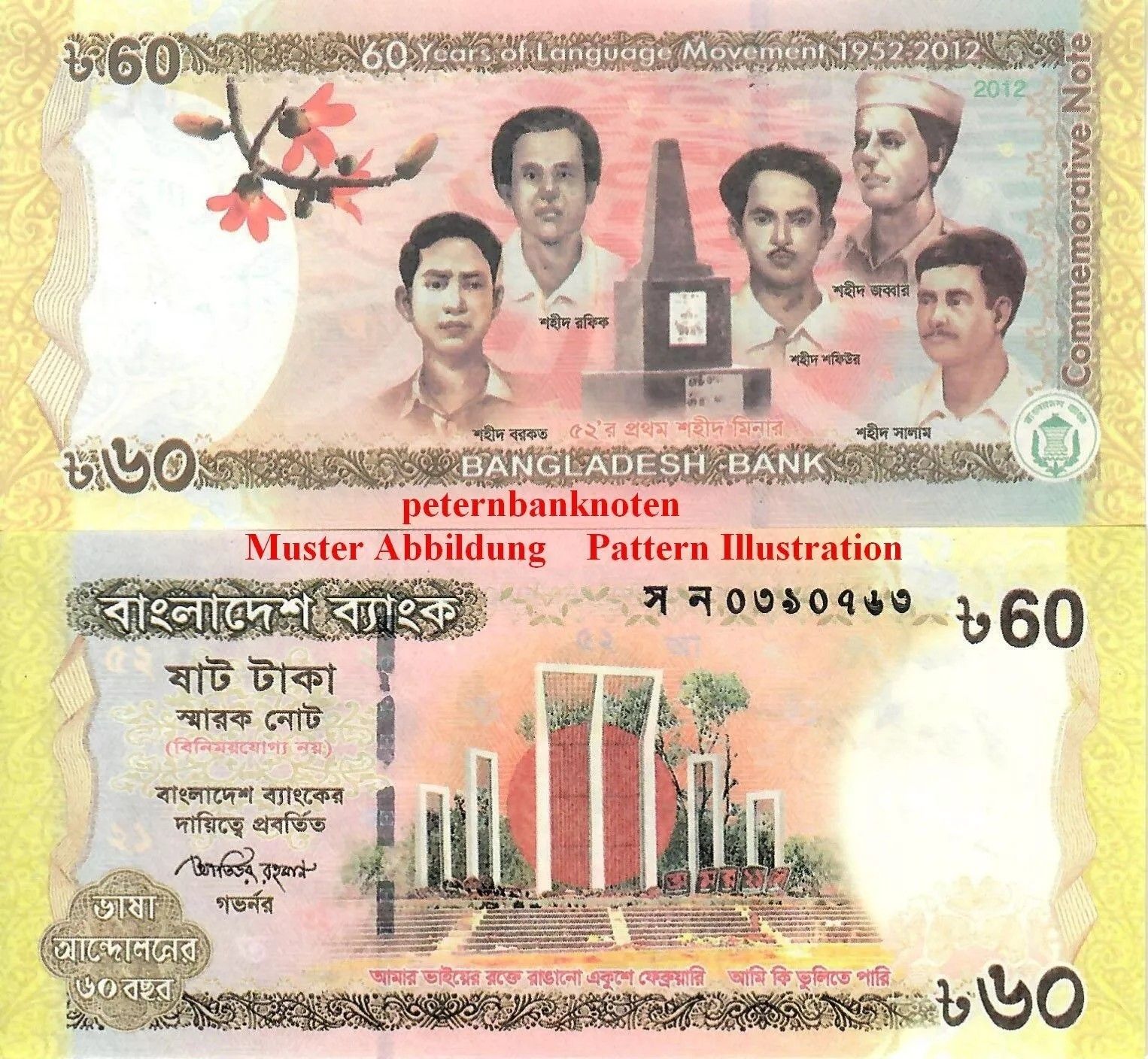 Bangladesch / Bangladesh 60 Taka 2012 Unc P. 61 6202#