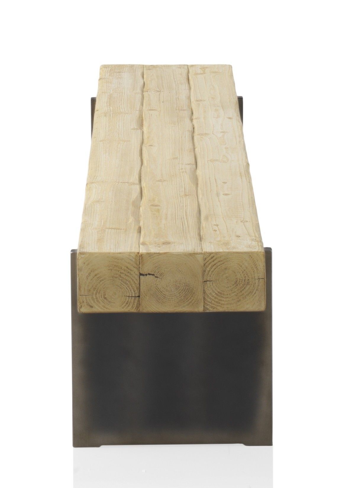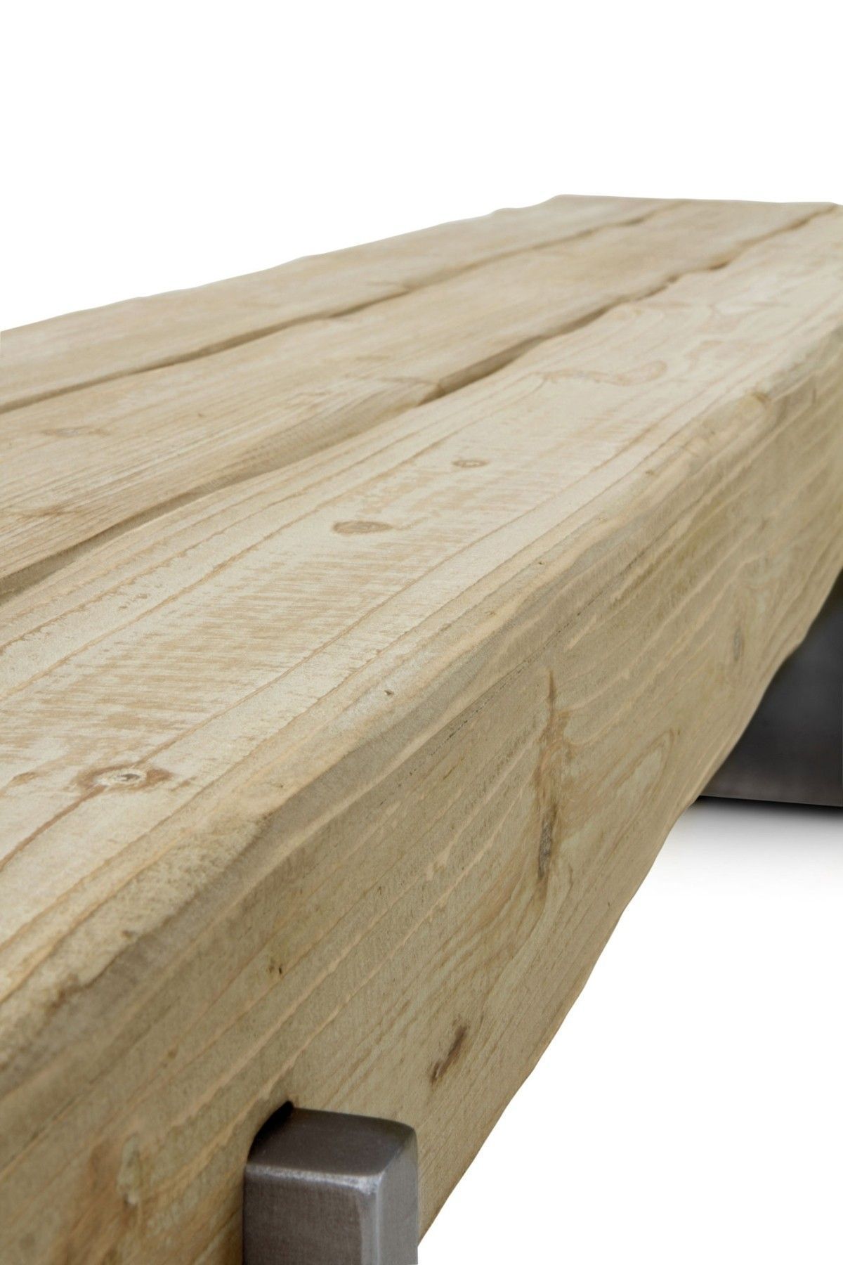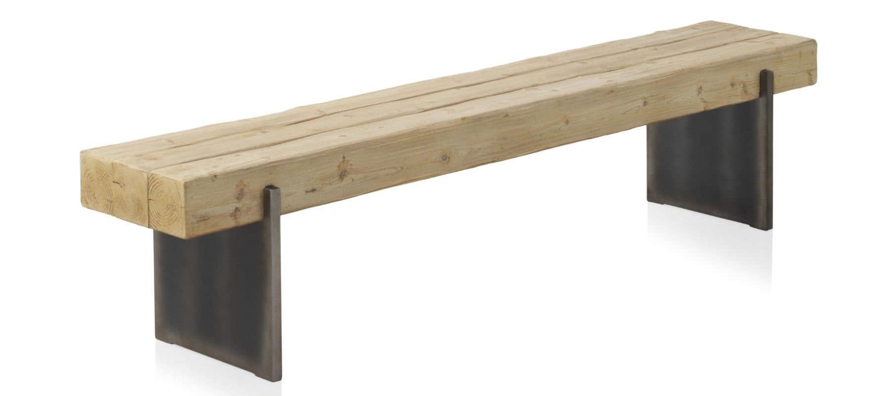 Bank aus Fichtenholz mit metallfarben lackierten Beinen