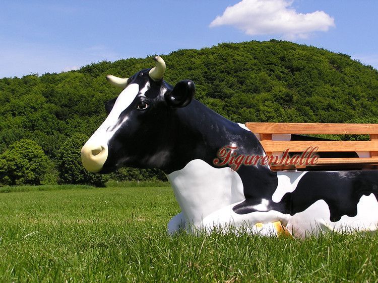 Bank Kuhbank Kuh liegend Figur Gartenbank lustige Sitzgelegenheit lebensgroß Deko neu