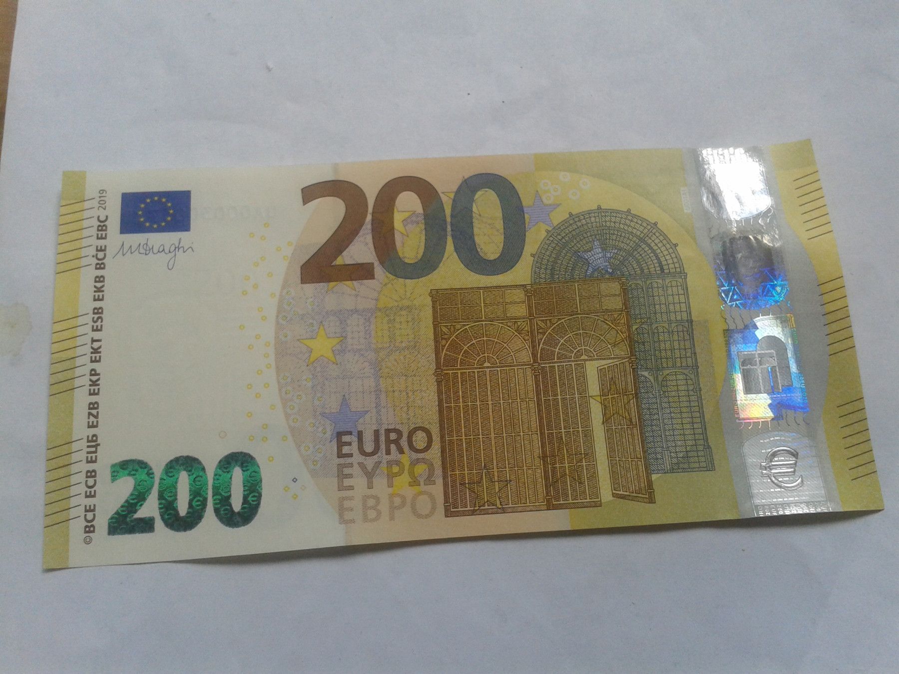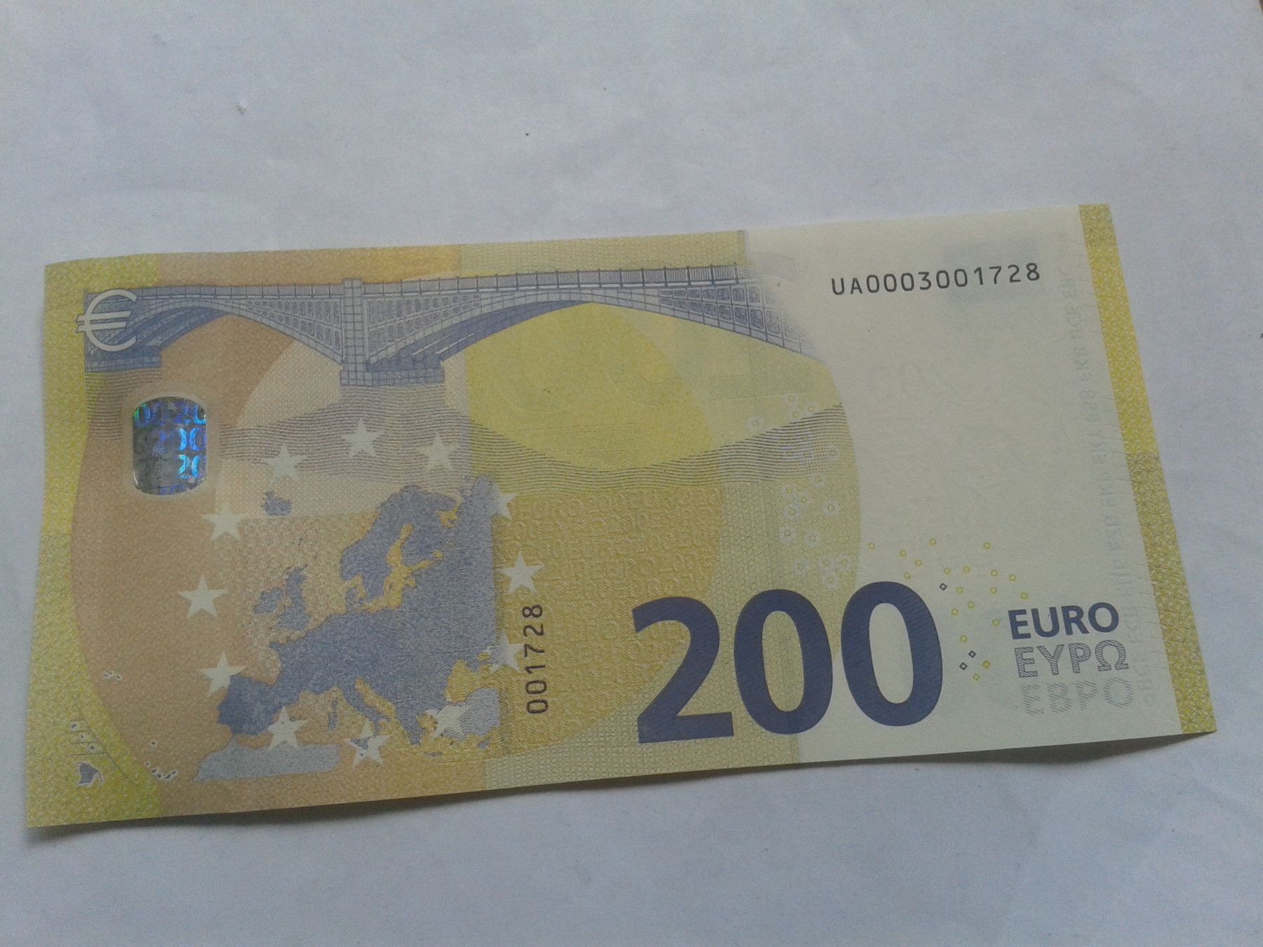 Banknote 200 euro 2019 Geldschein Mario Draghi EZB Note seltene U000 - Serie