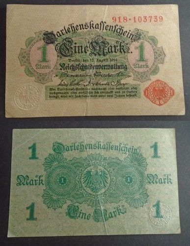 Banknote Deutsches Reich: Darlehnenskassenschein 1 Mark 1914