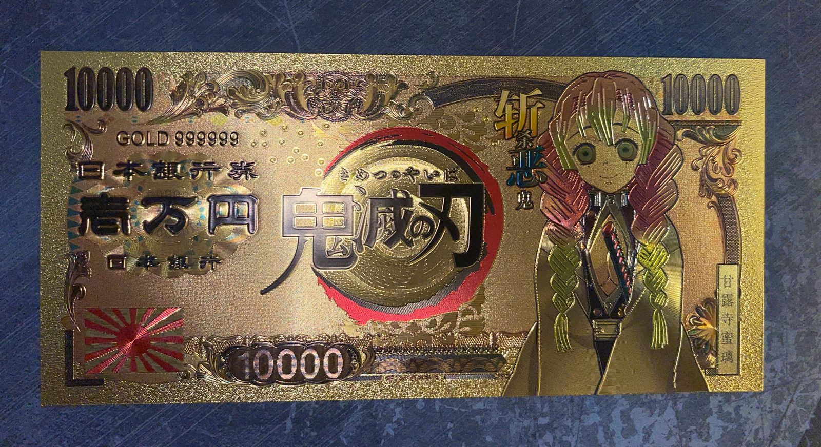 Goldfolie Banknote vergoldet Folie - sehr selten Anime Kimetsu no Yaiba Kamado Tanjiro Mitsuri Kanroji Technische Information zum Artikel Material: Goldfolie Größe: original Größe Erhaltung: Neu Verpackung: Folie Das ideale Geschenk oder natürlich auch zum selber sammeln Natürlich handelt es sich ni... Mehr