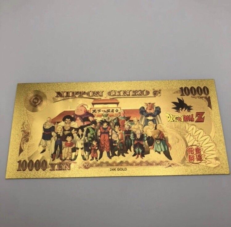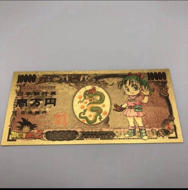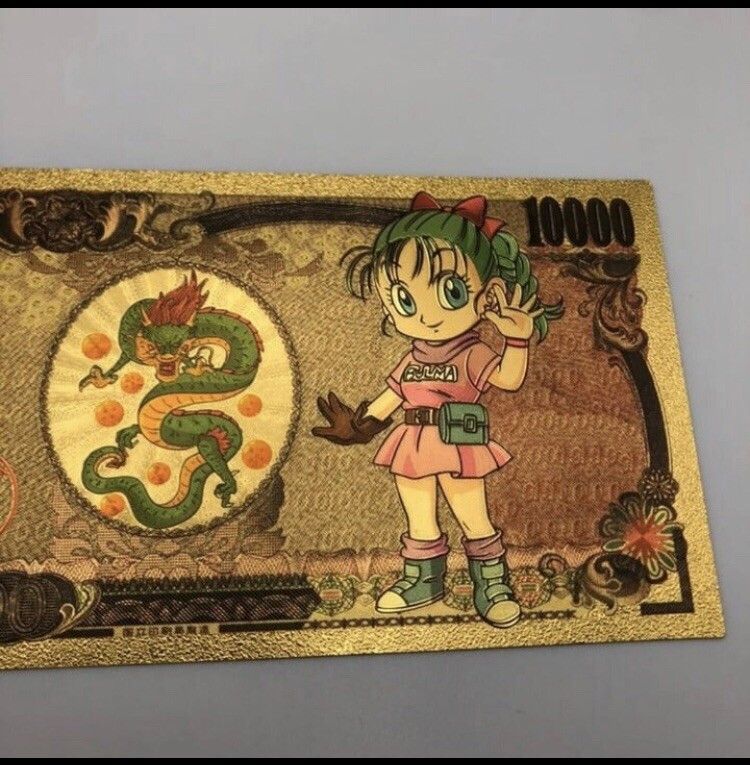 Goldfolie Banknote vergoldet Folie - sehr selten Anime Bulma Dragon Ball Z Technische Information zum Artikel Material: Goldfolie Größe: original Größe Erhaltung: Neu Verpackung: Folie Das ideale Geschenk oder natürlich auch zum selber sammeln Natürlich handelt es sich nicht um echtes Geld... Mehr
