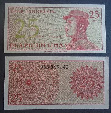 Banknote Indonesien: 25 Sen 1964 - Bankfrisch