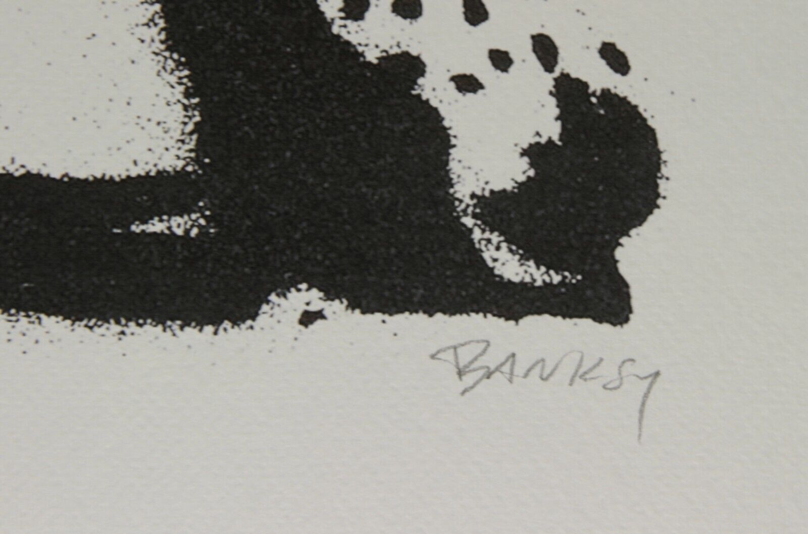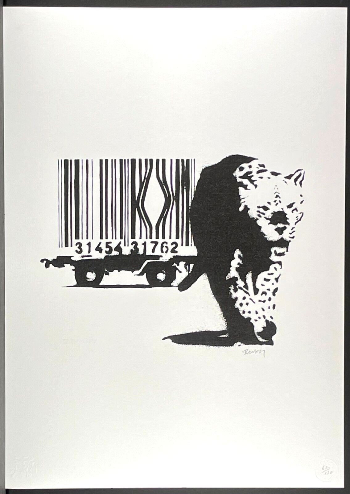 Lithographie Barcode Mit der Hand nummeriert Limitierte Auflage von 150 Stück Jedes Stück ist einzeln nummeriert Prägestempel von P.O.W. (Pictures on Wall) und Elefant mit Rakete Gesamtgröße : 70 cm x 50 cm Nach dem Original von Banksy Das Blatt wird flach verschickt, nicht gerollt! Alle angebotenen