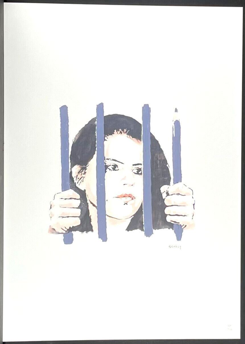 Lithographie Freiheit für Zehra Dogan Mit der Hand nummeriert Limitierte Auflage von 150 Stück Jedes Stück ist einzeln nummeriert Prägestempel von P.O.W. (Pictures on Wall) und Elefant mit Rakete Gesamtgröße : 70 cm x 50 cm Nach dem Original von Banksy Das Blatt wird flach verschickt, nicht gerollt!