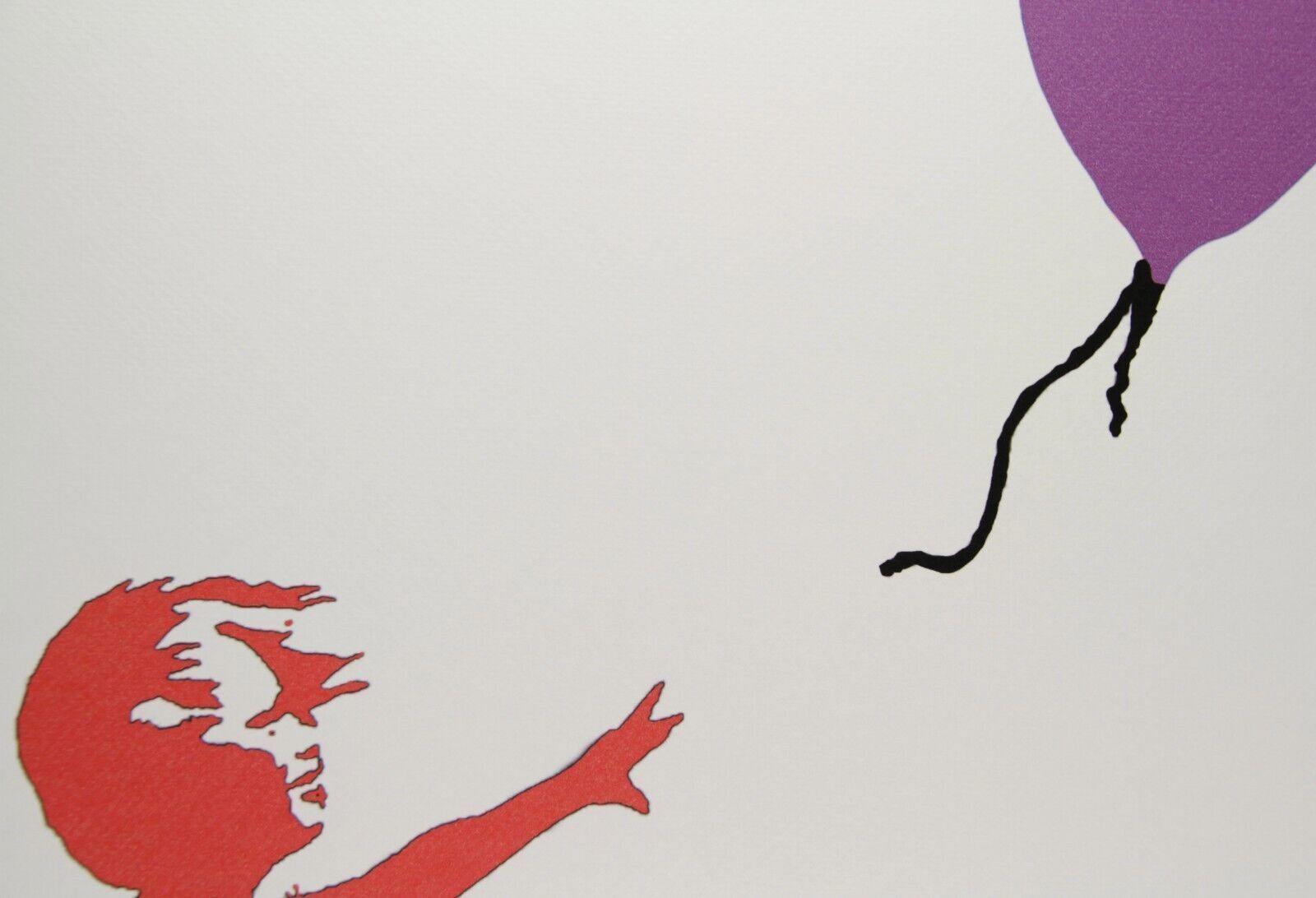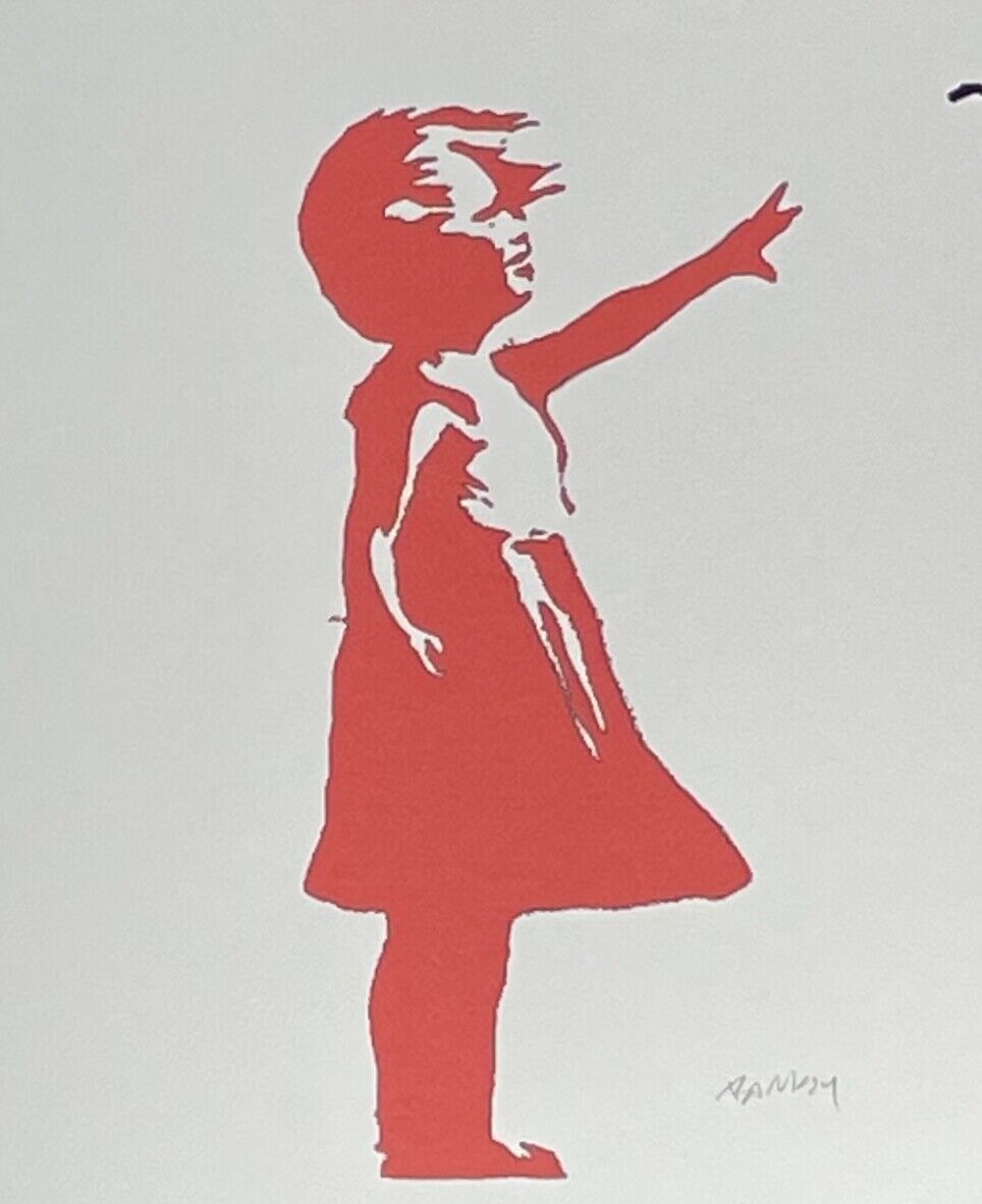 Lithographie Mädchen mit Luftballon Mit der Hand nummeriert Limitierte Auflage von 150 Stück Jedes Stück ist einzeln nummeriert Prägestempel von P.O.W. (Pictures on Wall) und Elefant mit Rakete Gesamtgröße : 70 cm x 50 cm Nach dem Original von Banksy Das Blatt wird flach verschickt, nicht gerollt! A