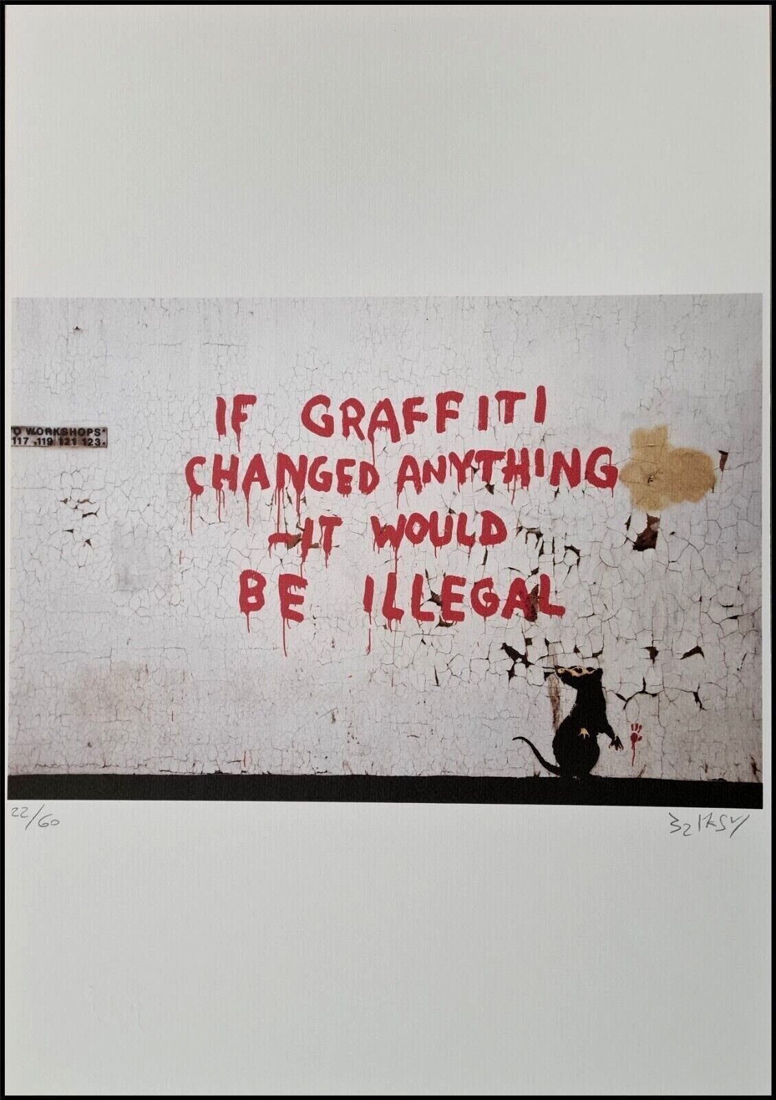 Lithographie Wenn Graffiti etwas ändern würde, wäre es illegal Mit der Hand nummeriert Limitierte Auflage von 60 Stück Jedes Stück ist einzeln nummeriert Prägestempel Gesamtgröße : 50 cm x 35 cm Nach dem Original von Banksy Das Blatt wird flach verschickt, nicht gerollt! Alle angebotenen Kunstproduk