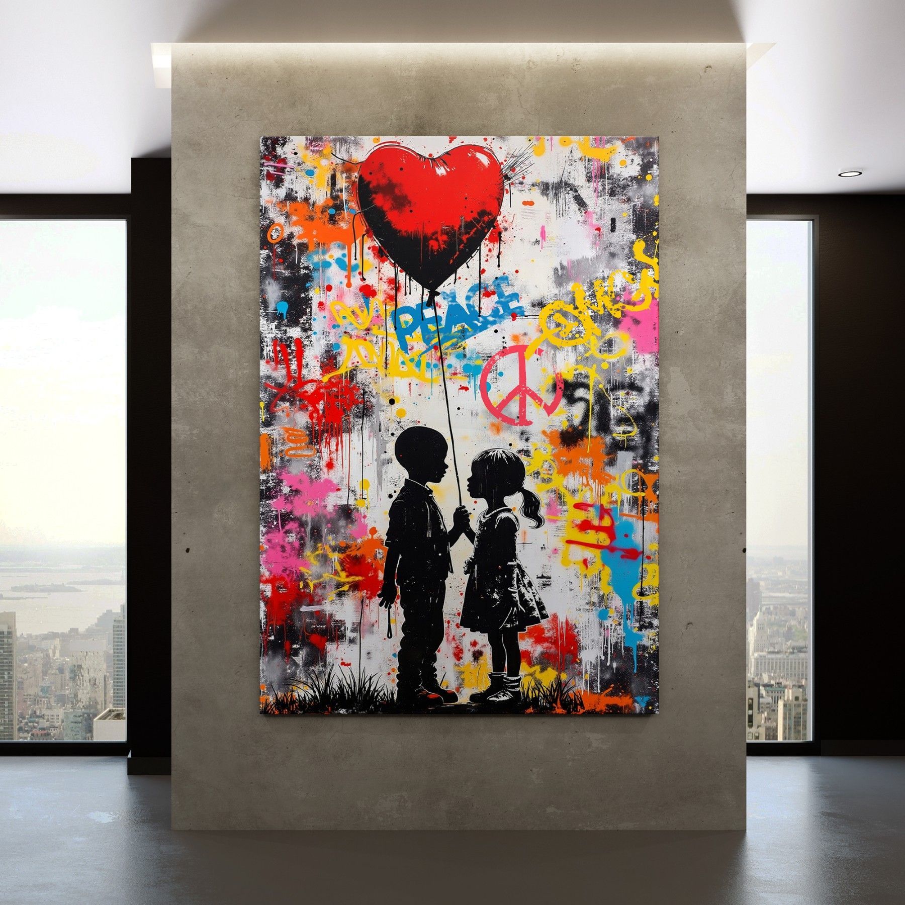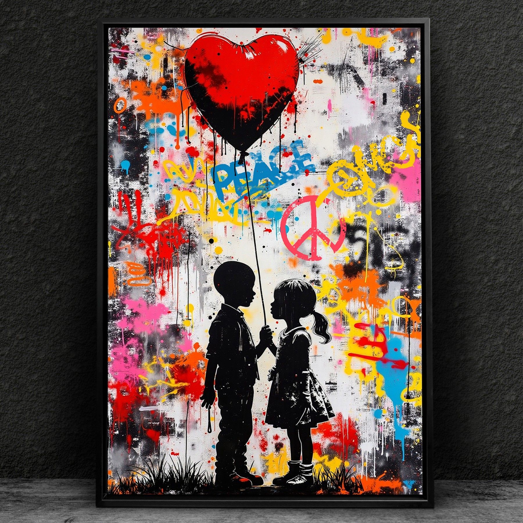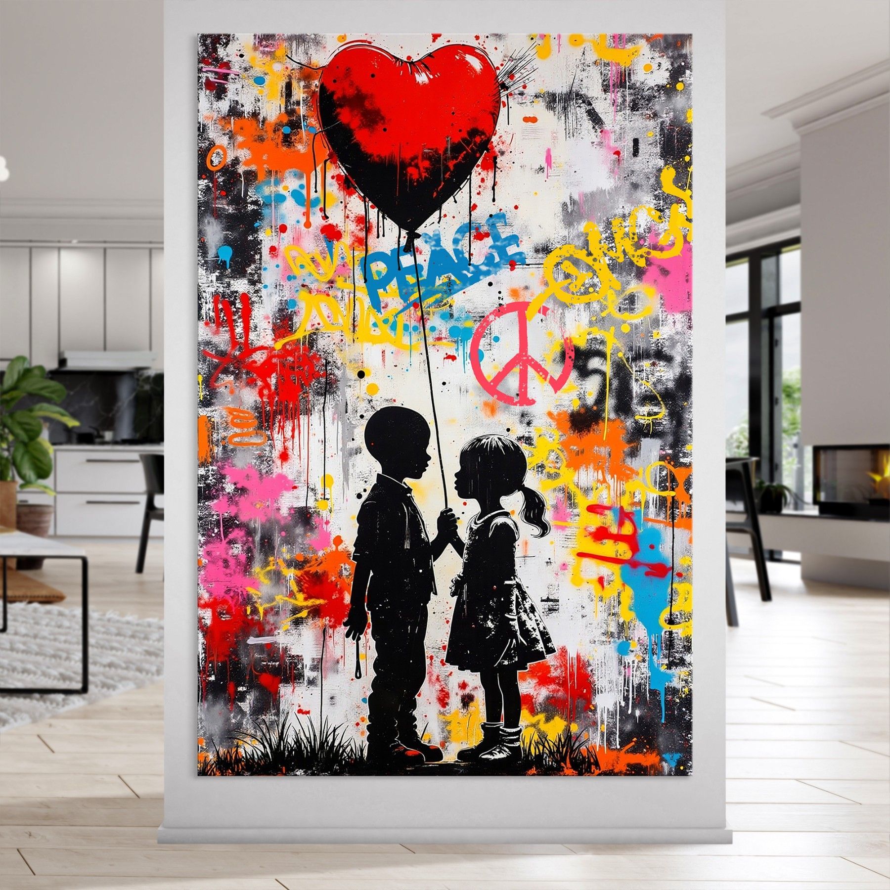 Banksy-Kinder, Straßenkunst, Graffiti Bunte Wandbild, Acrylglas, Poster, Leinwand Nr2