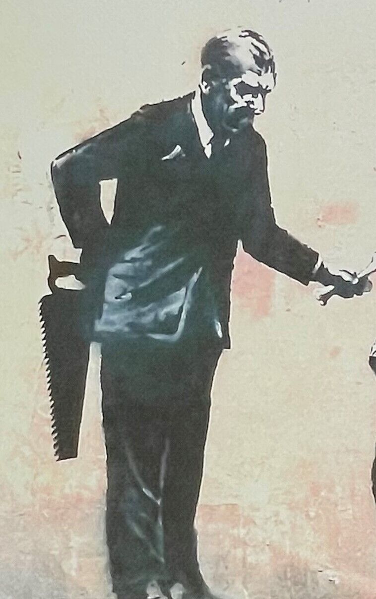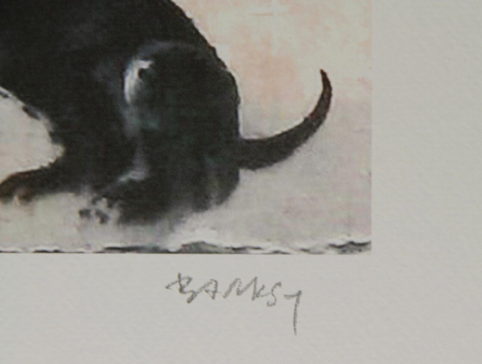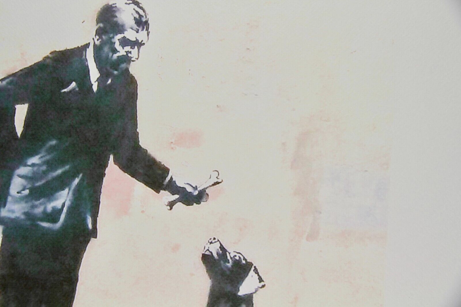 Lithographie Mann mit Hund Mit der Hand nummeriert Limitierte Auflage von 150 Stück Jedes Stück ist einzeln nummeriert Prägestempel von P.O.W. (Pictures on Wall) und Elefant mit Rakete Gesamtgröße : 70 cm x 50 cm Nach dem Original von Banksy Das Blatt wird flach verschickt, nicht gerollt! Alle angeb