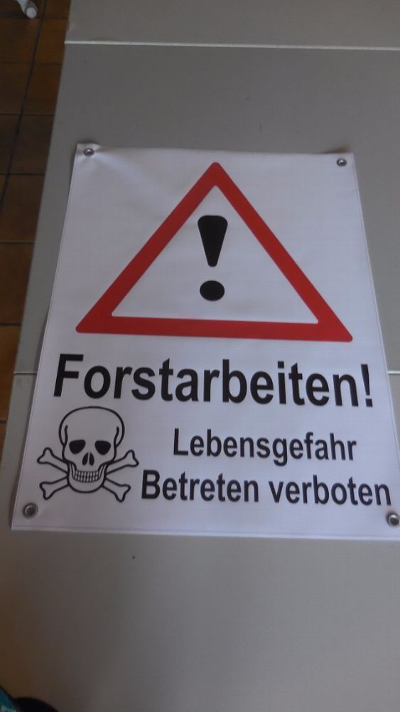 Banner Kunststoffbanner 525 x 800 mm Vorsicht Forstarbeiten Lebensgefahr