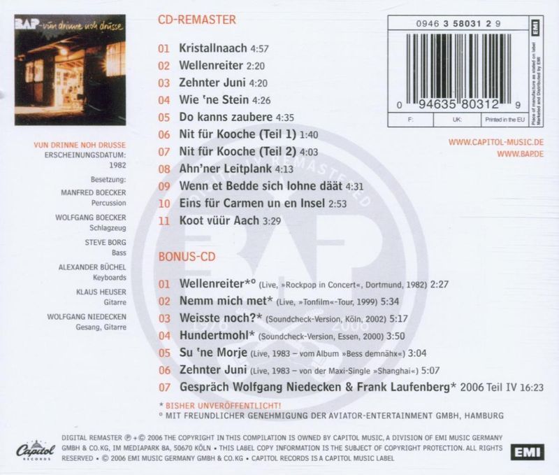BAP: BAP: Vun drinne noh drusse - EMI 3580312 - (CD / V)