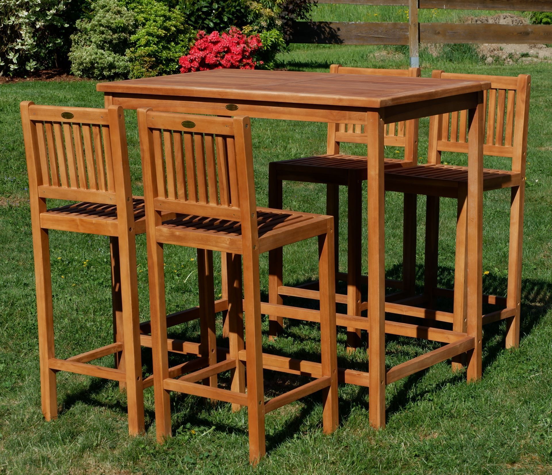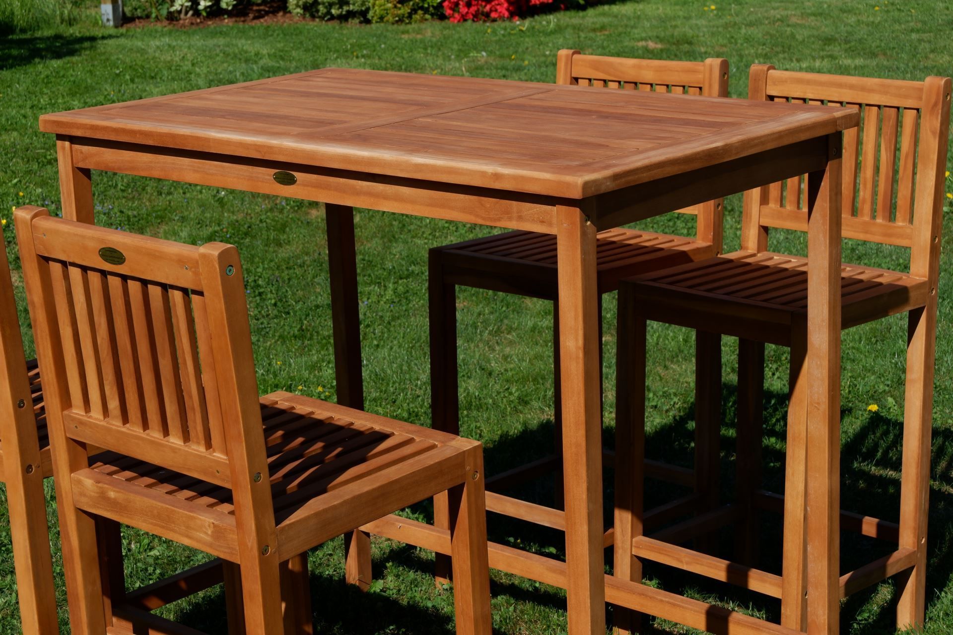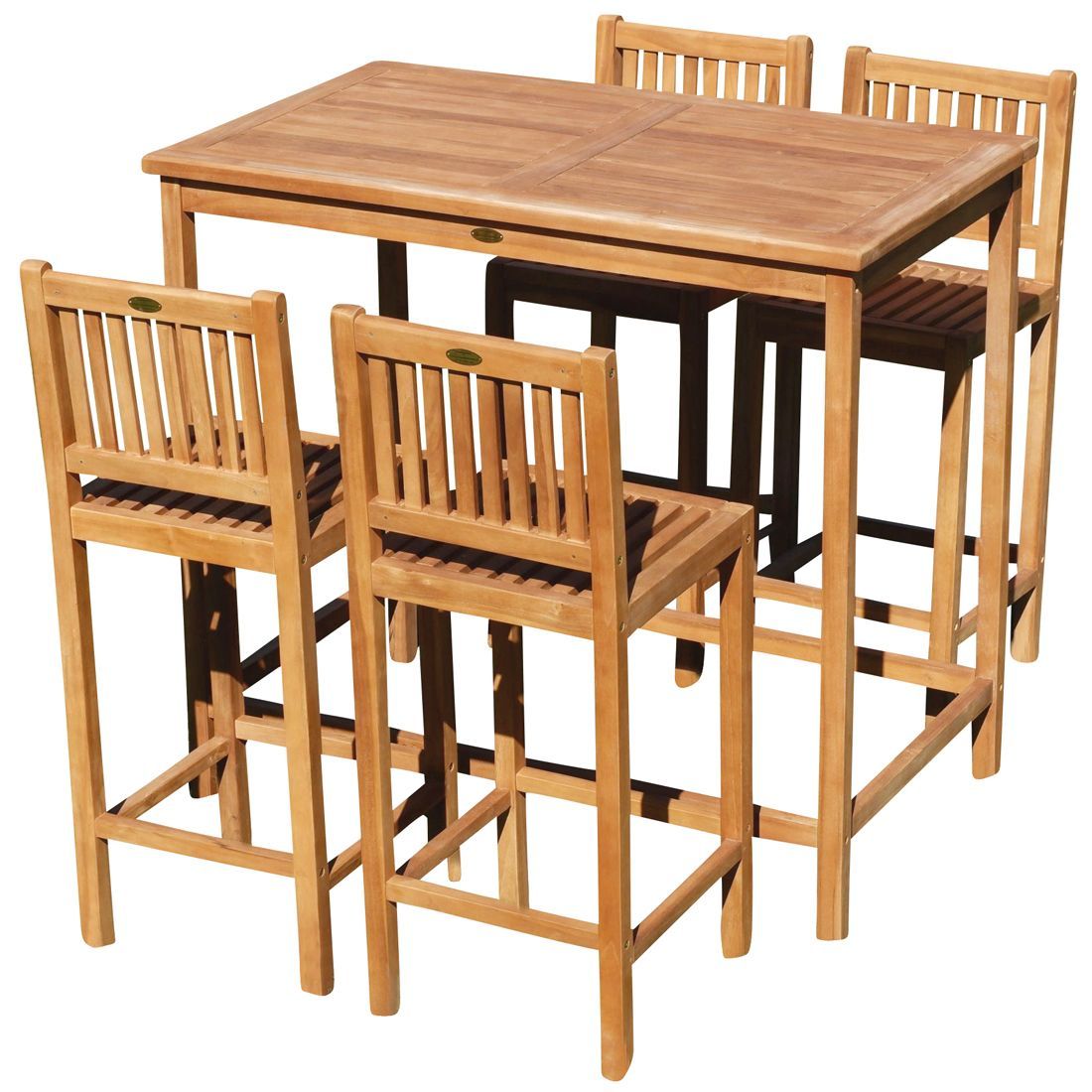 BAR-SET - TEAK Bartisch Stehtisch 120x70cm mit 4x Barhocker Holz