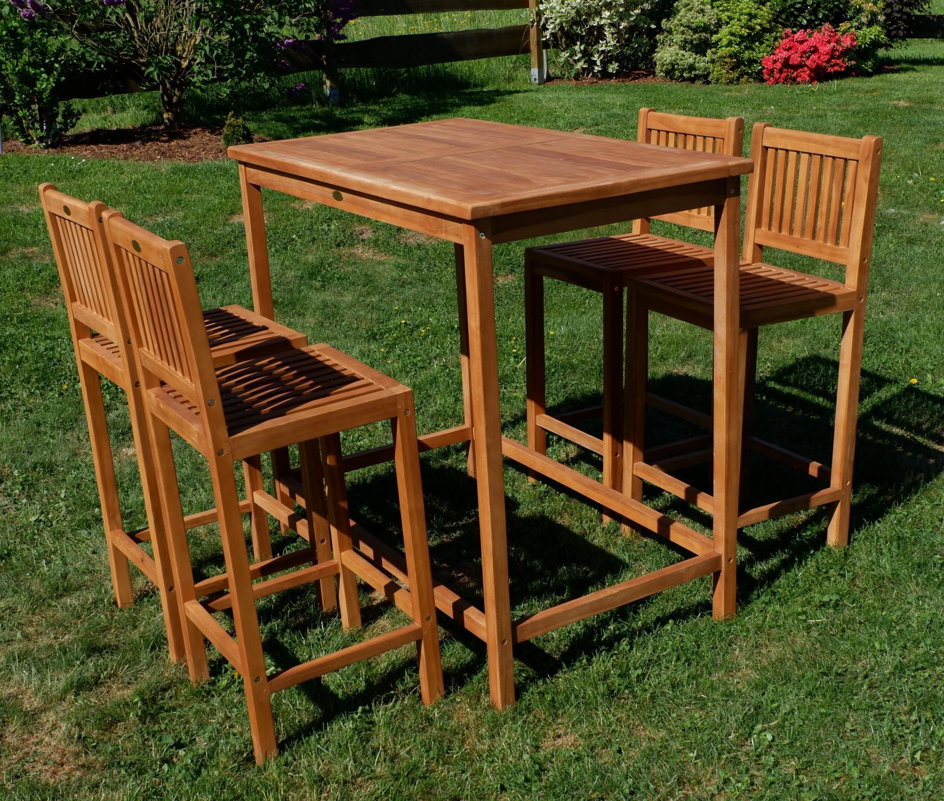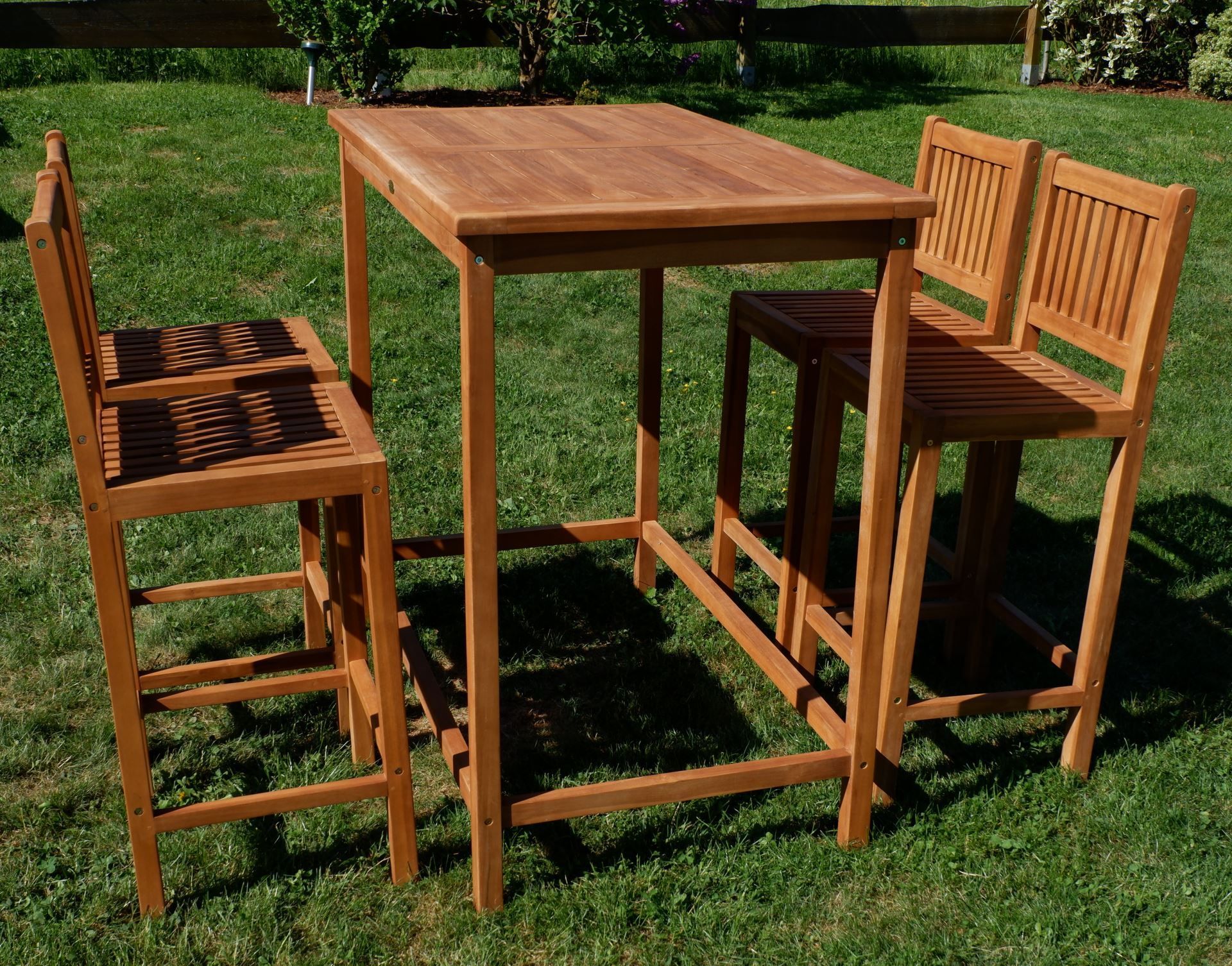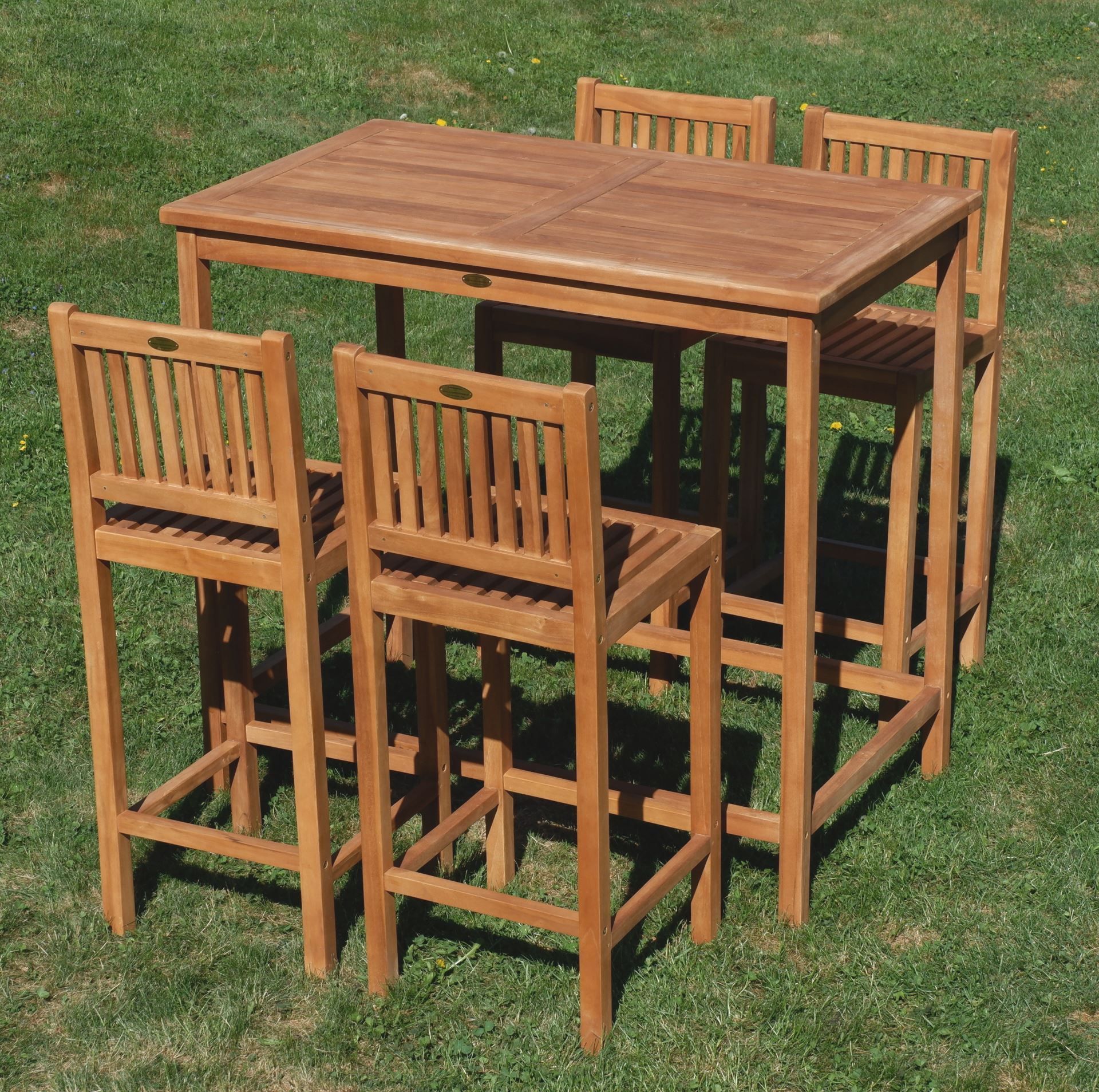 BAR-SET - TEAK Bartisch Stehtisch 120x70cm mit 4x Barhocker Holz