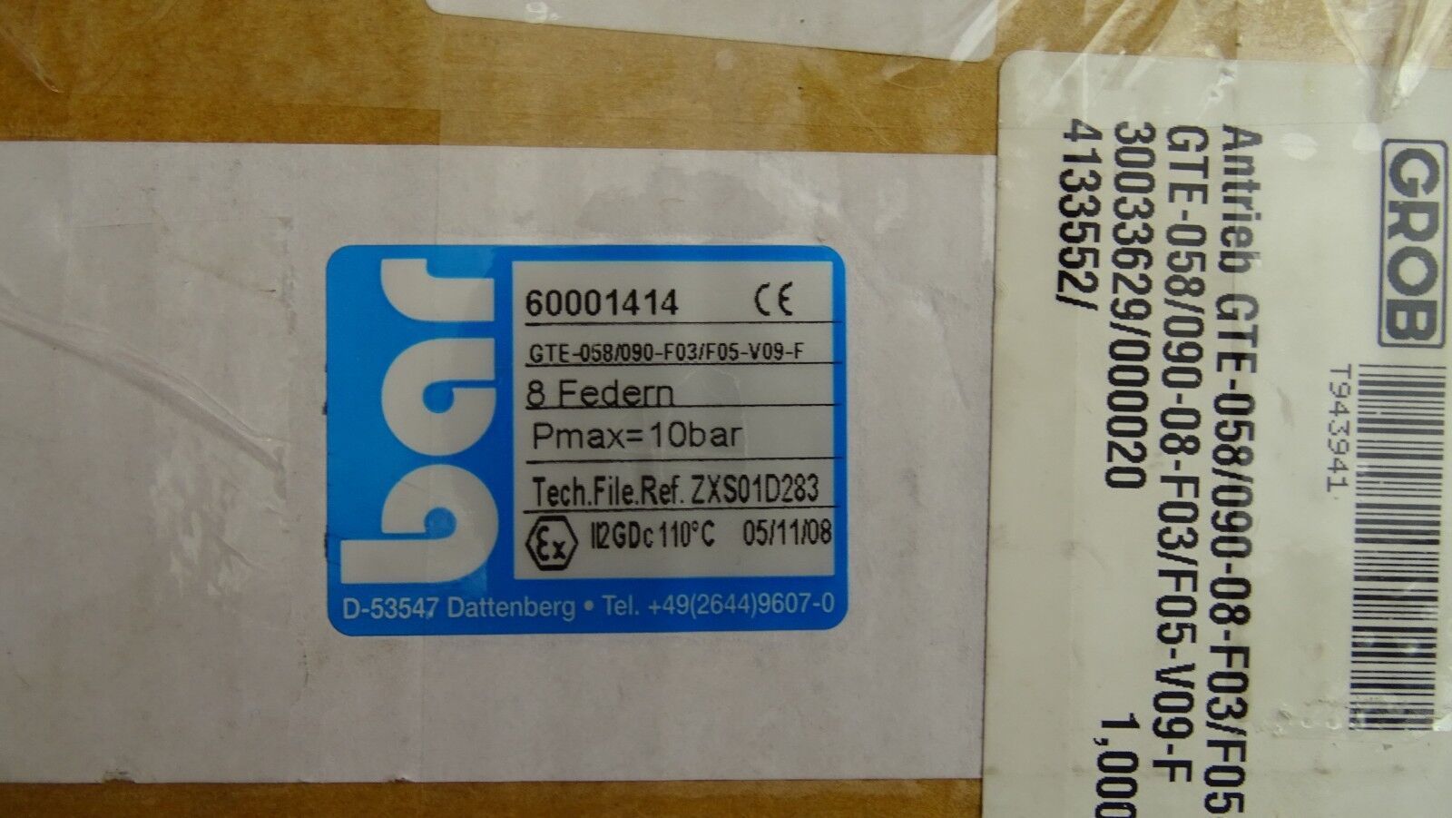 BAR Single Acting Actuator GTE-058/090-08-F03/ F05-V 60001414