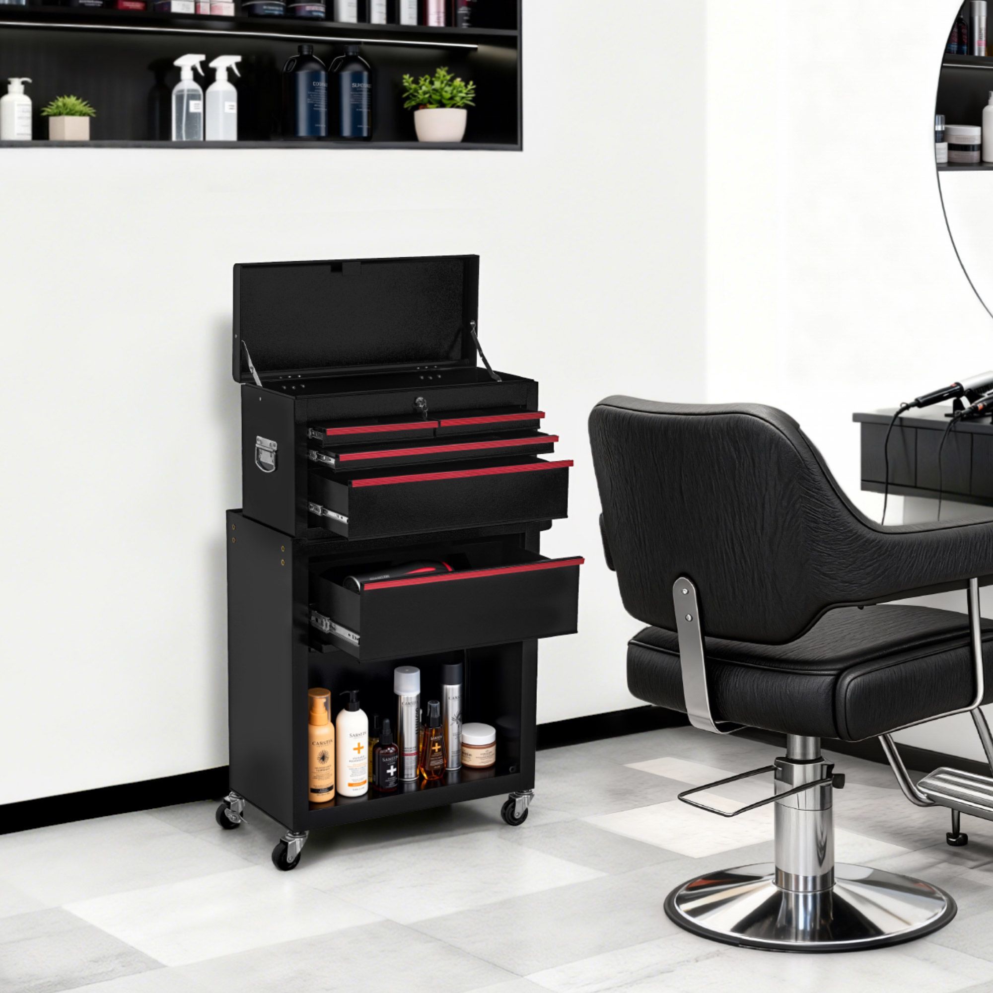 BarberPub 2 in 1 Friseurwagen mit 5 Schubladen, drehbar, abschließbar 0097