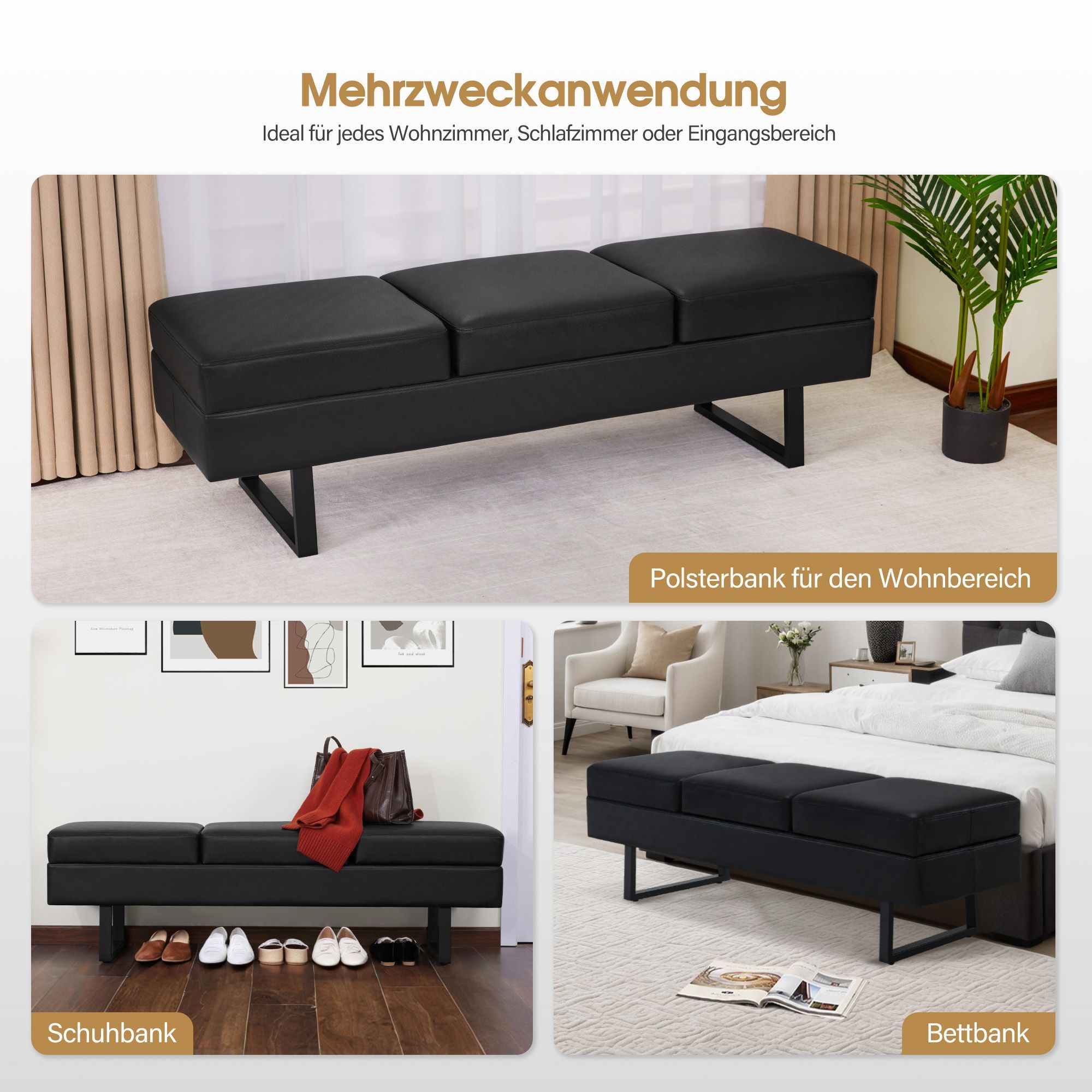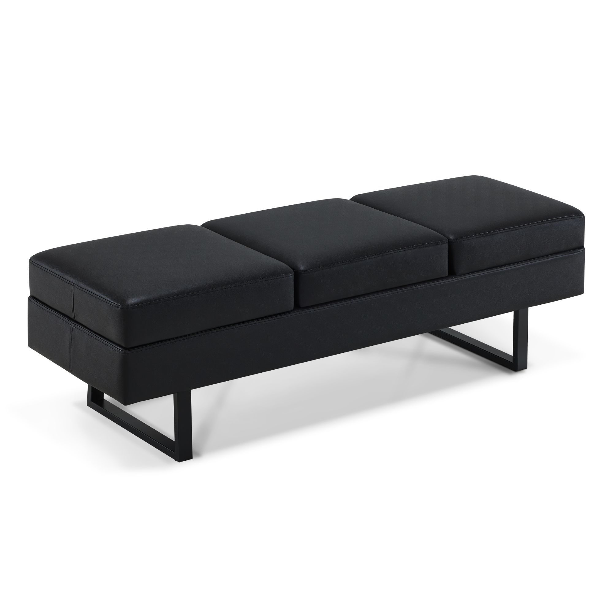 BarberPub 3-Sitzer Sitzbank für Friseursalon W513 (Schwarz/Kunstleder)