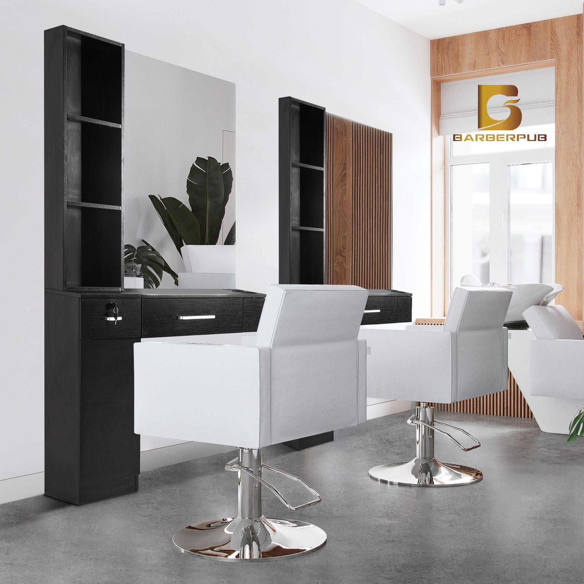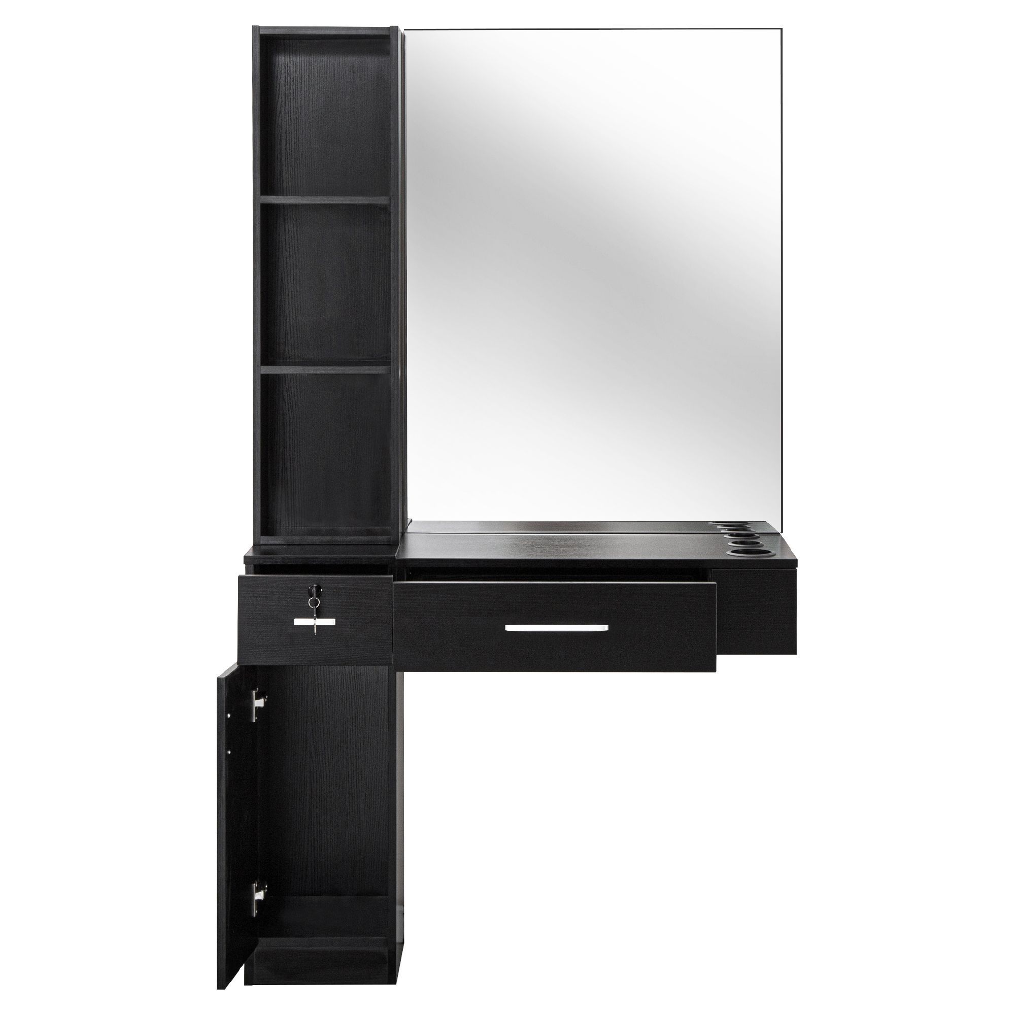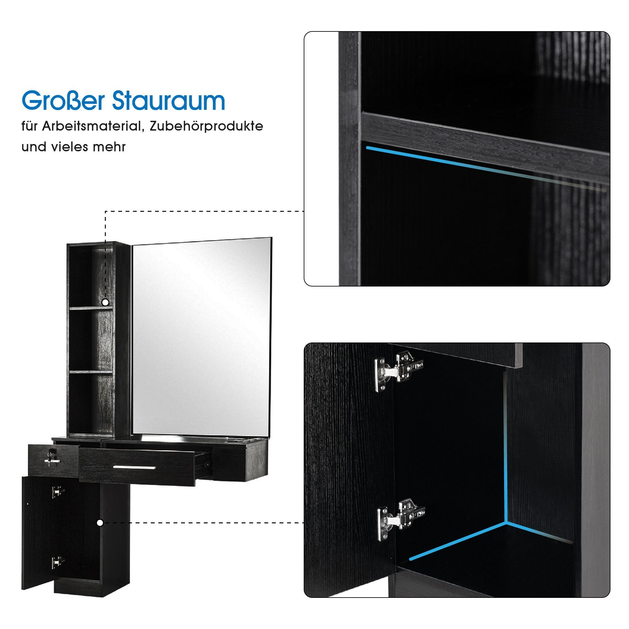 Barberpub Bedienungsplatz Friseurplatz mit Spiegel aus Holz Schwarz 3036