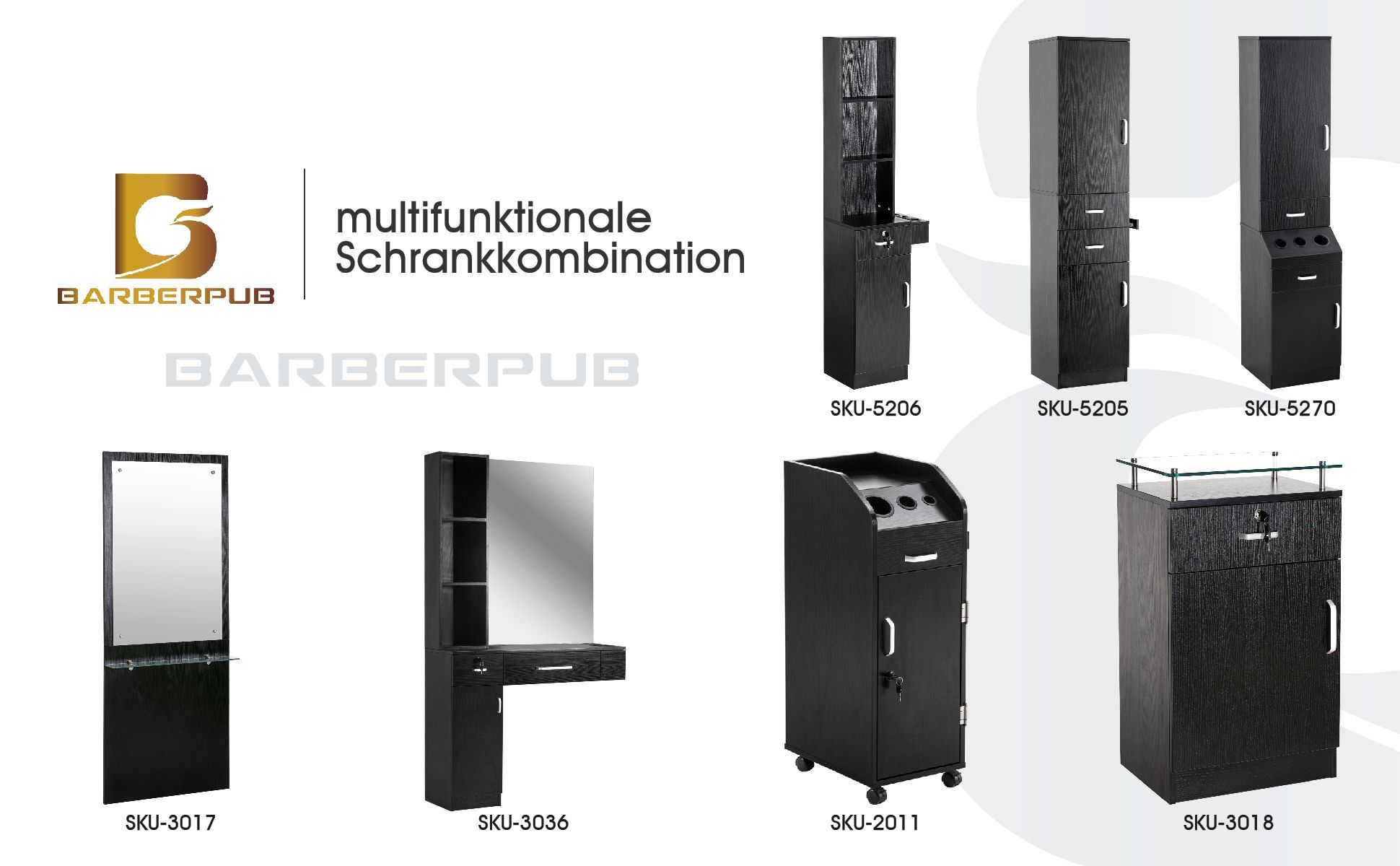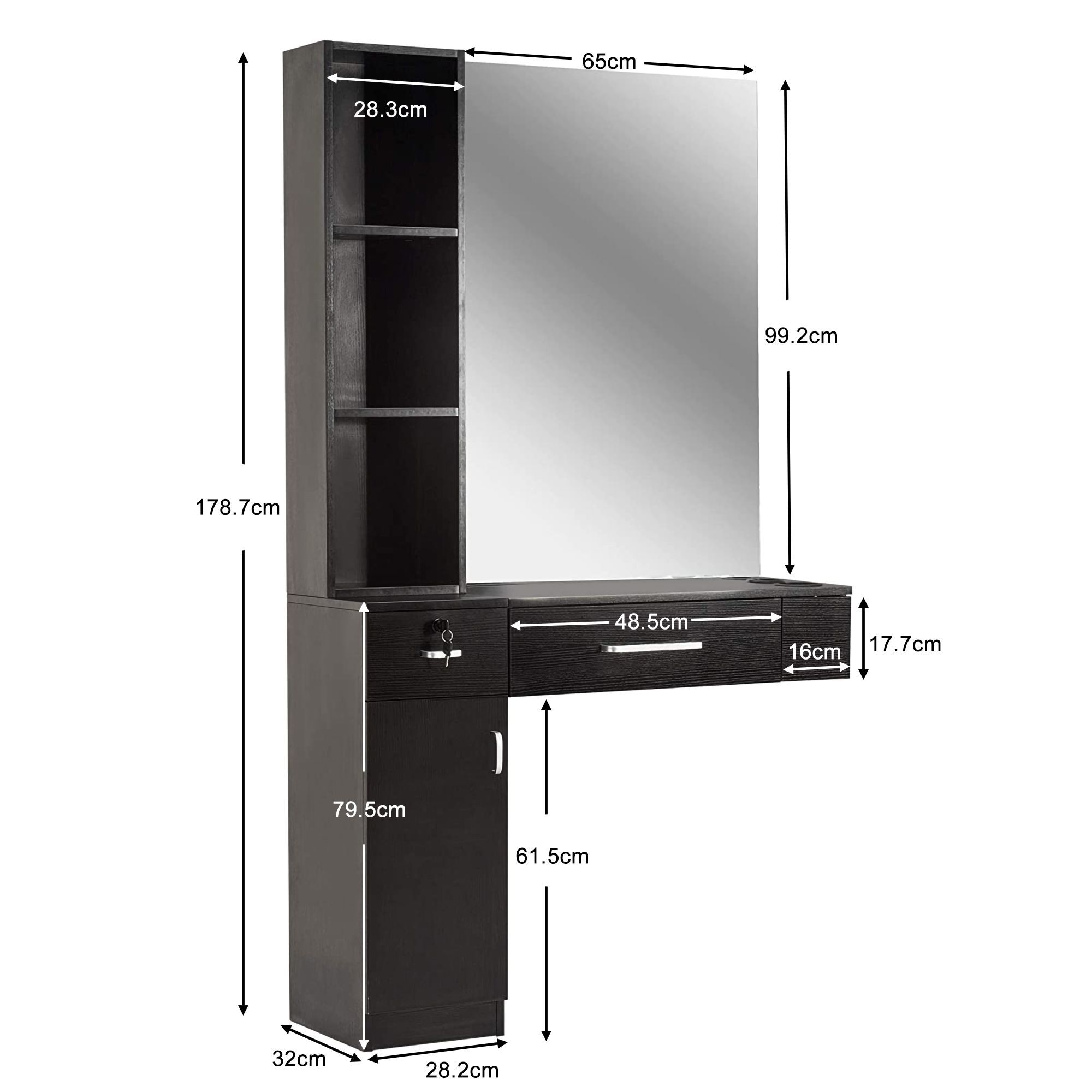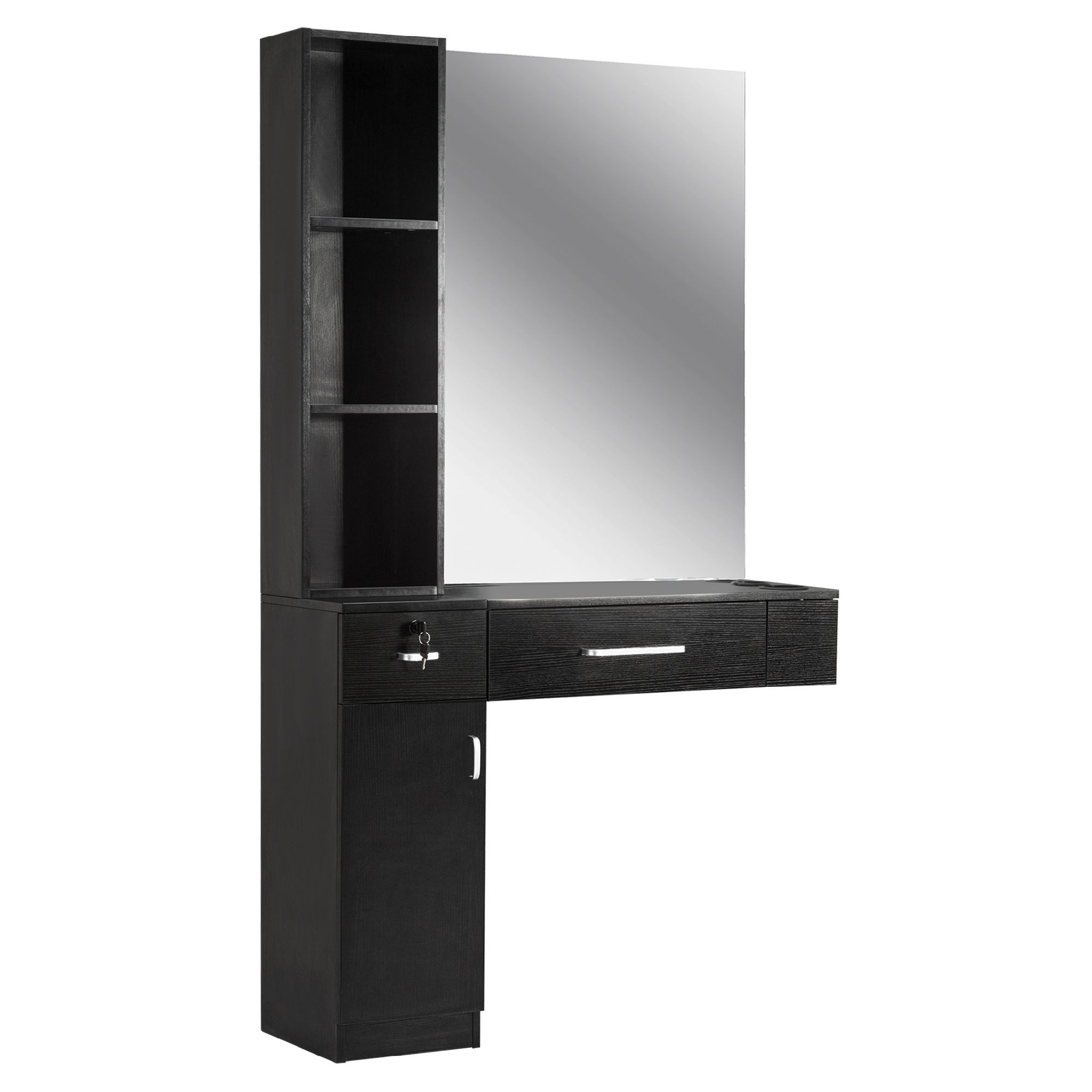 Barberpub Bedienungsplatz Friseurplatz mit Spiegel aus Holz Schwarz 3036