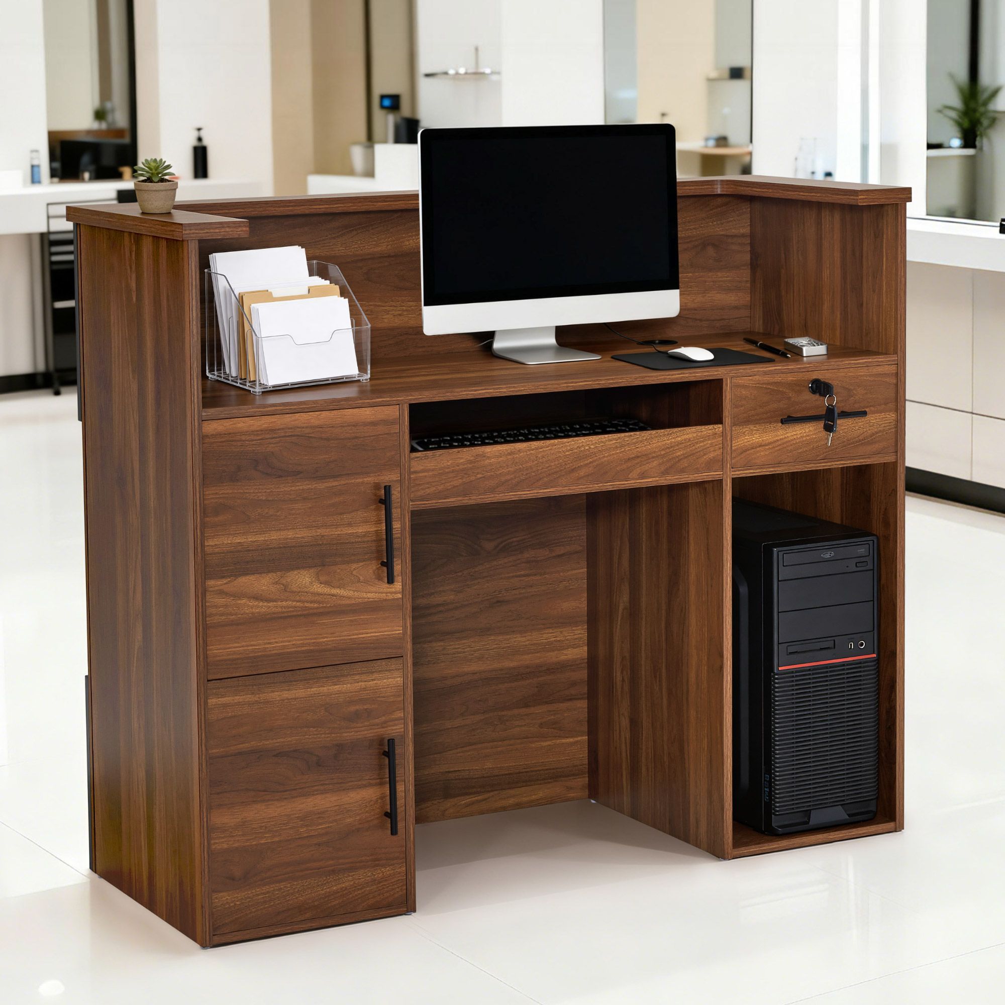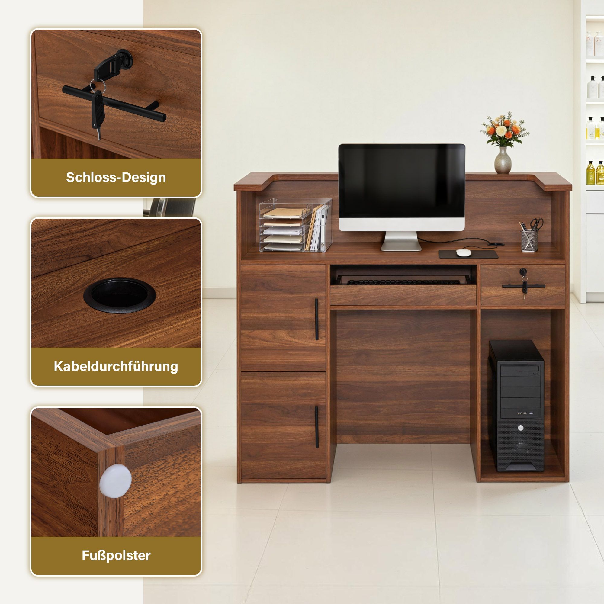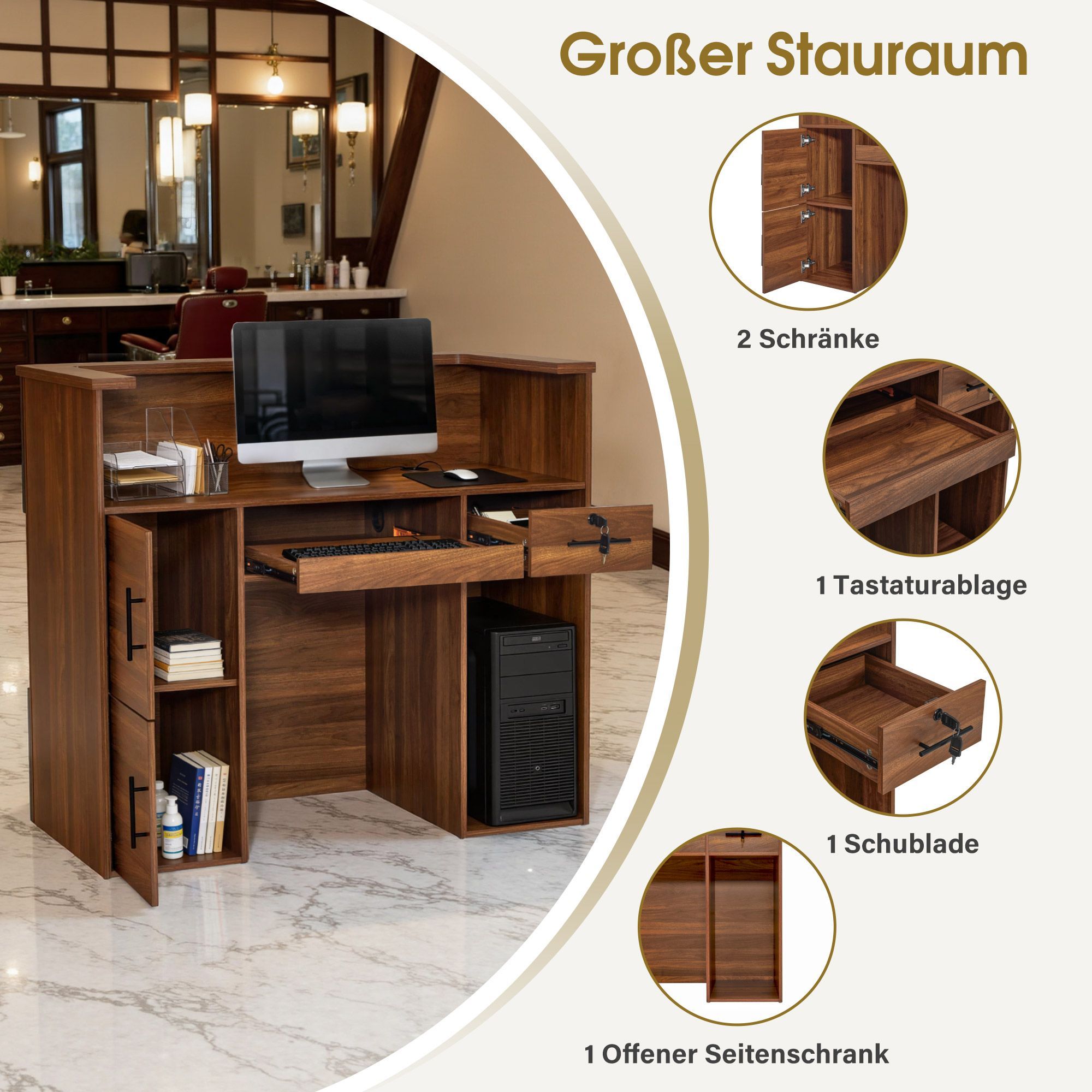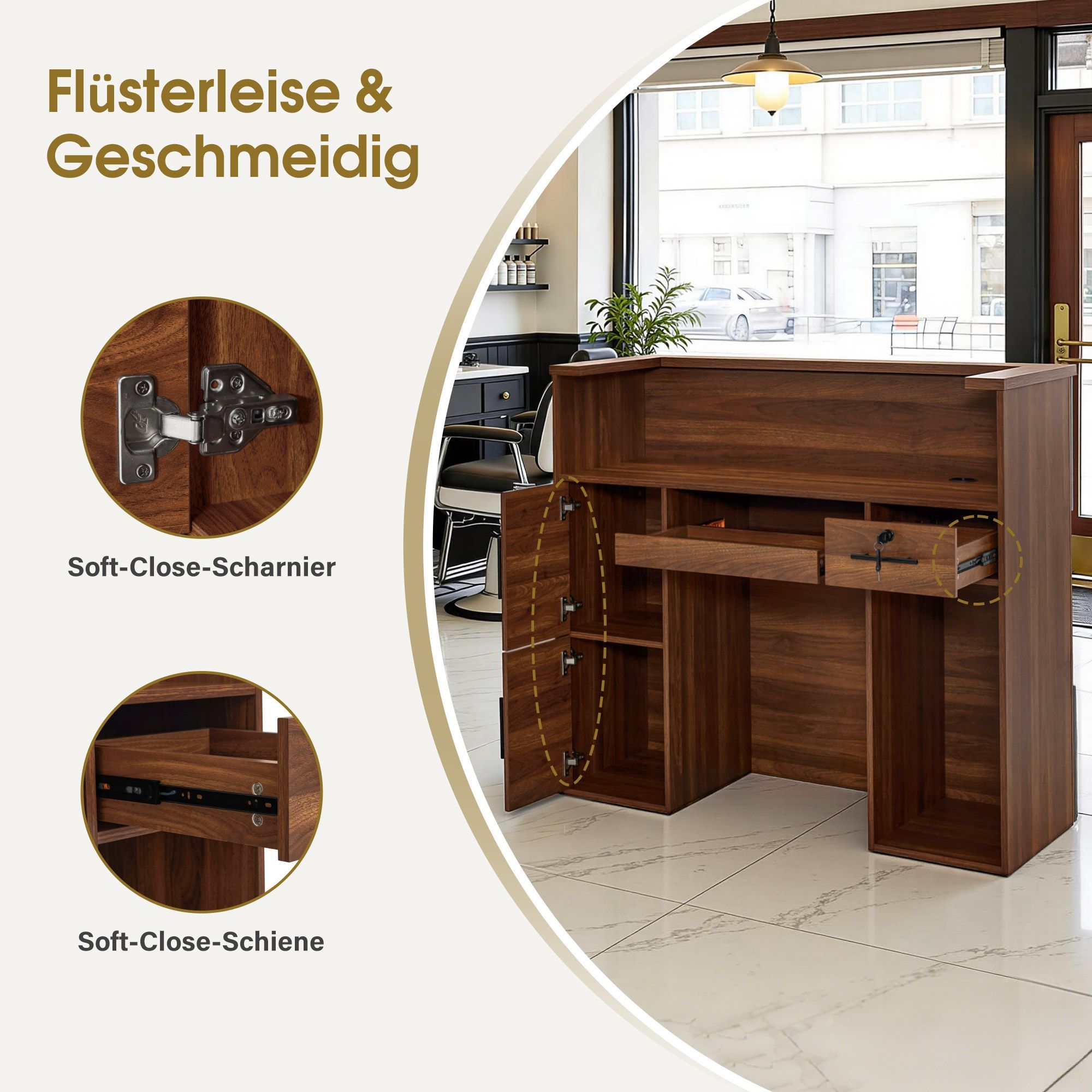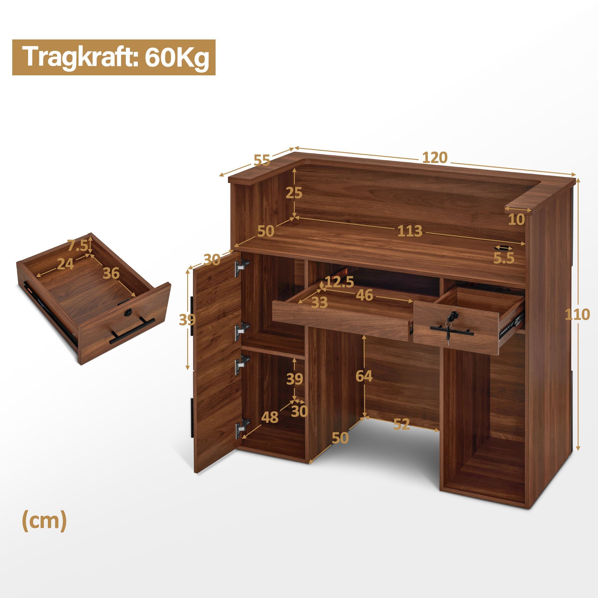 BarberPub Empfangstheke mit 2 Schubladen, Rezeptionstisch Braun R9760