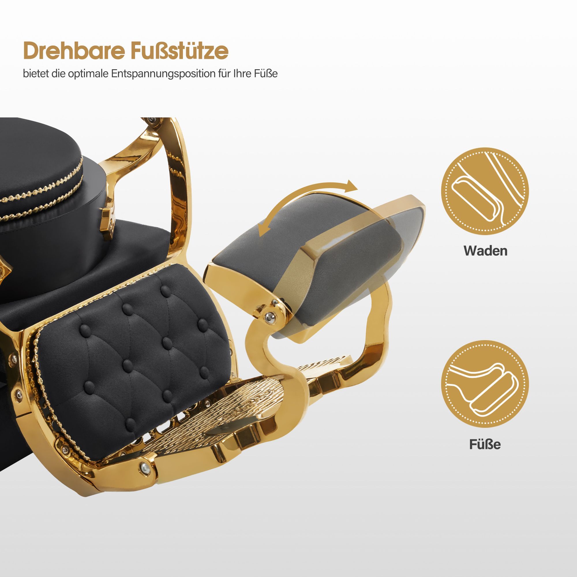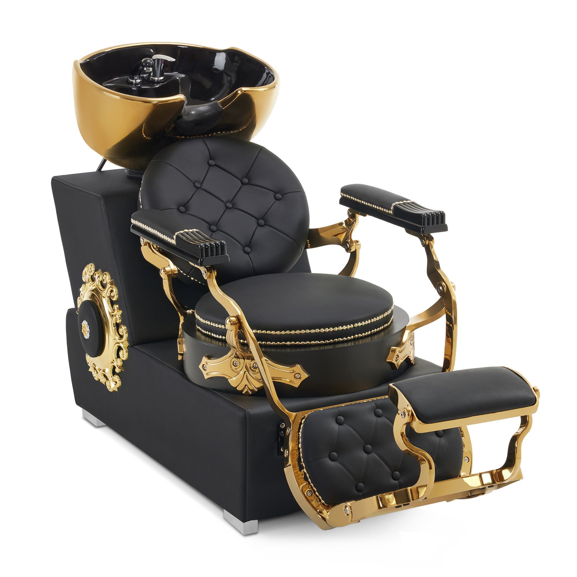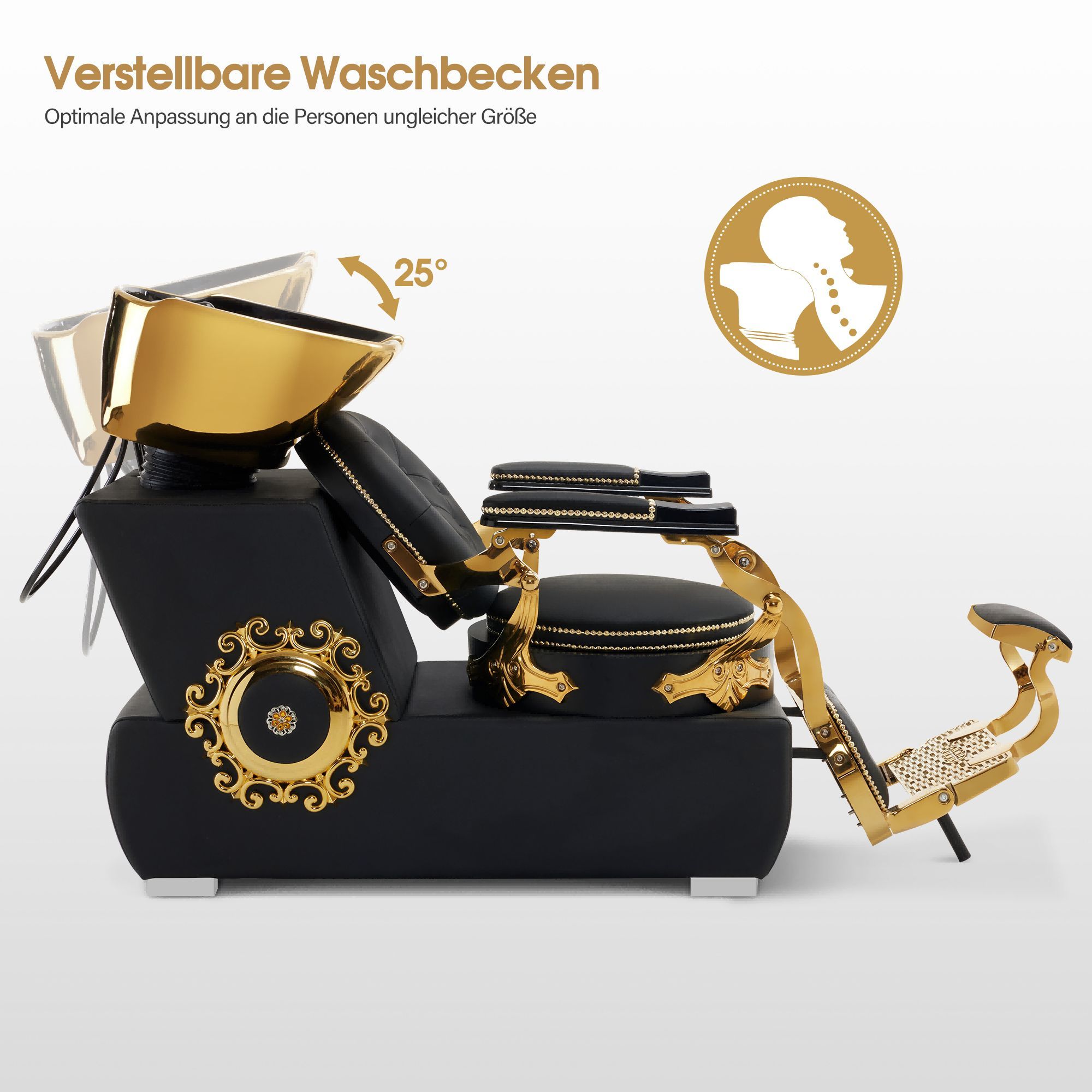 Barberpub Friseurstuhl mit Waschbecken Retro 8024 (Gold-Schwarz/ PVC)