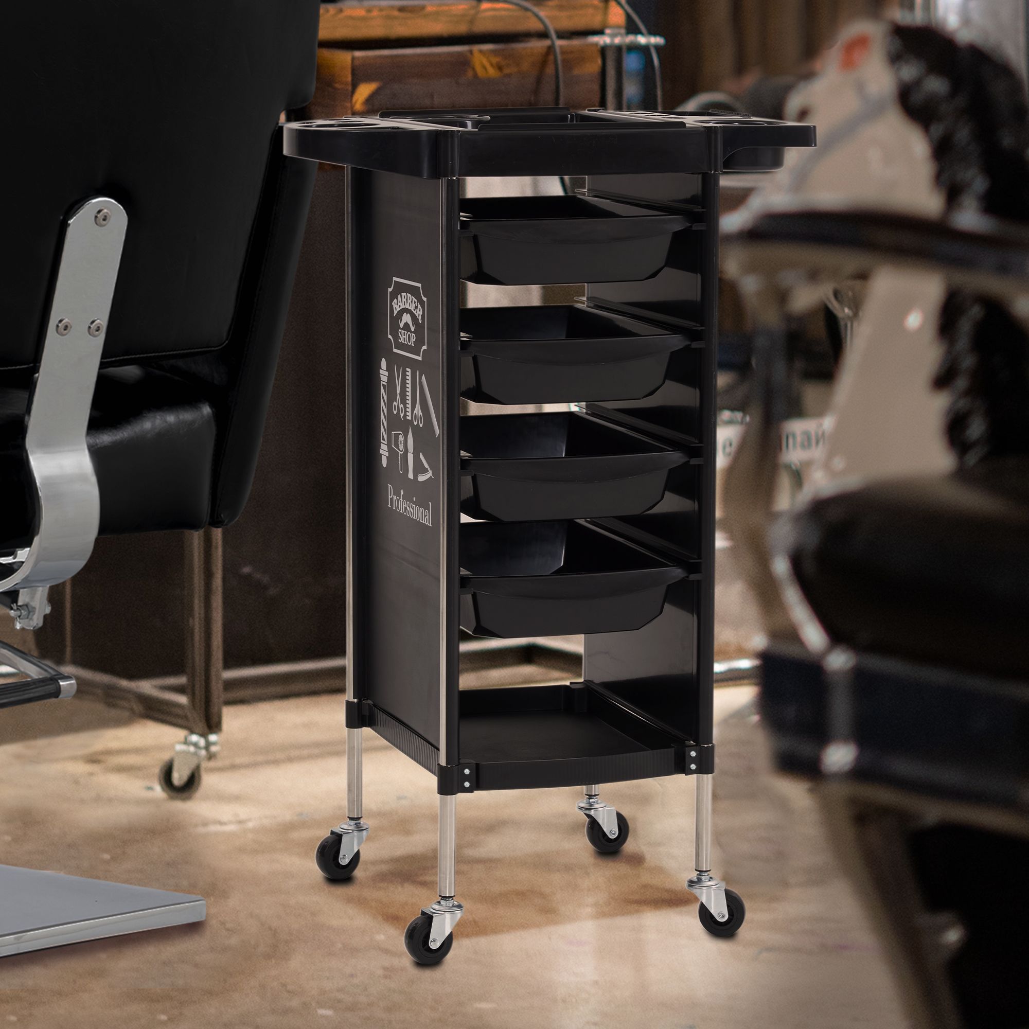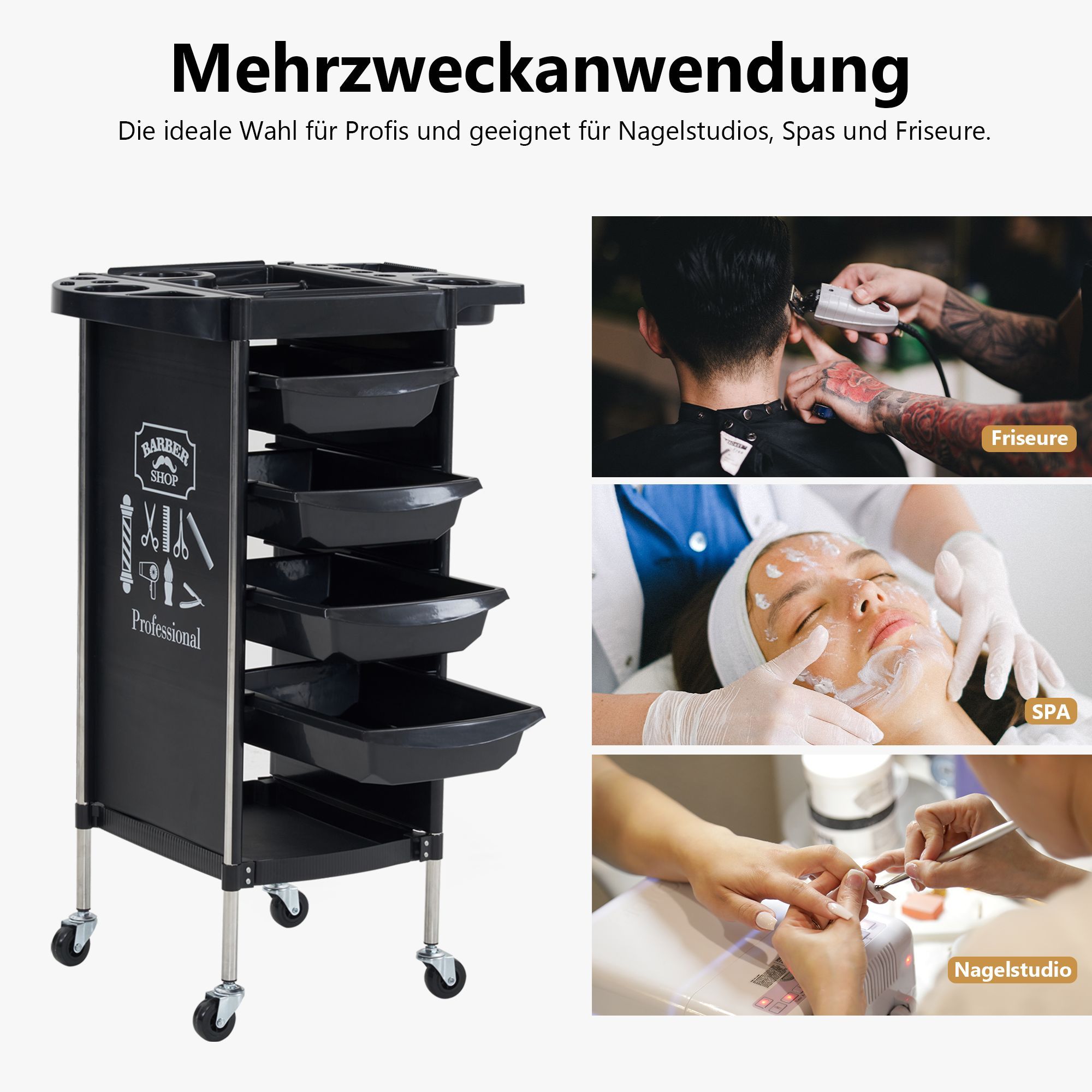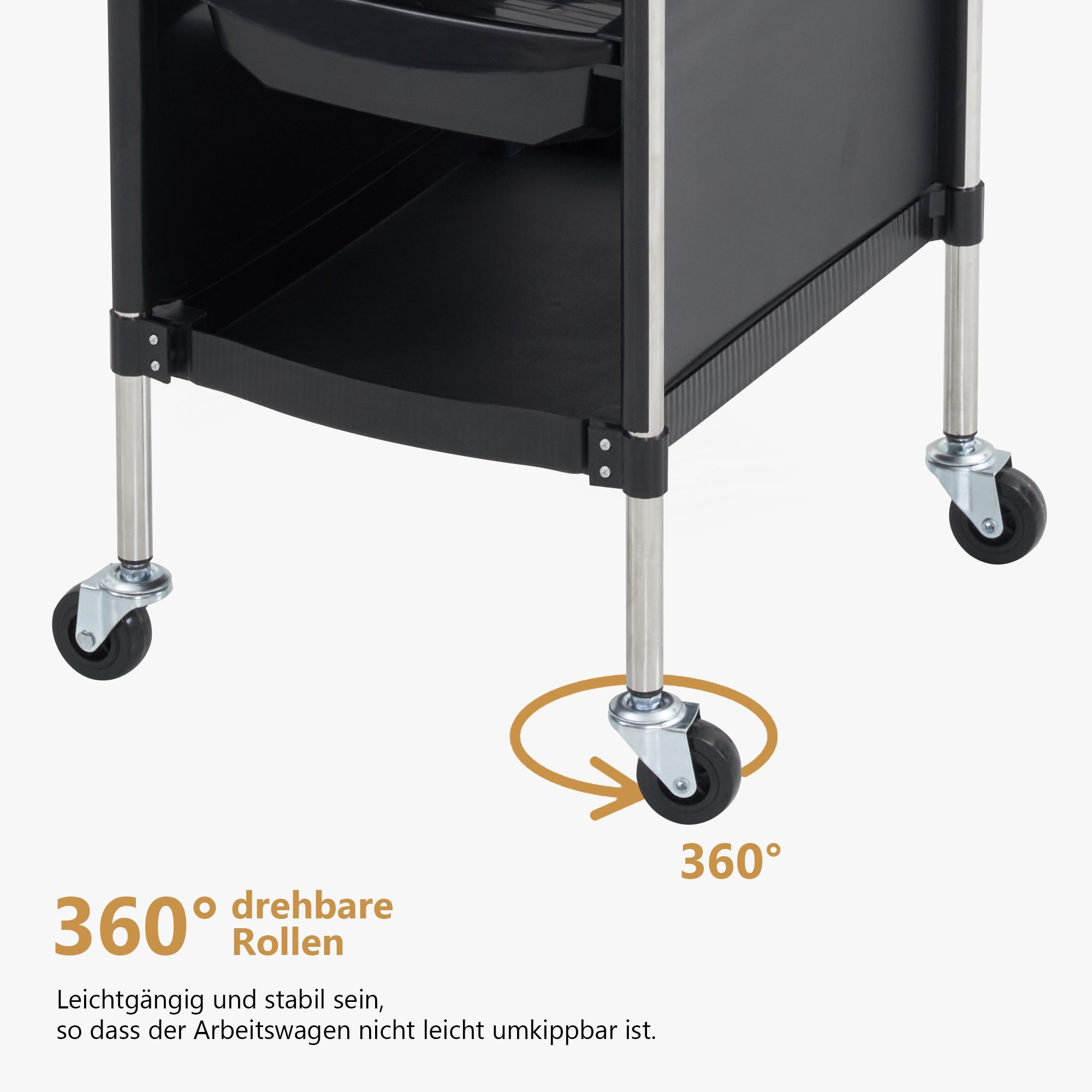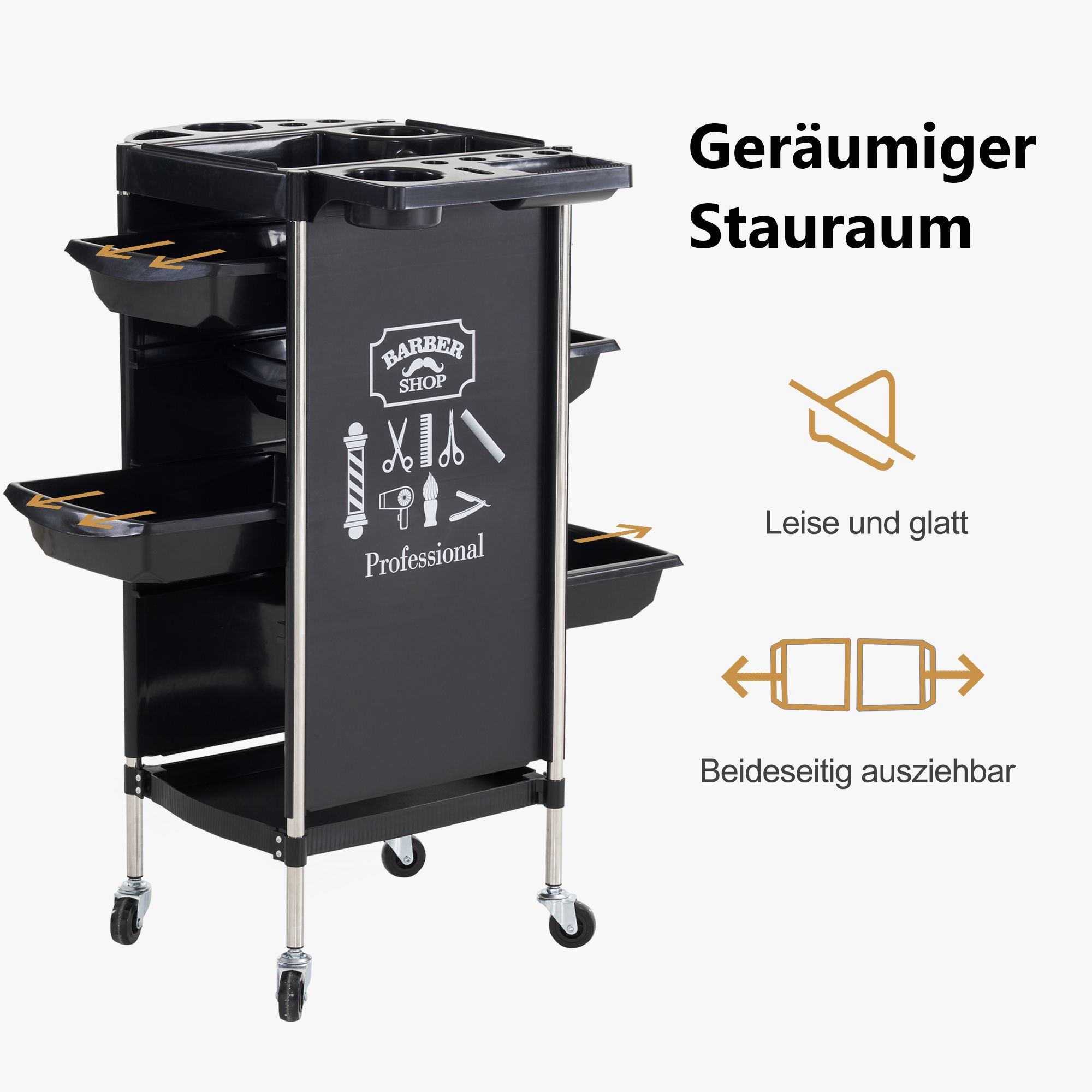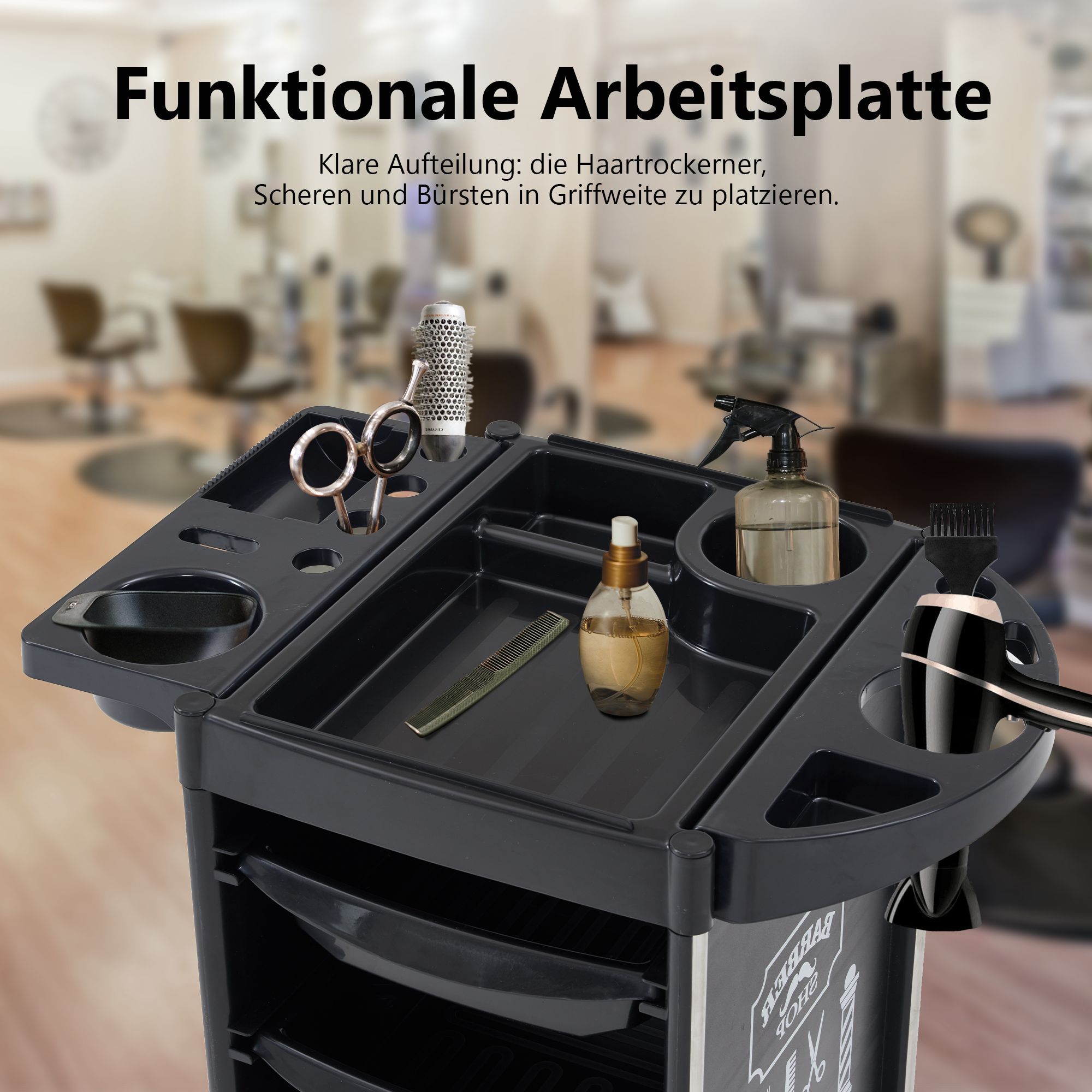 Barberpub Friseurwagen Bedienungswagen Arbeitswagen Drehbar Schwarz 2023BK-N