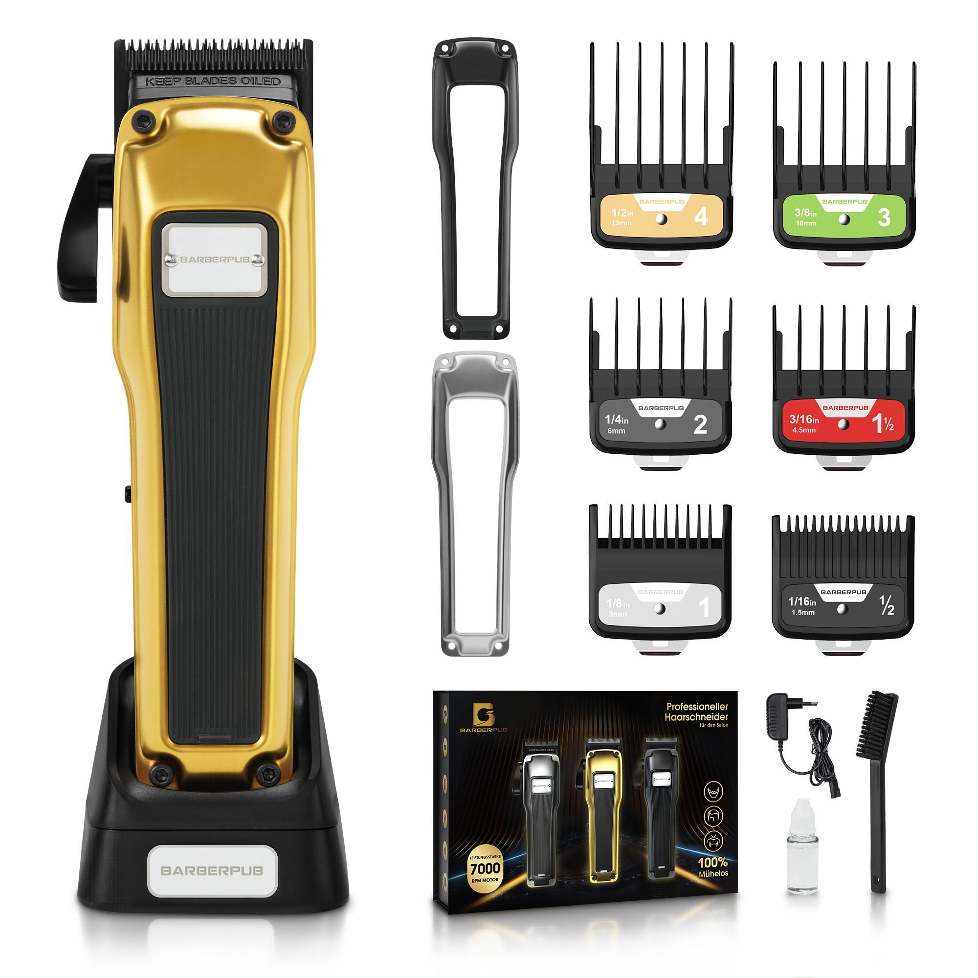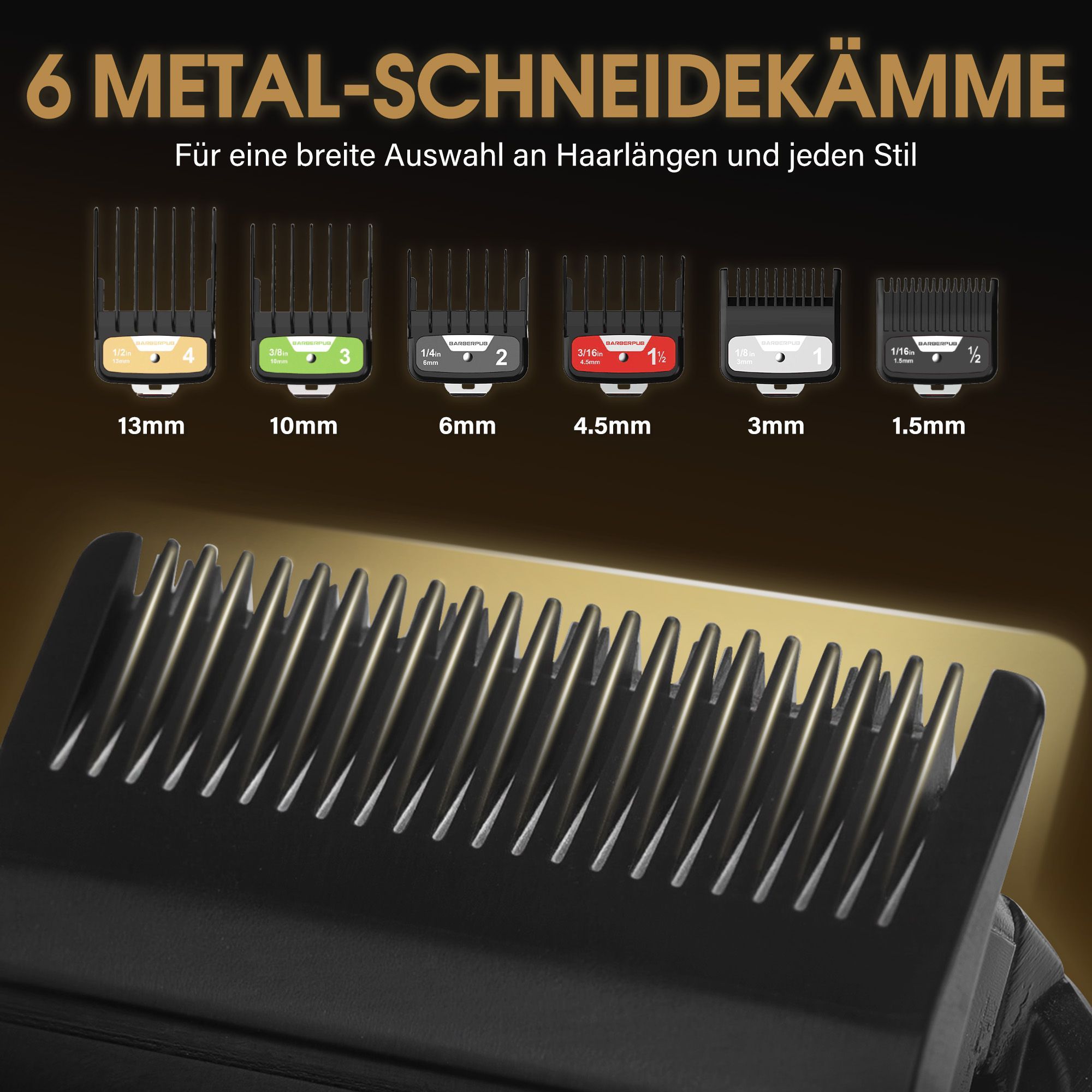 BarberPub Haarschneidemaschine Profi, Haarschneider 6 Klingen,2 Gehäusedeckeln, HC176