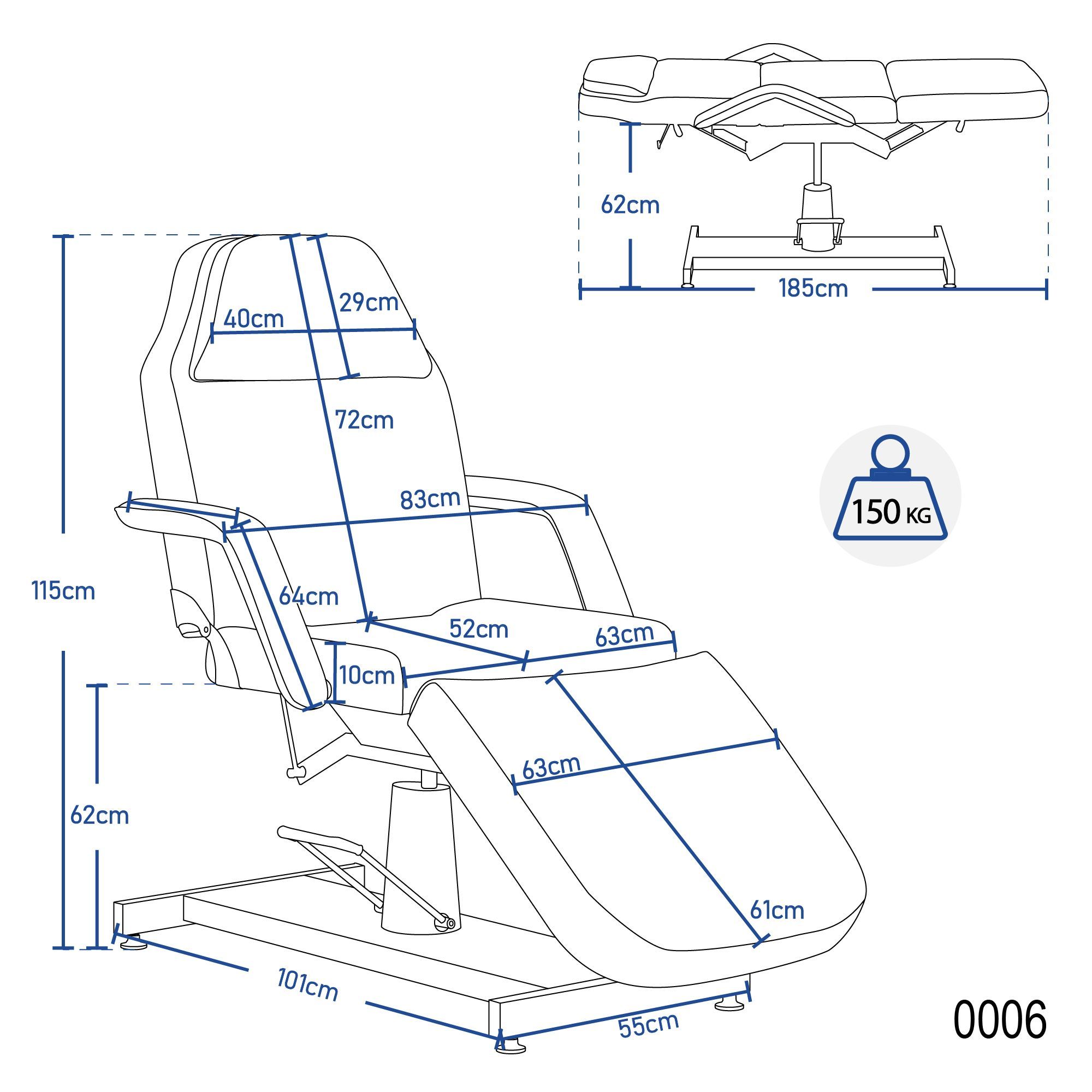 Barberpub Hydraulische Kosmetikliege Therapieliege Massageliege Tattooliege 0006W