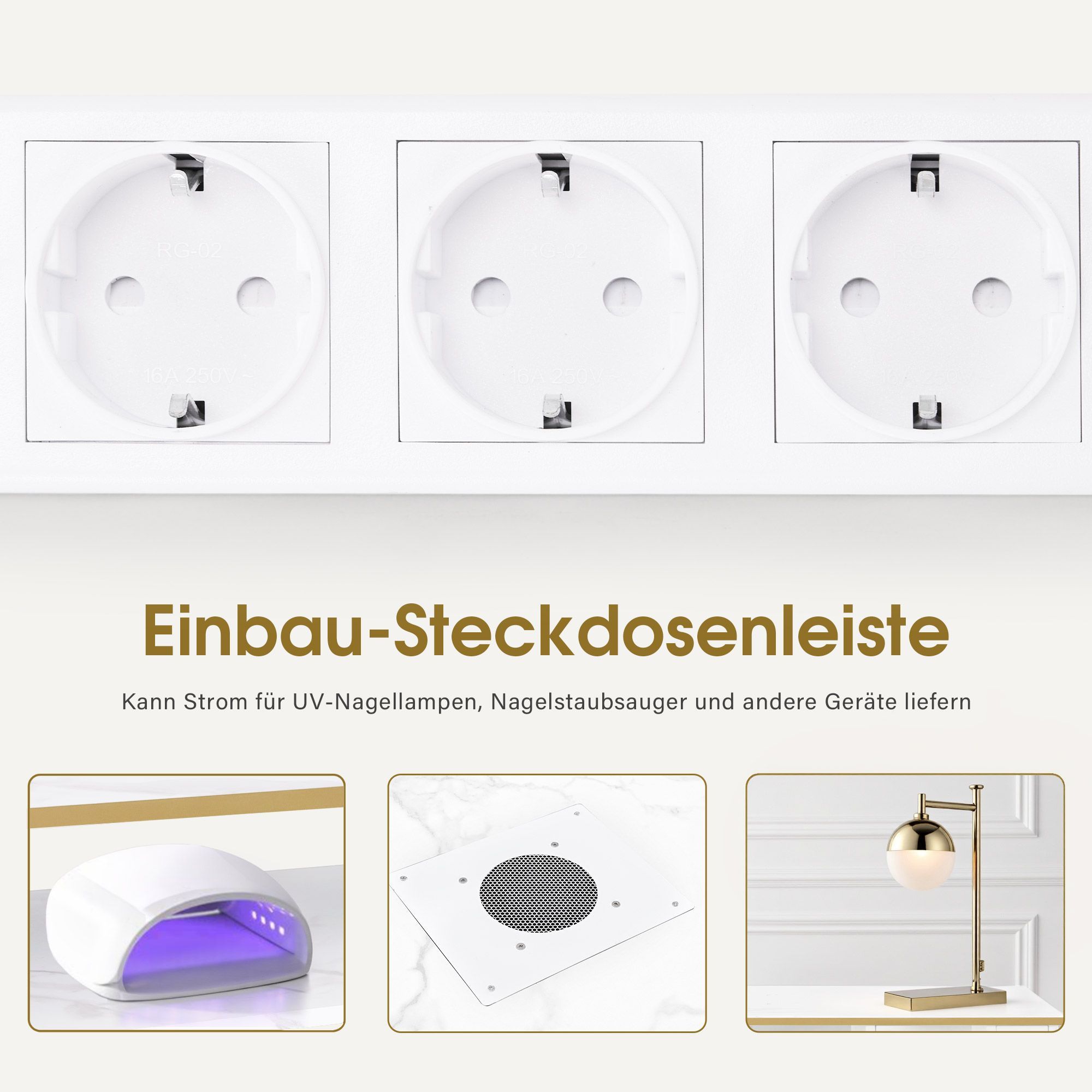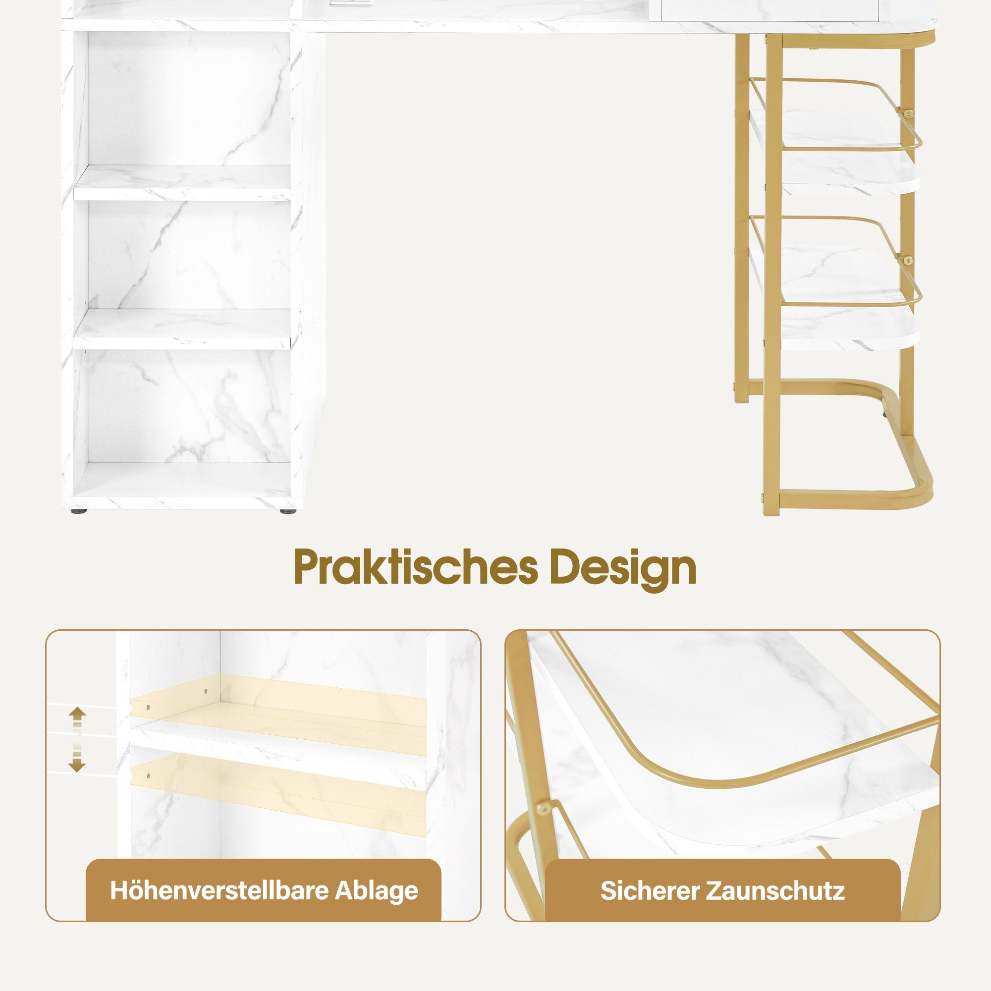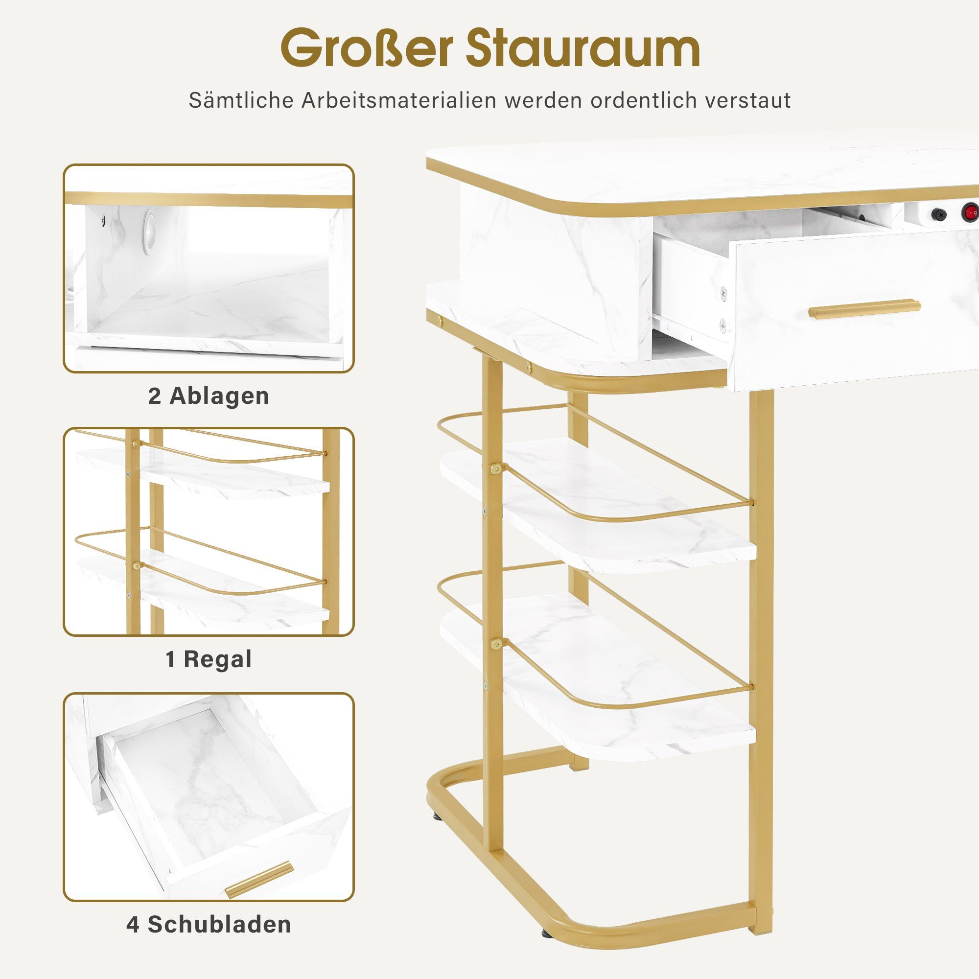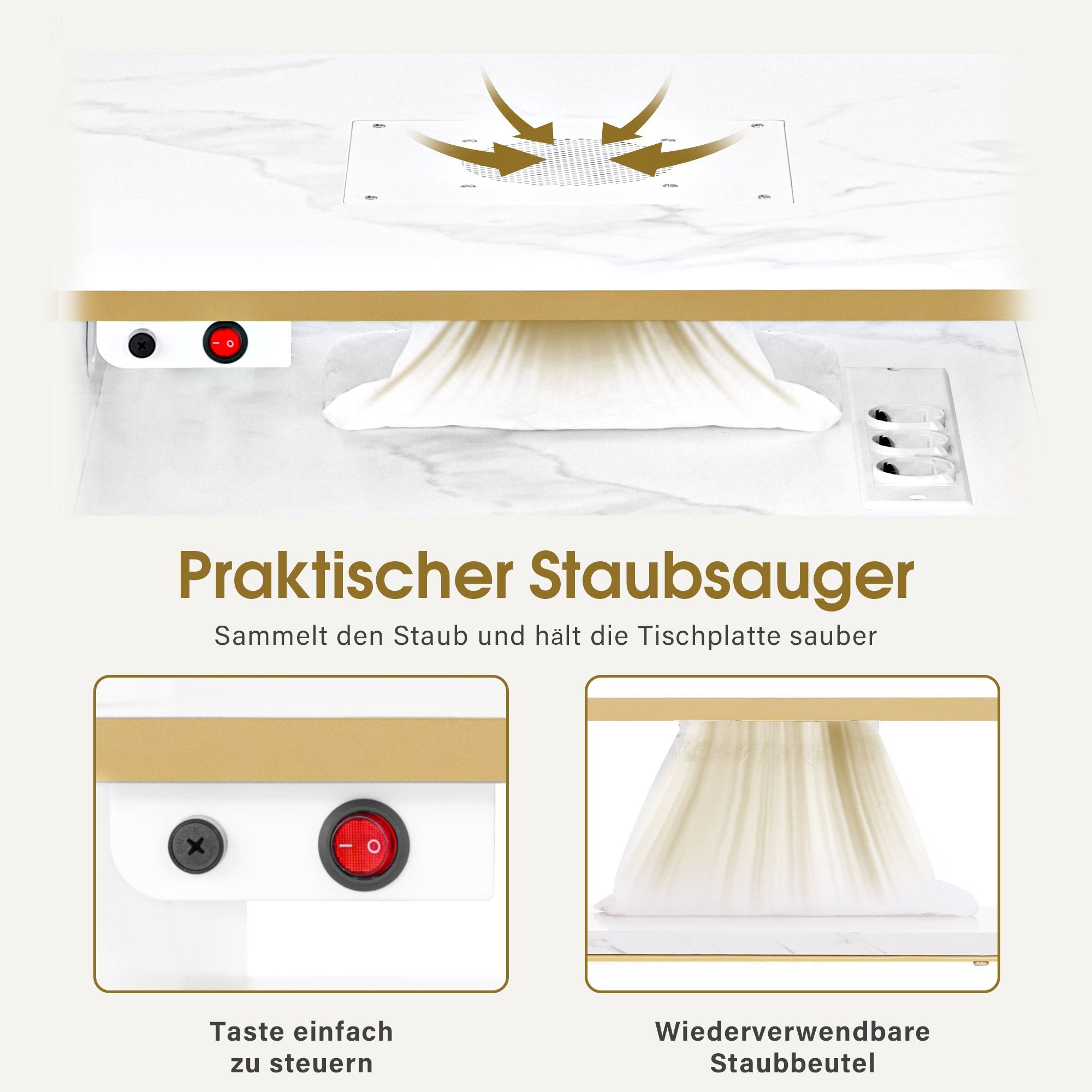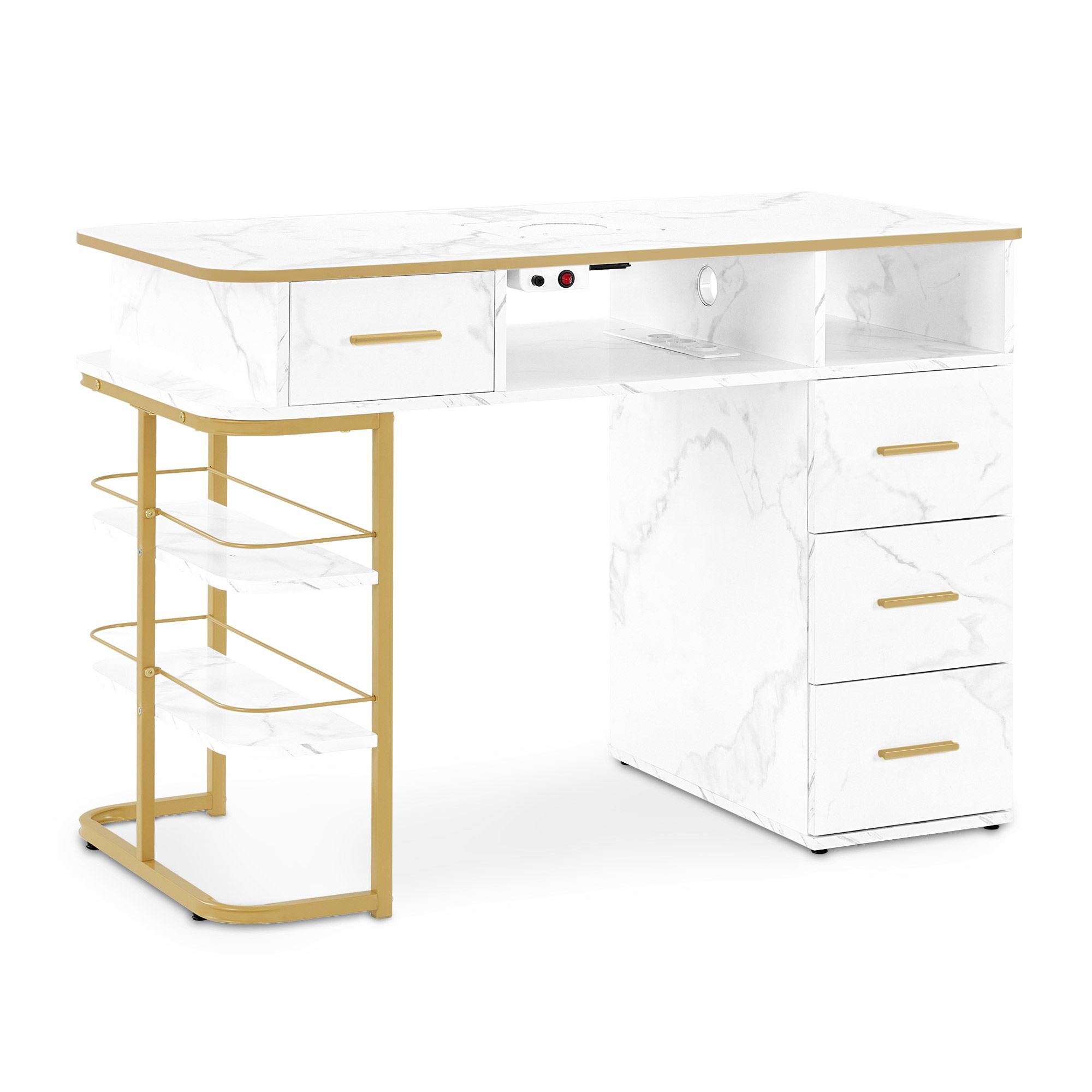 BarberPub Maniküretisch, Nageltisch mit Absaugung, Marmor-Weiß, 2464