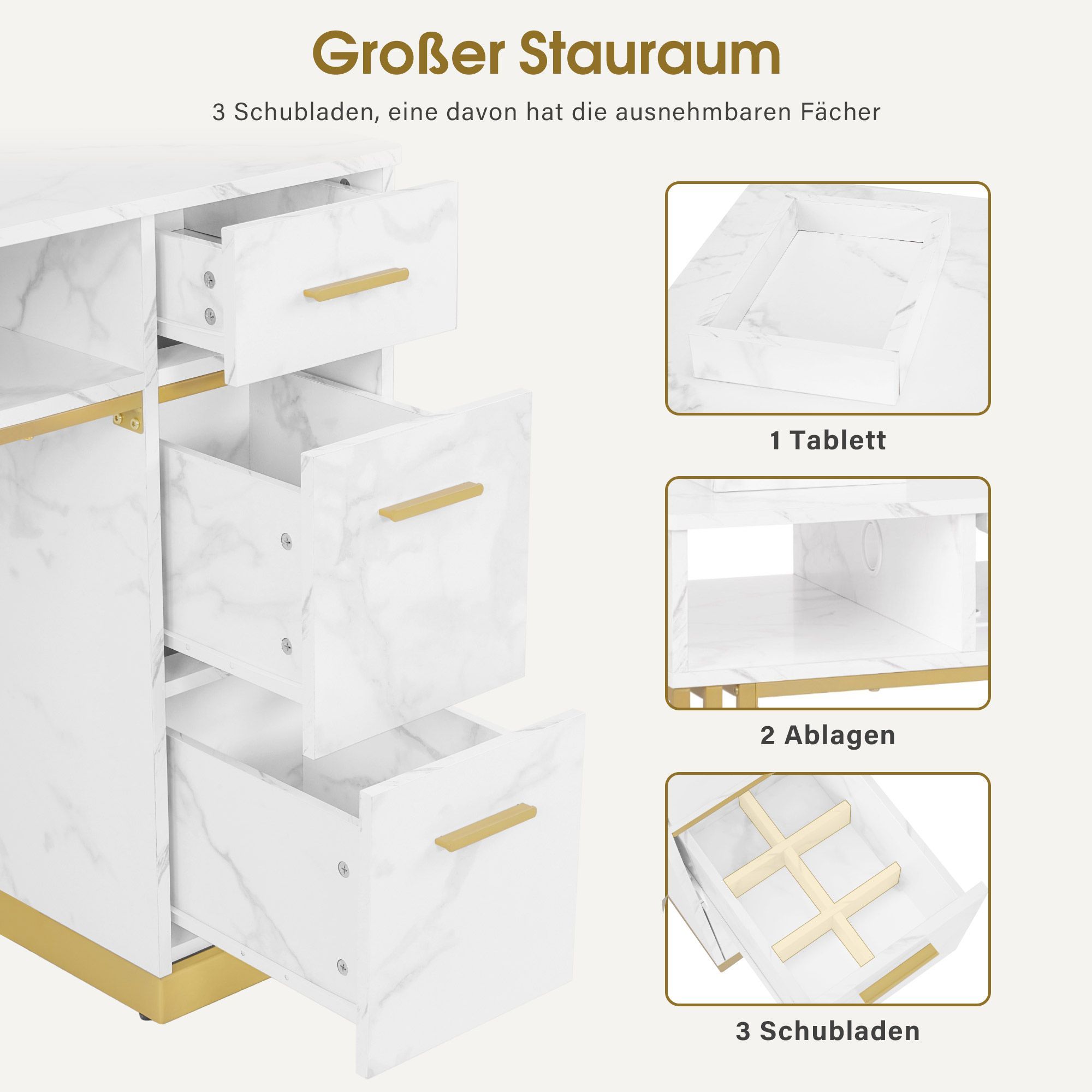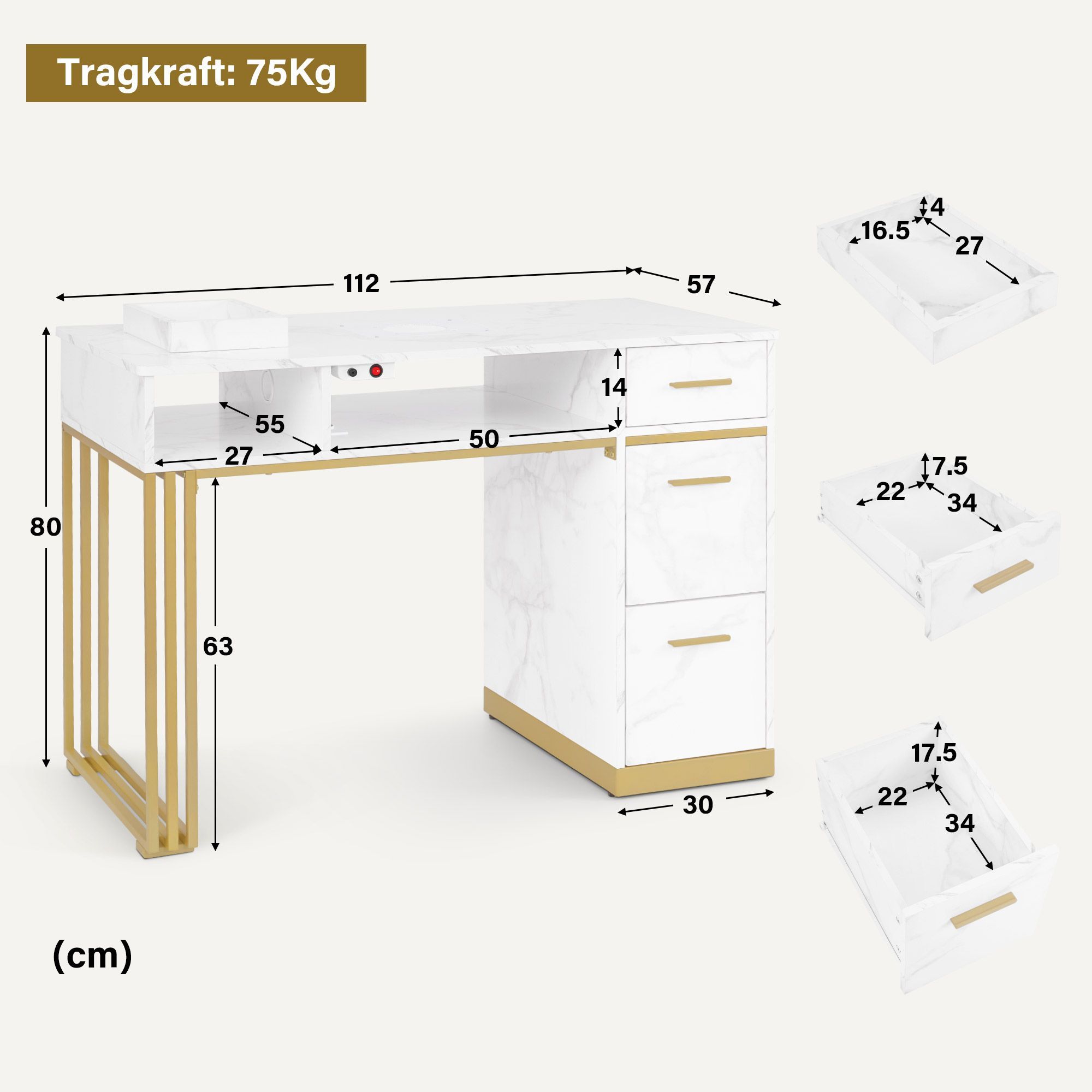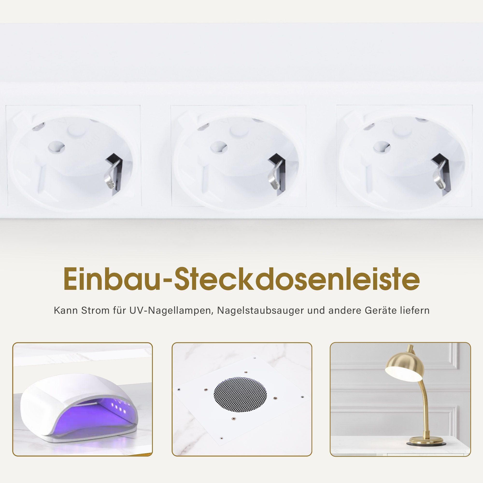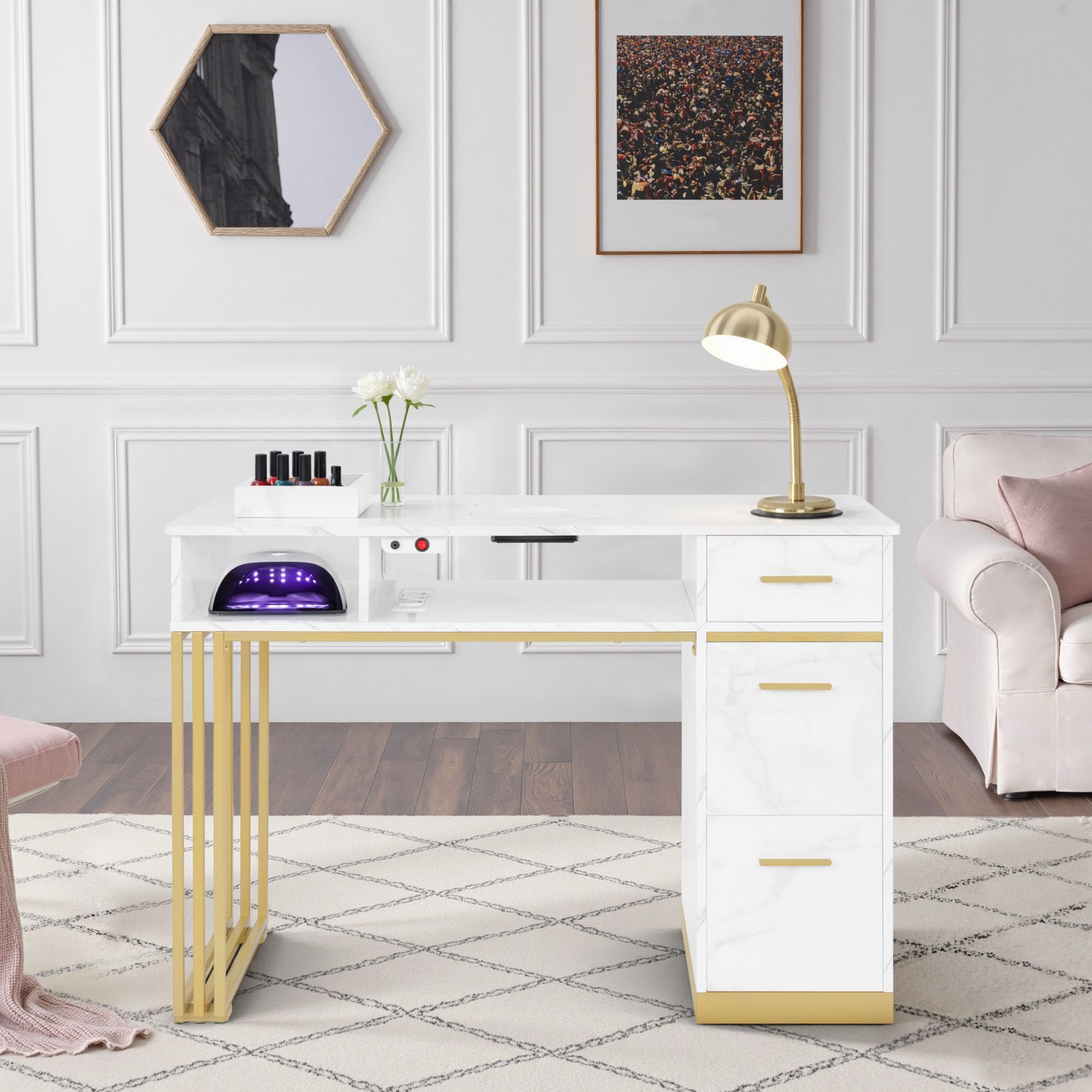 BarberPub Maniküretisch, Nageltisch mit Absaugung, Marmor-Weiß, 2472