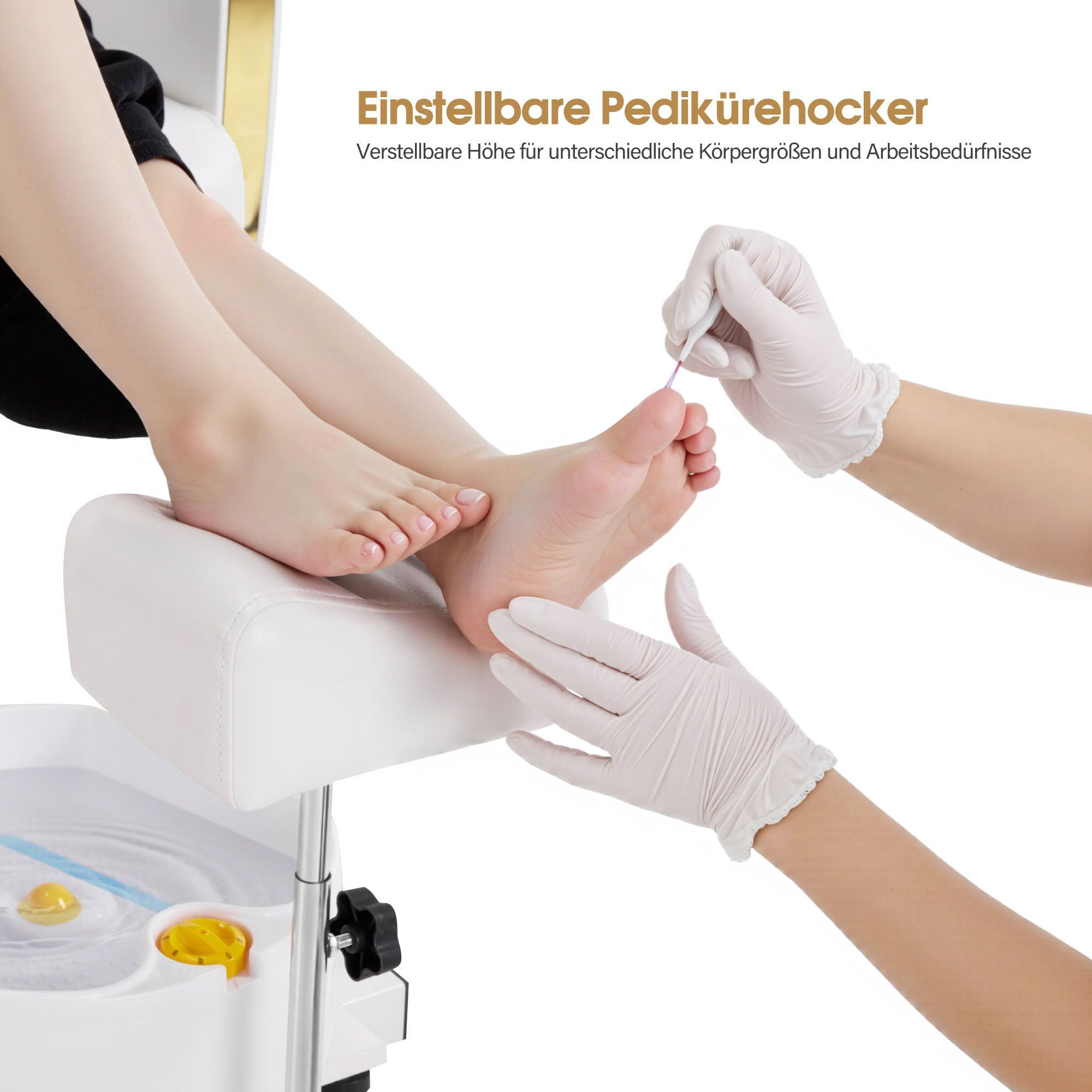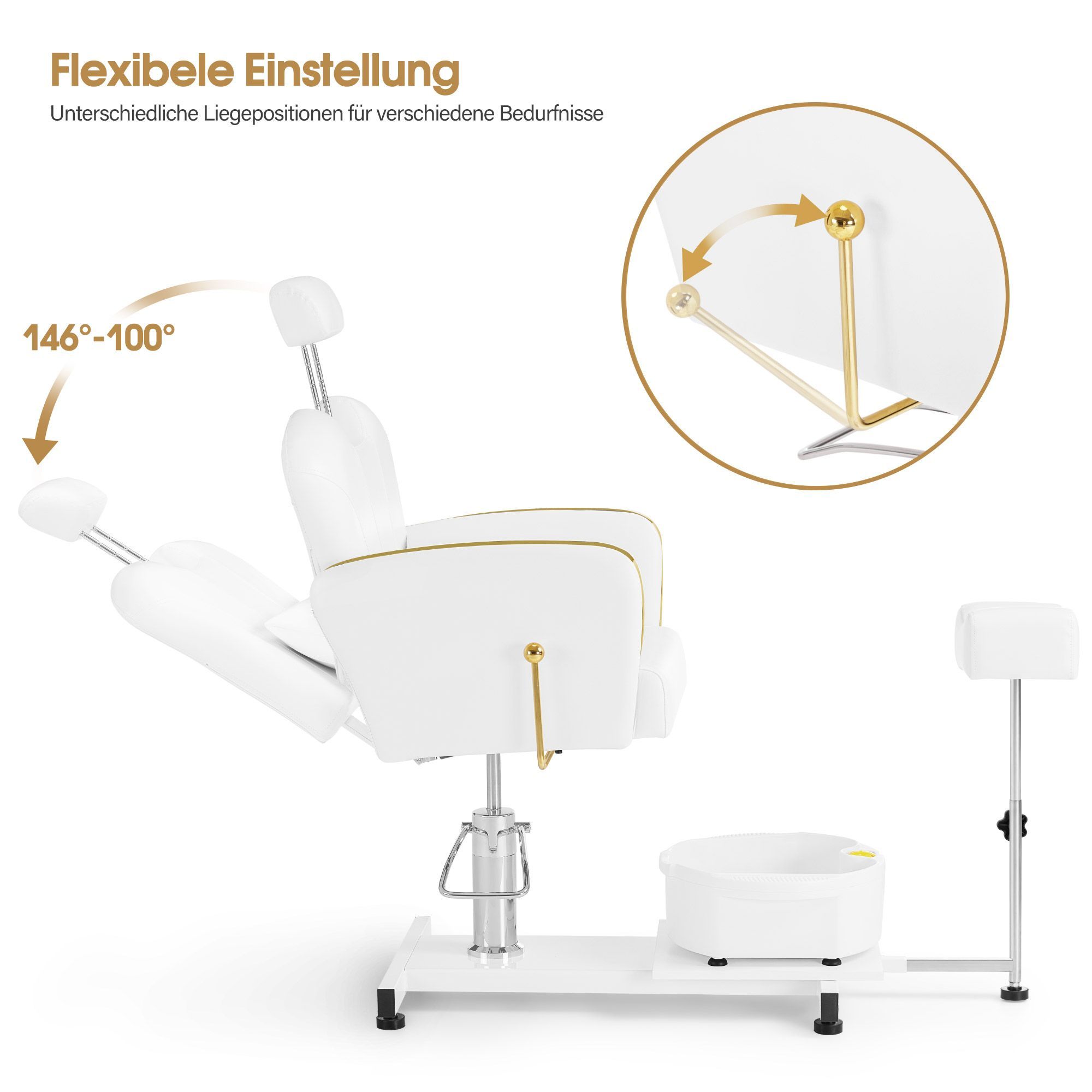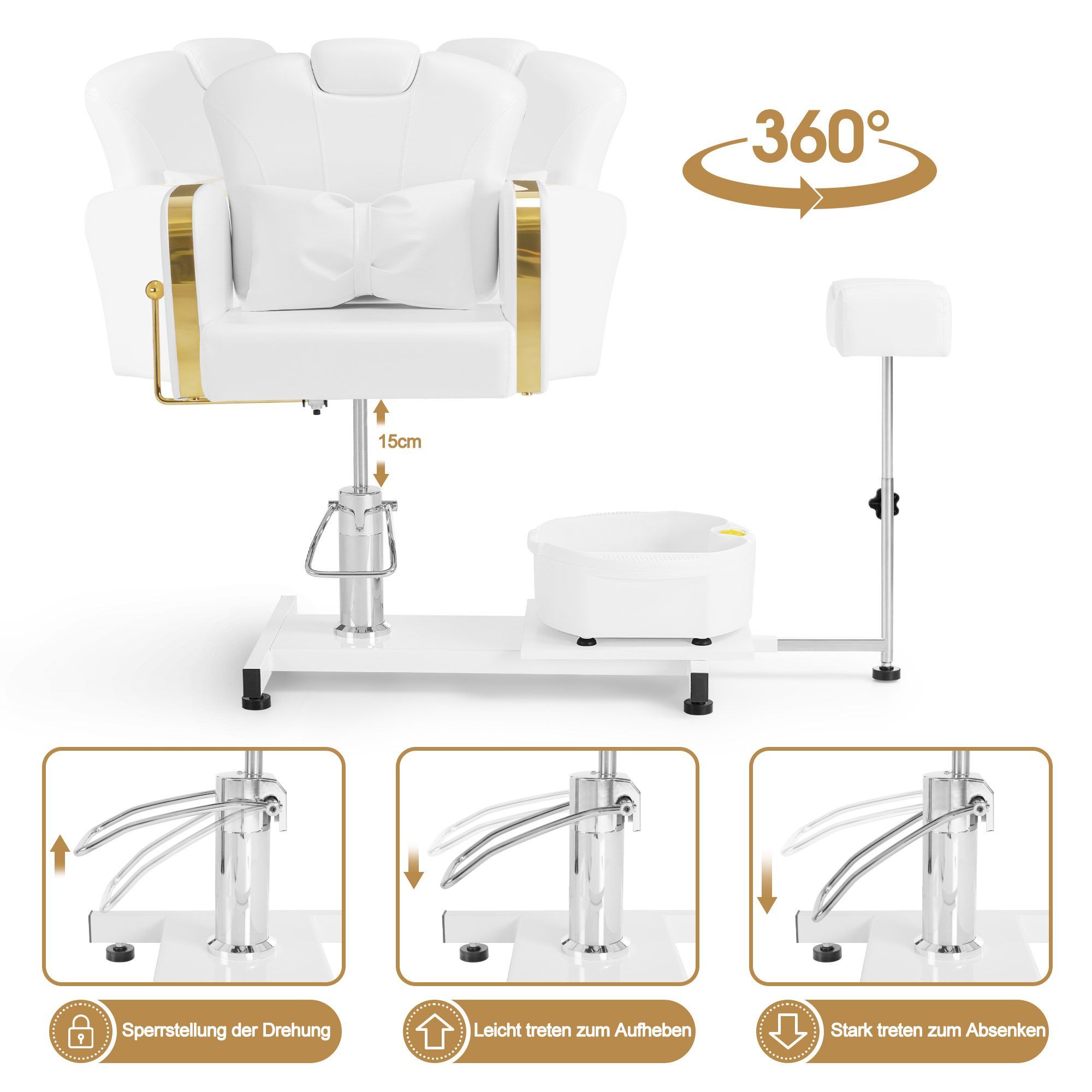 BarberPub Pediküre Stuhl mit Fußbadewanne F0371 (Gold-Weiß)