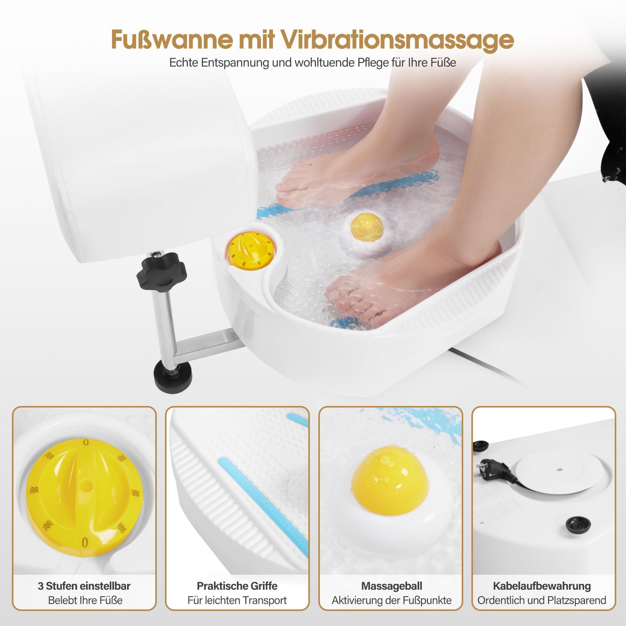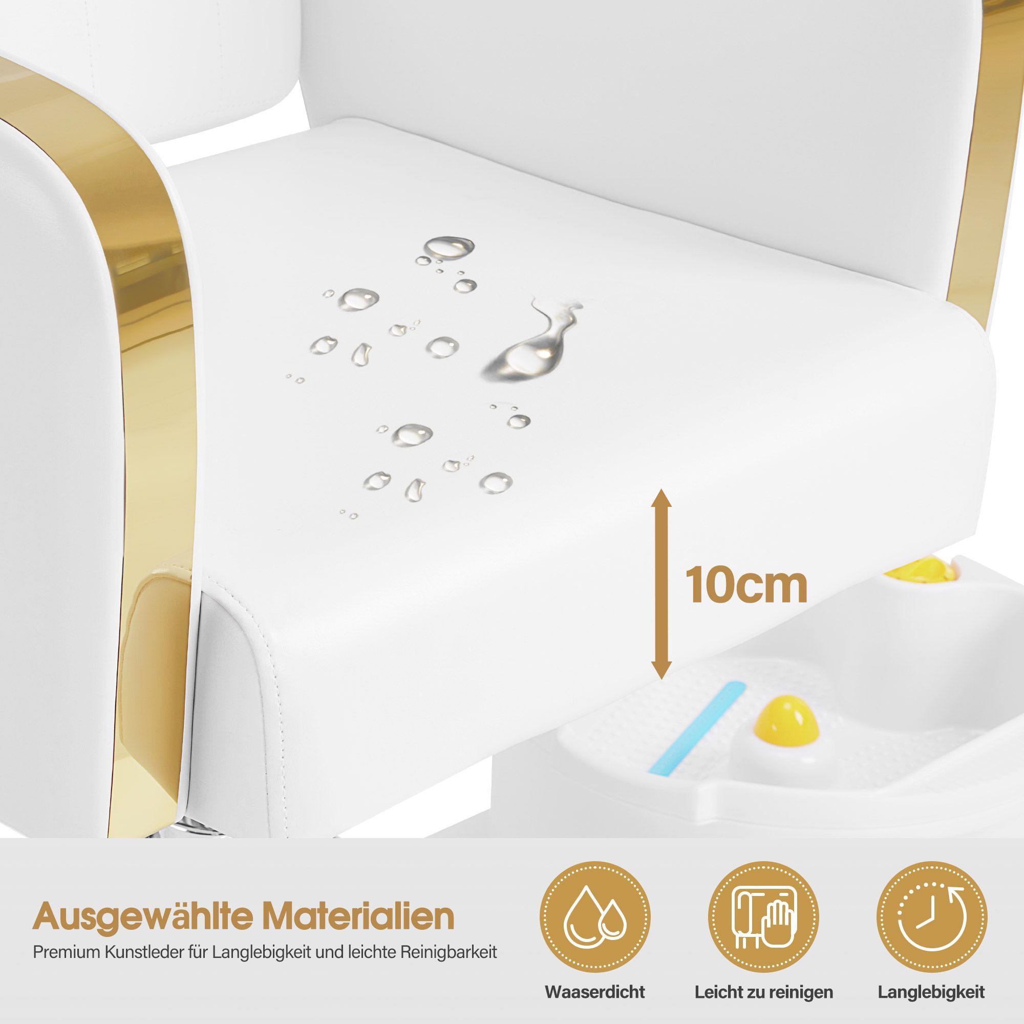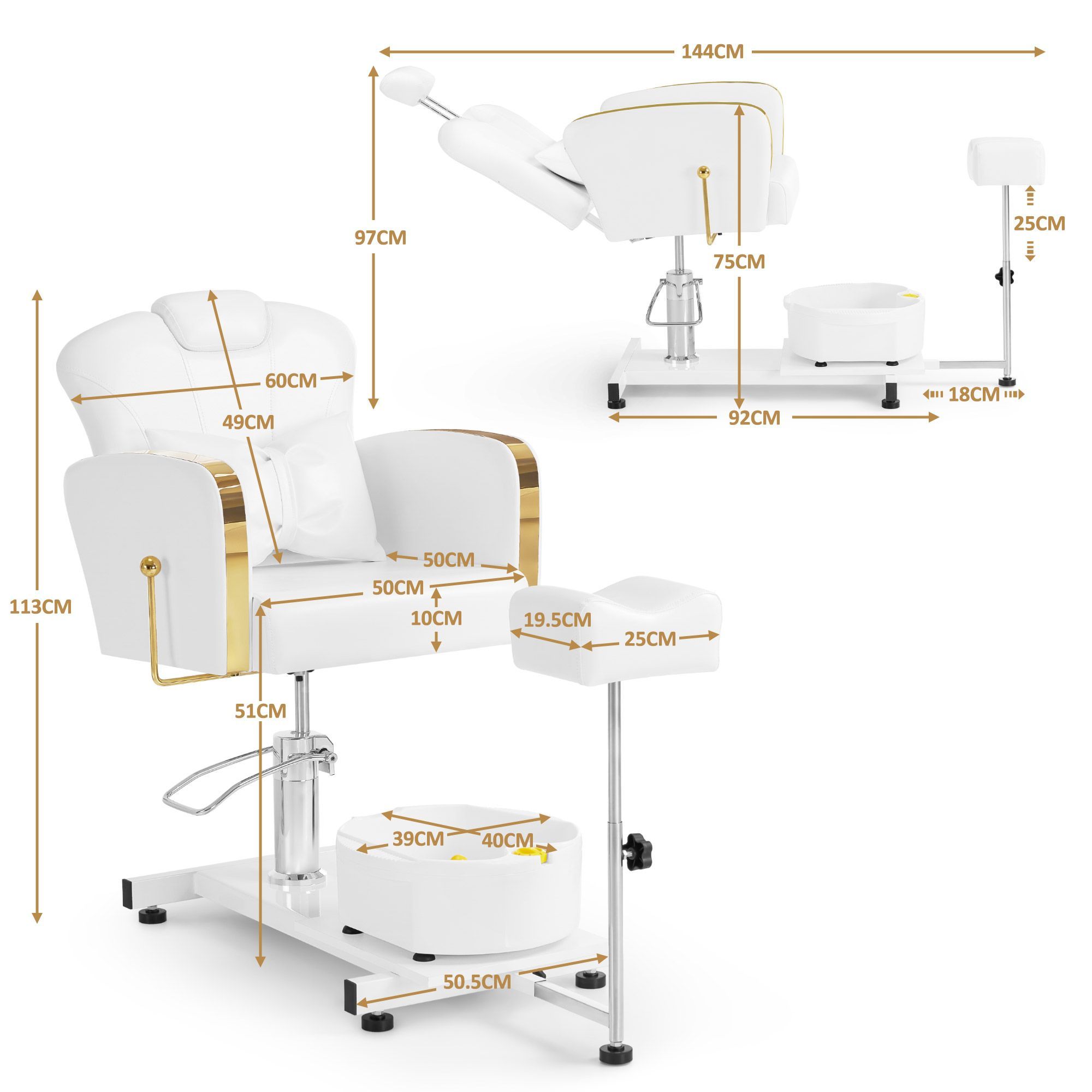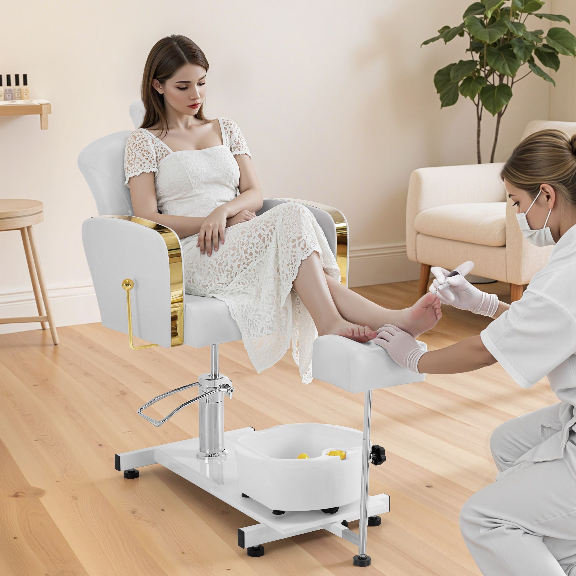 BarberPub Pediküre Stuhl mit Fußbadewanne F0371 (Gold-Weiß)