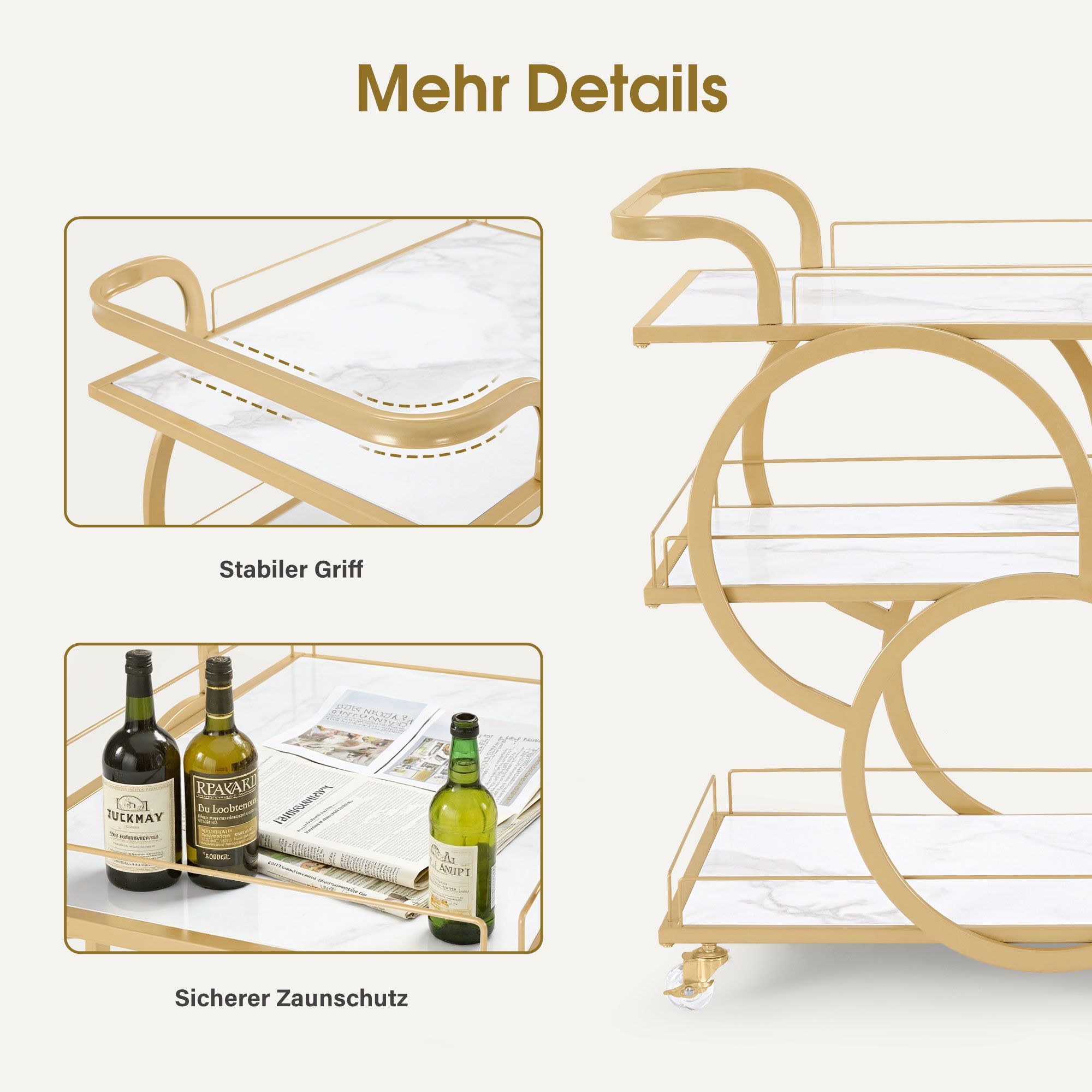BarberPub Servierwagen 3 Ebenen, Rollwagen, 0074