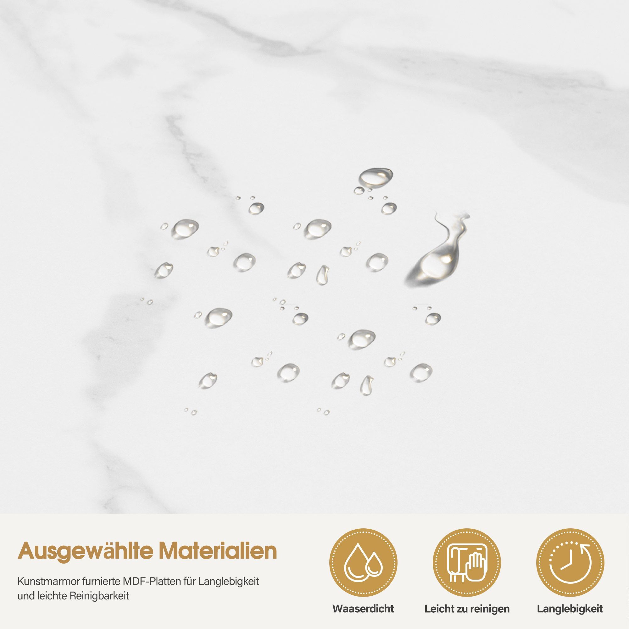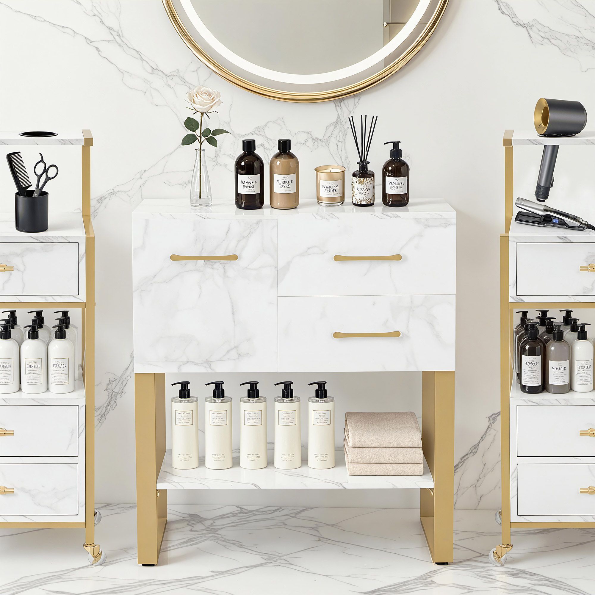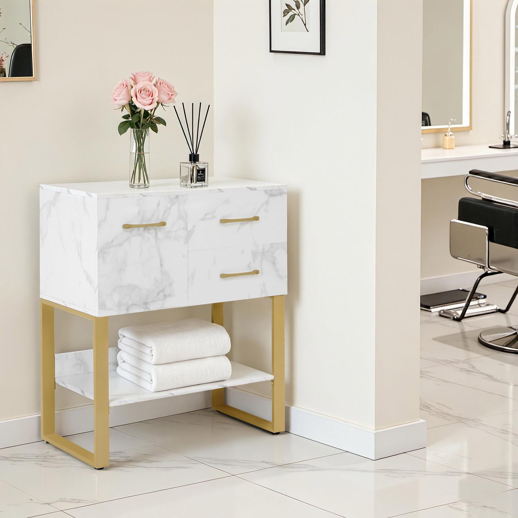 BarberPub Sideboard mit 2 Schubladen, Beistellschrank Weiß-Gold, 6678