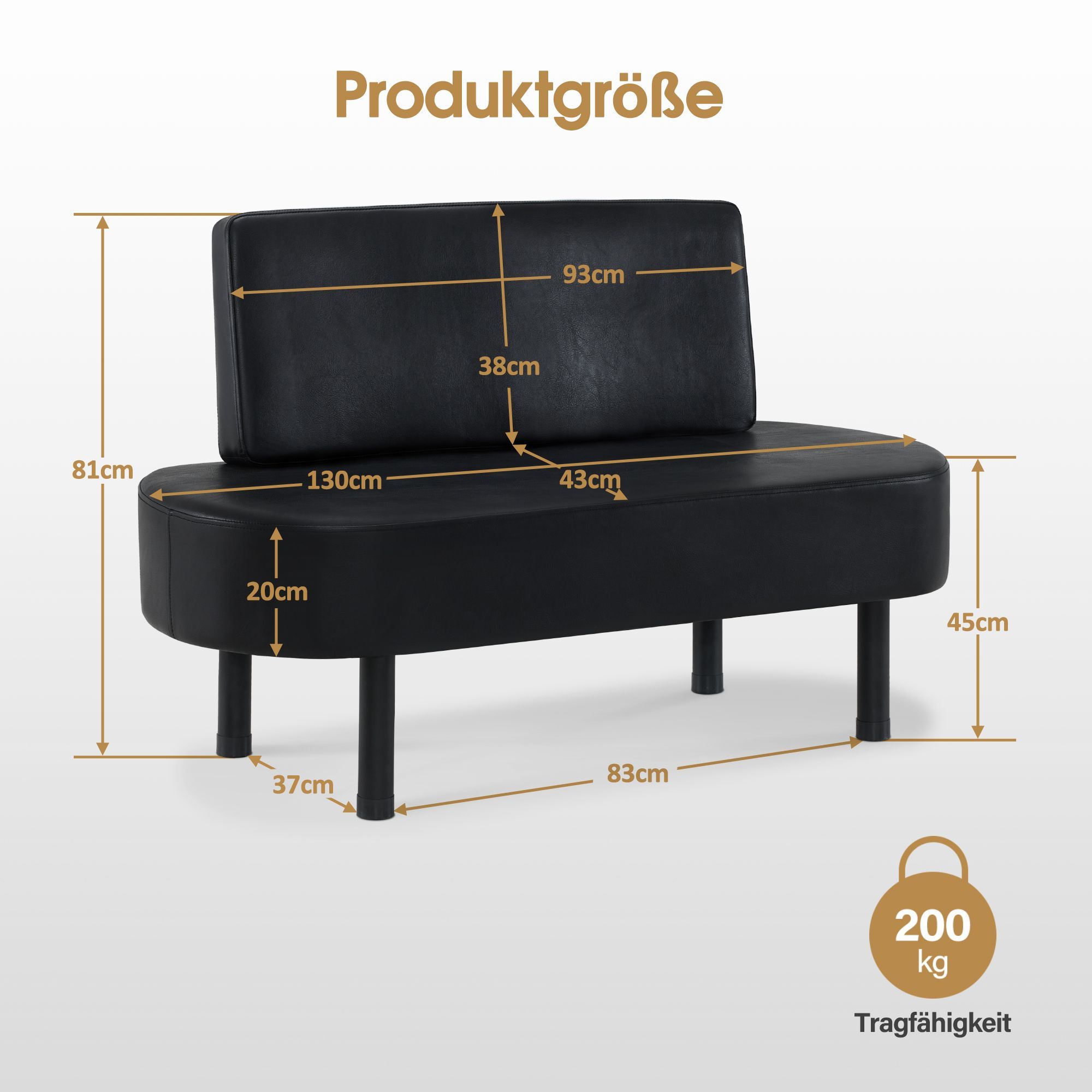 BarberPub Sitzbank mit Rückenlehne Friseur W517 (Schwarz/Kunstleder)