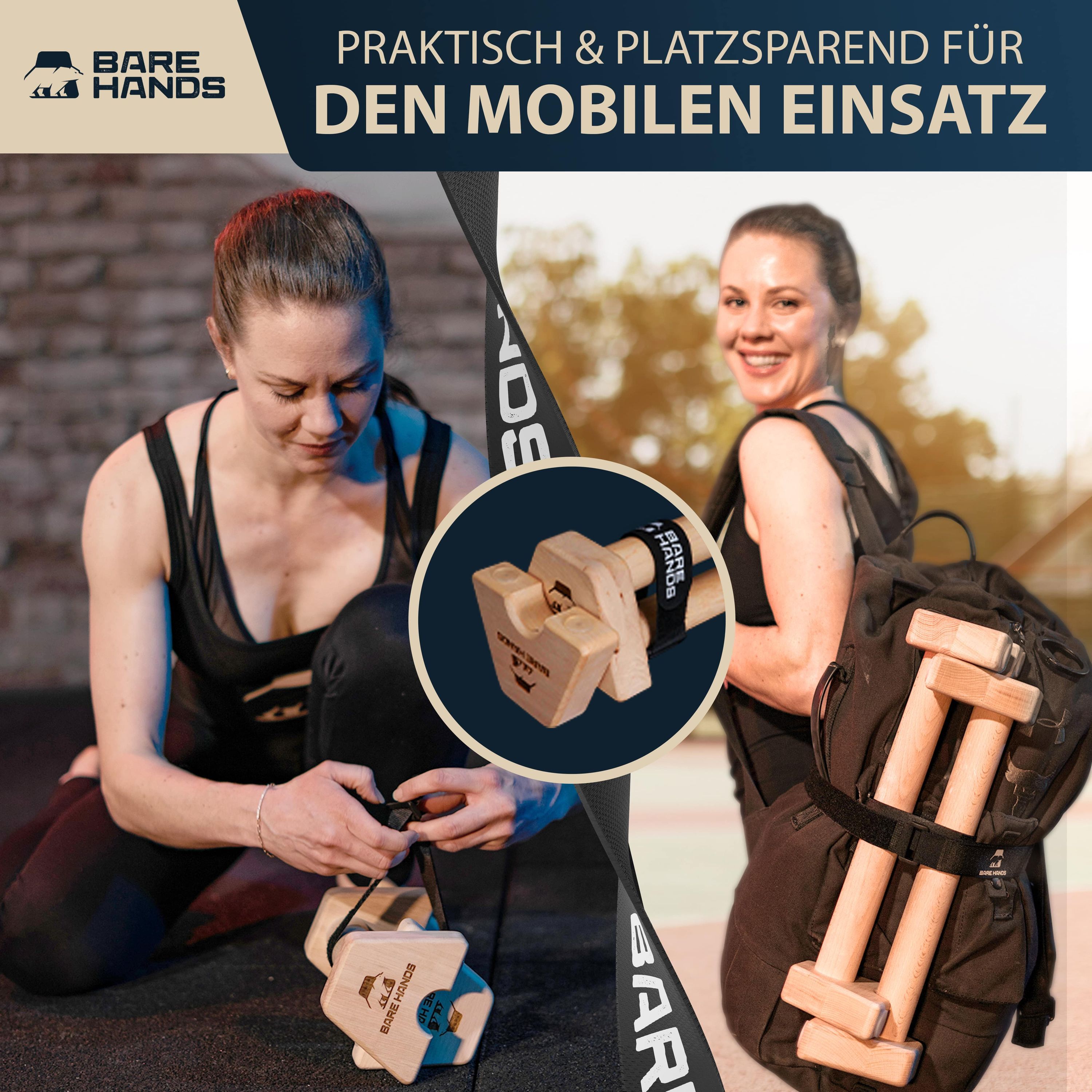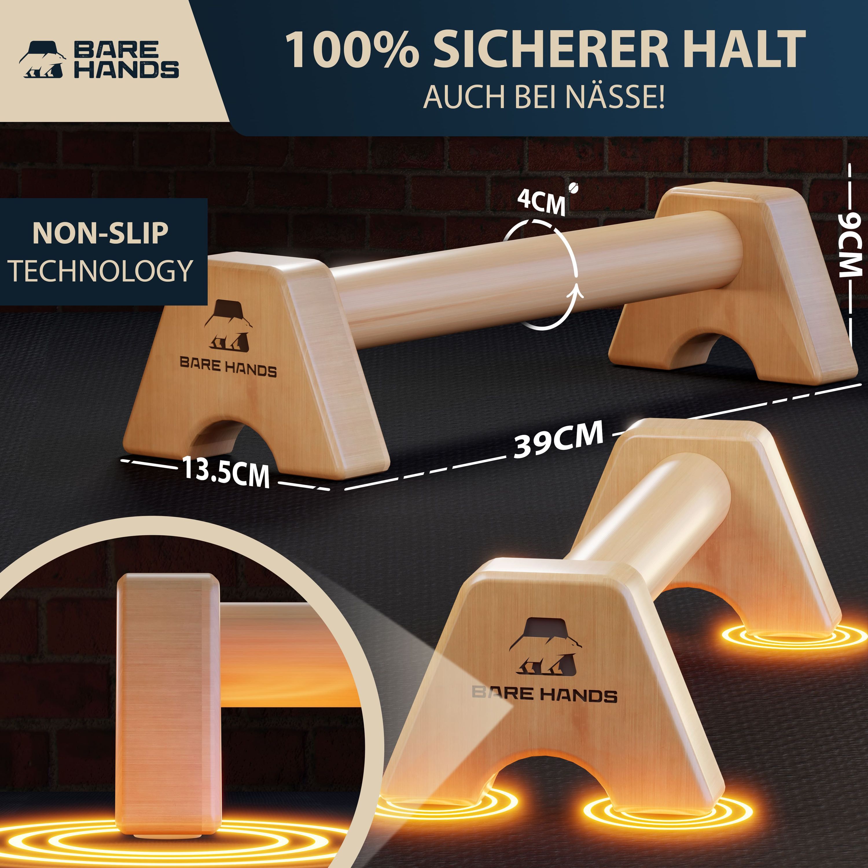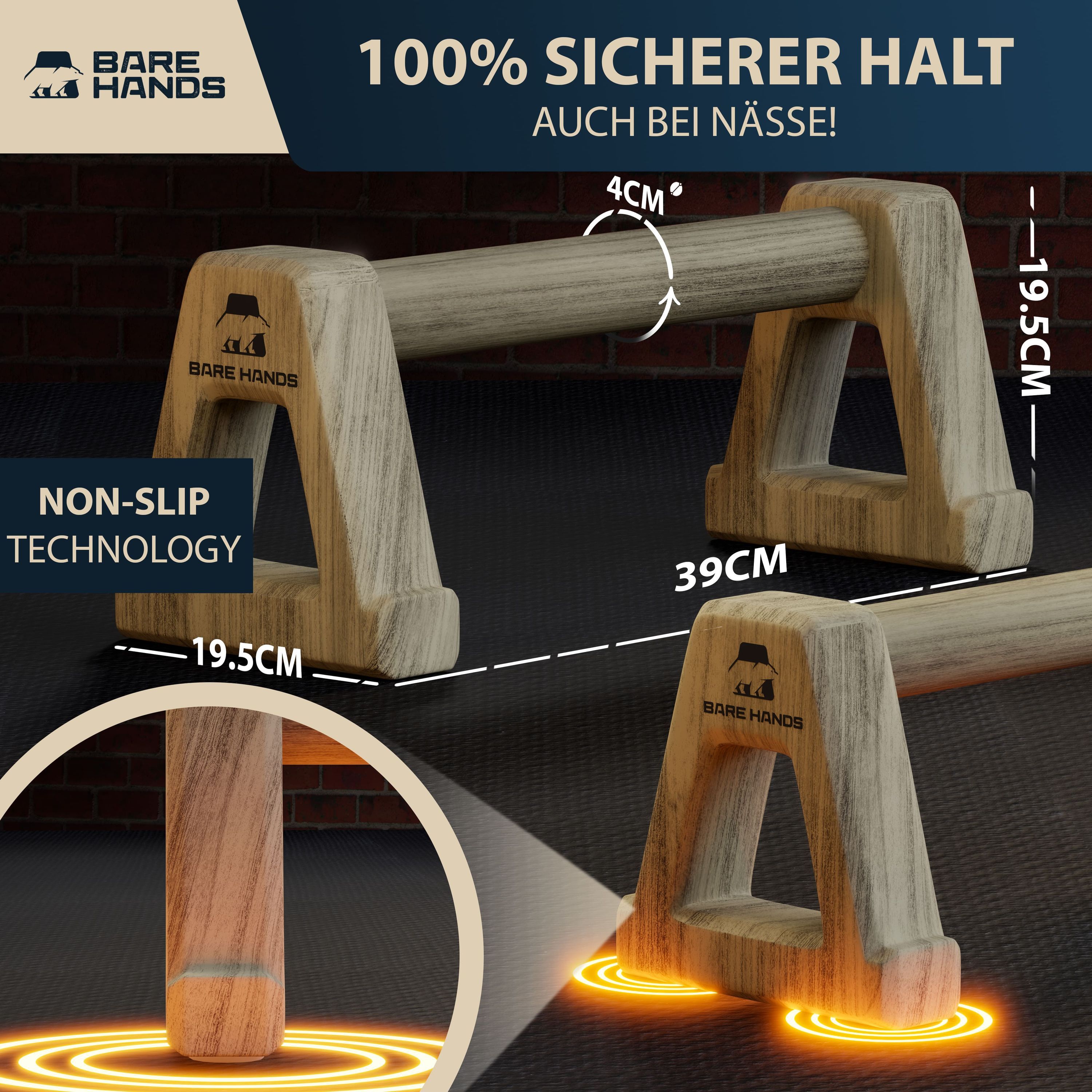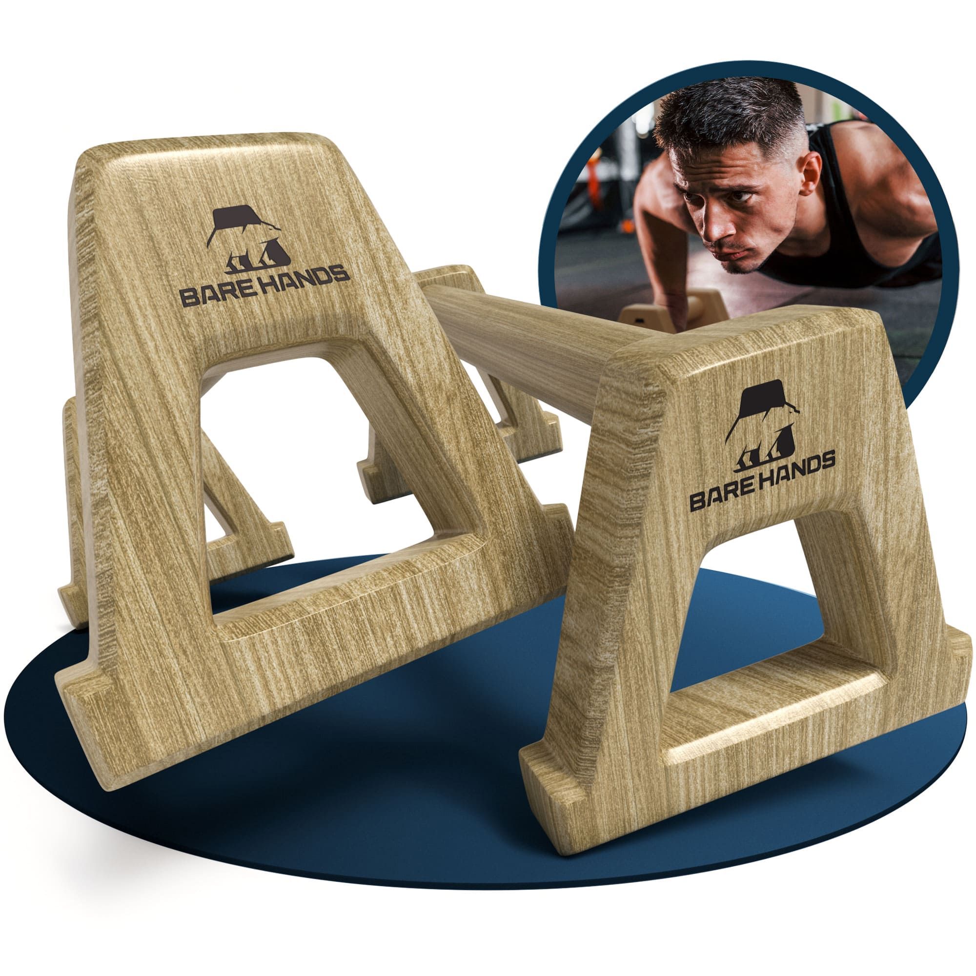 Bare Hands Liegestützgriffe - 2x gelenksschonende & rutschfeste Holz Liegestützgriffe