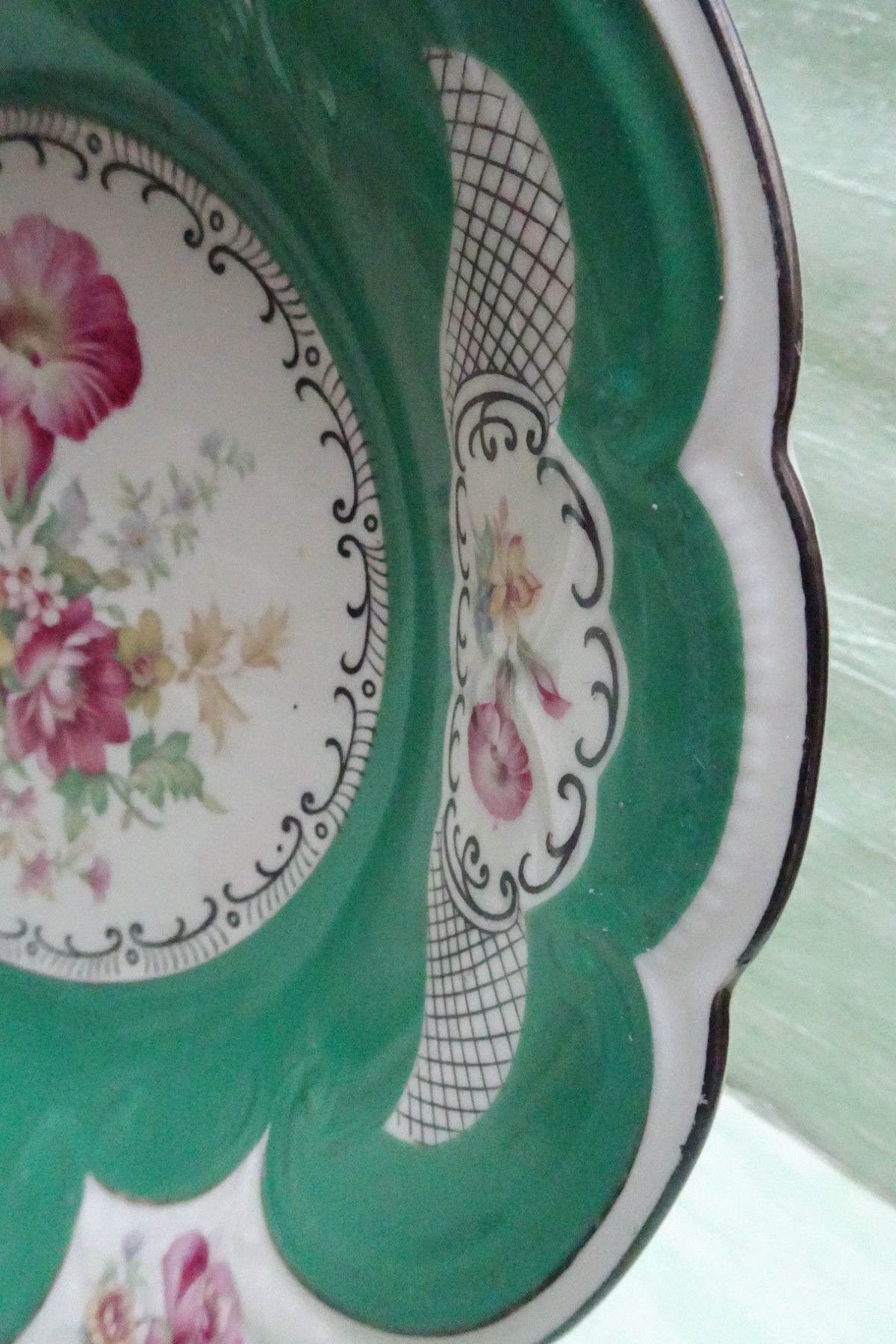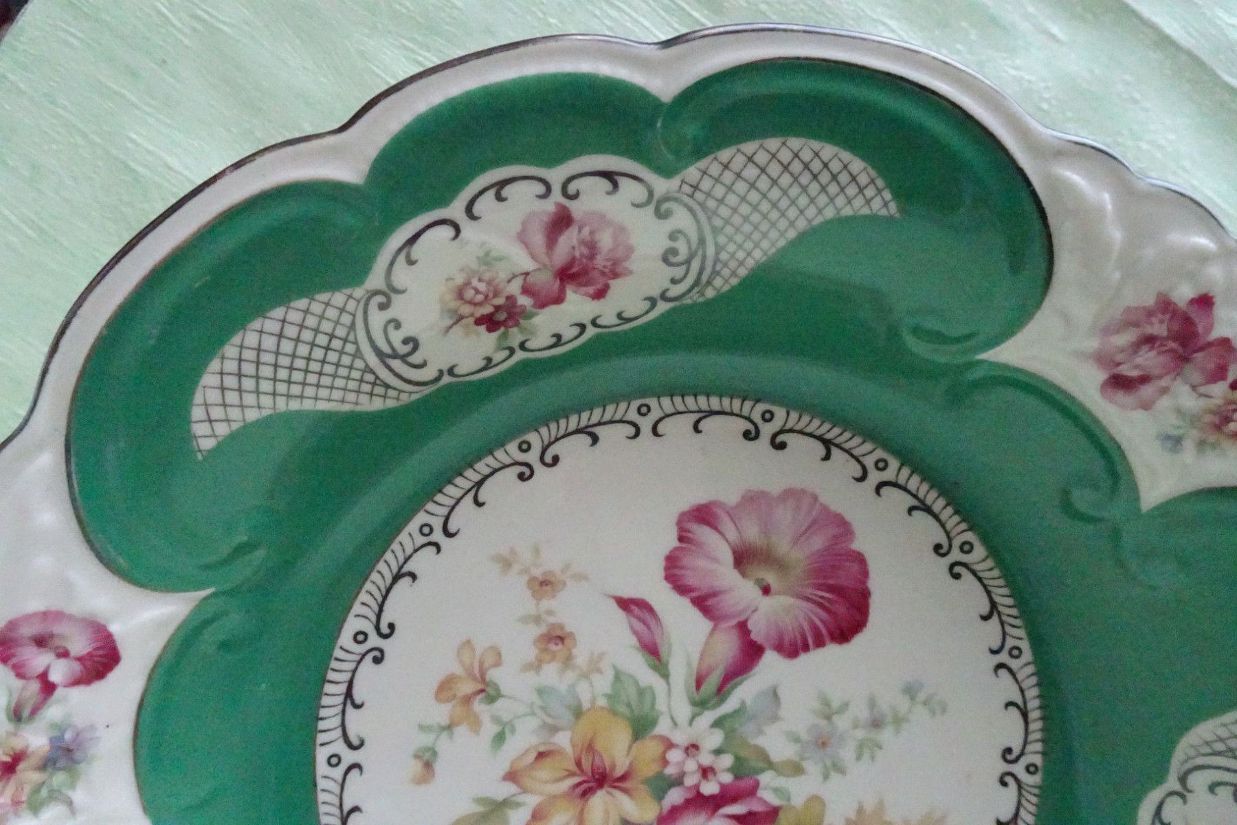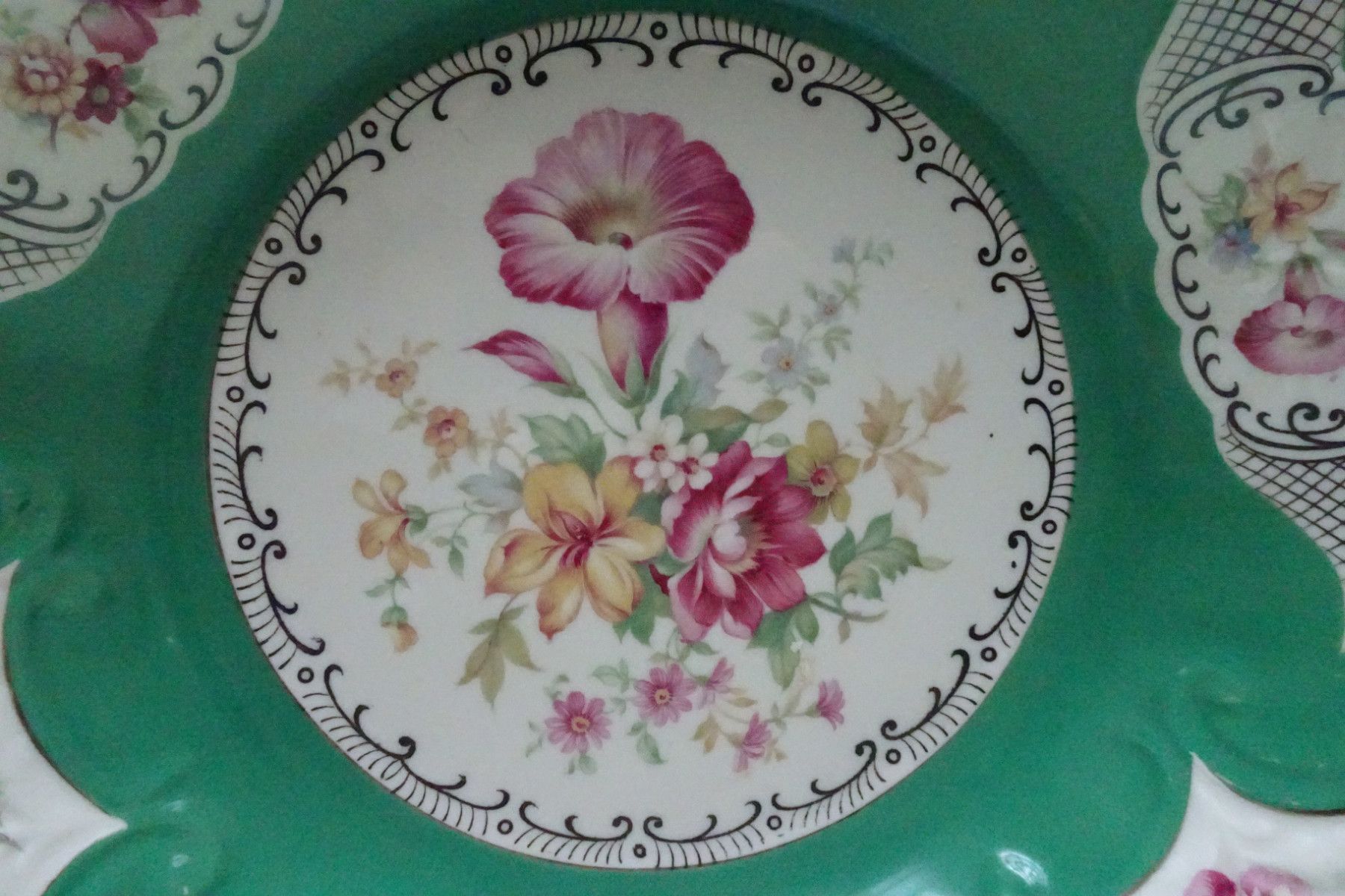 Bareuther Schale grün "schwarzer Rand Blumendekor ca 29 x 6 cm