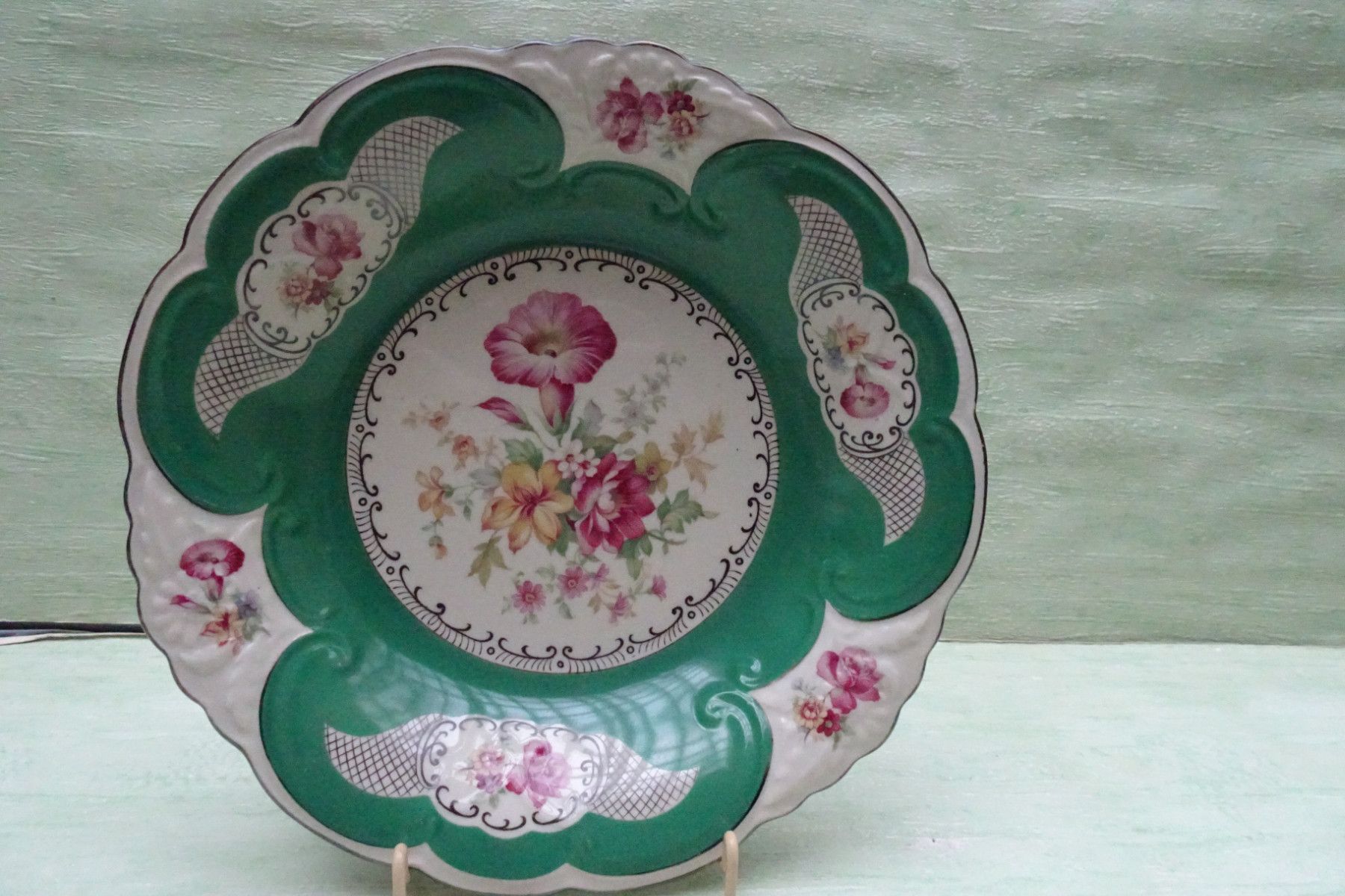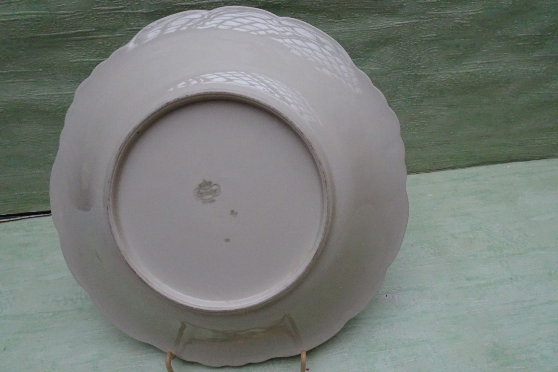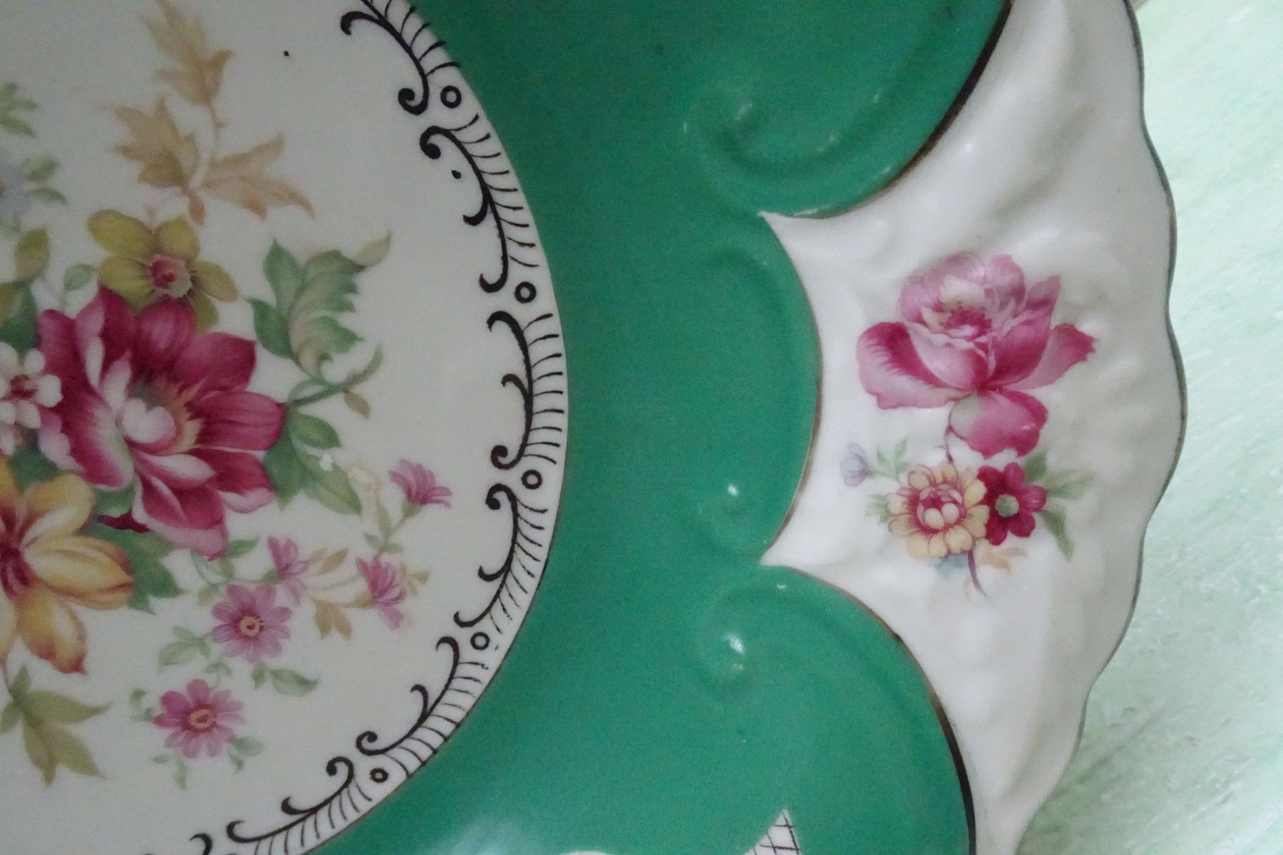 Bareuther Schale grün "schwarzer Rand Blumendekor ca 29 x 6 cm