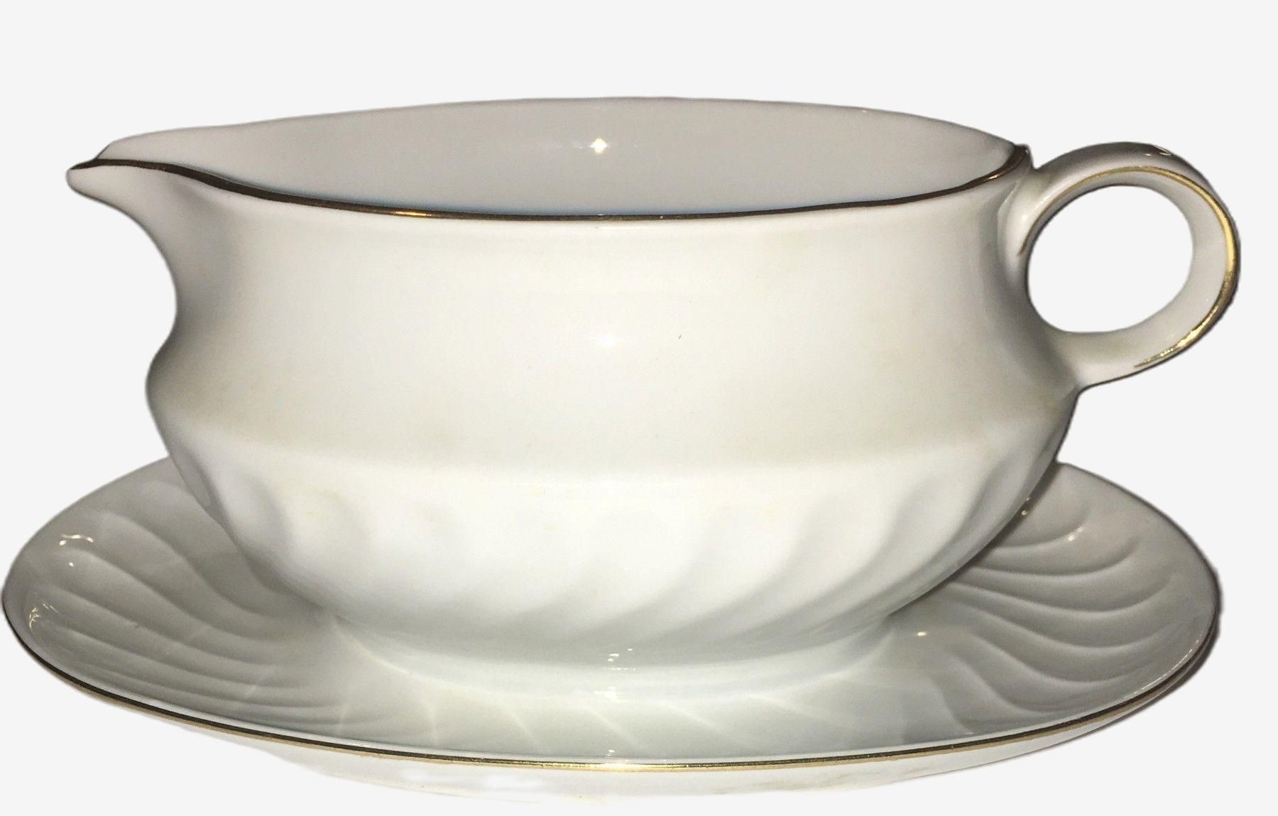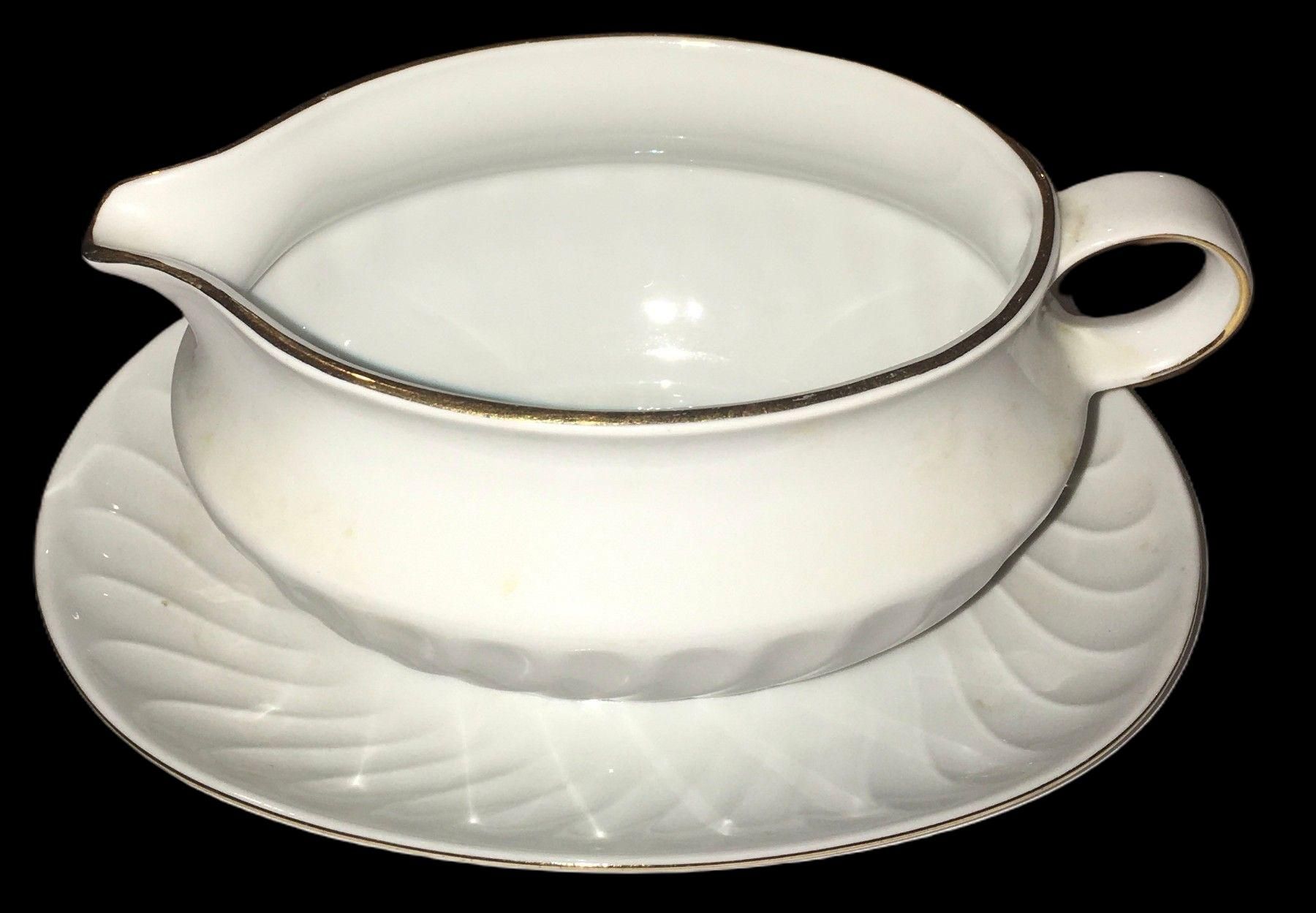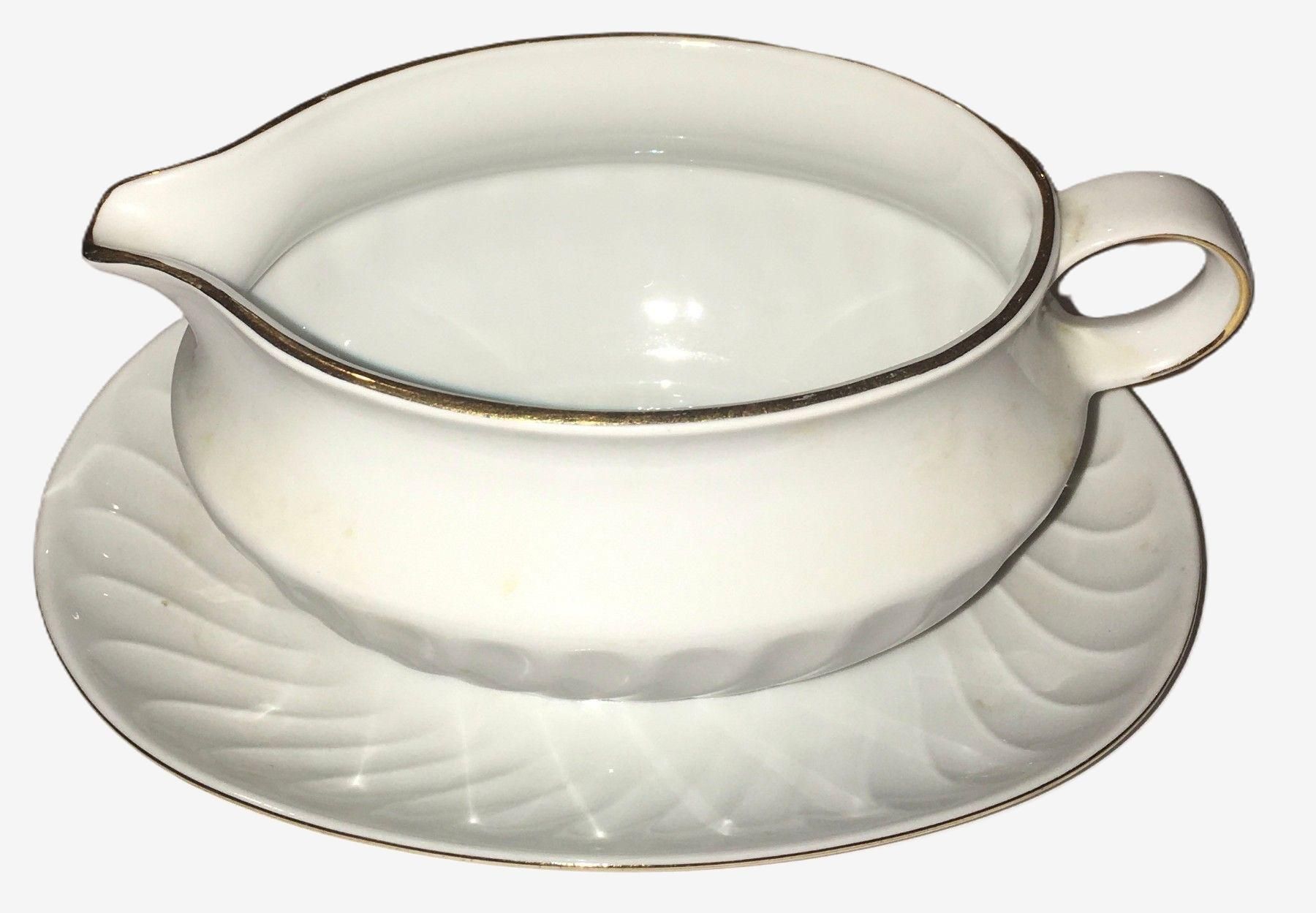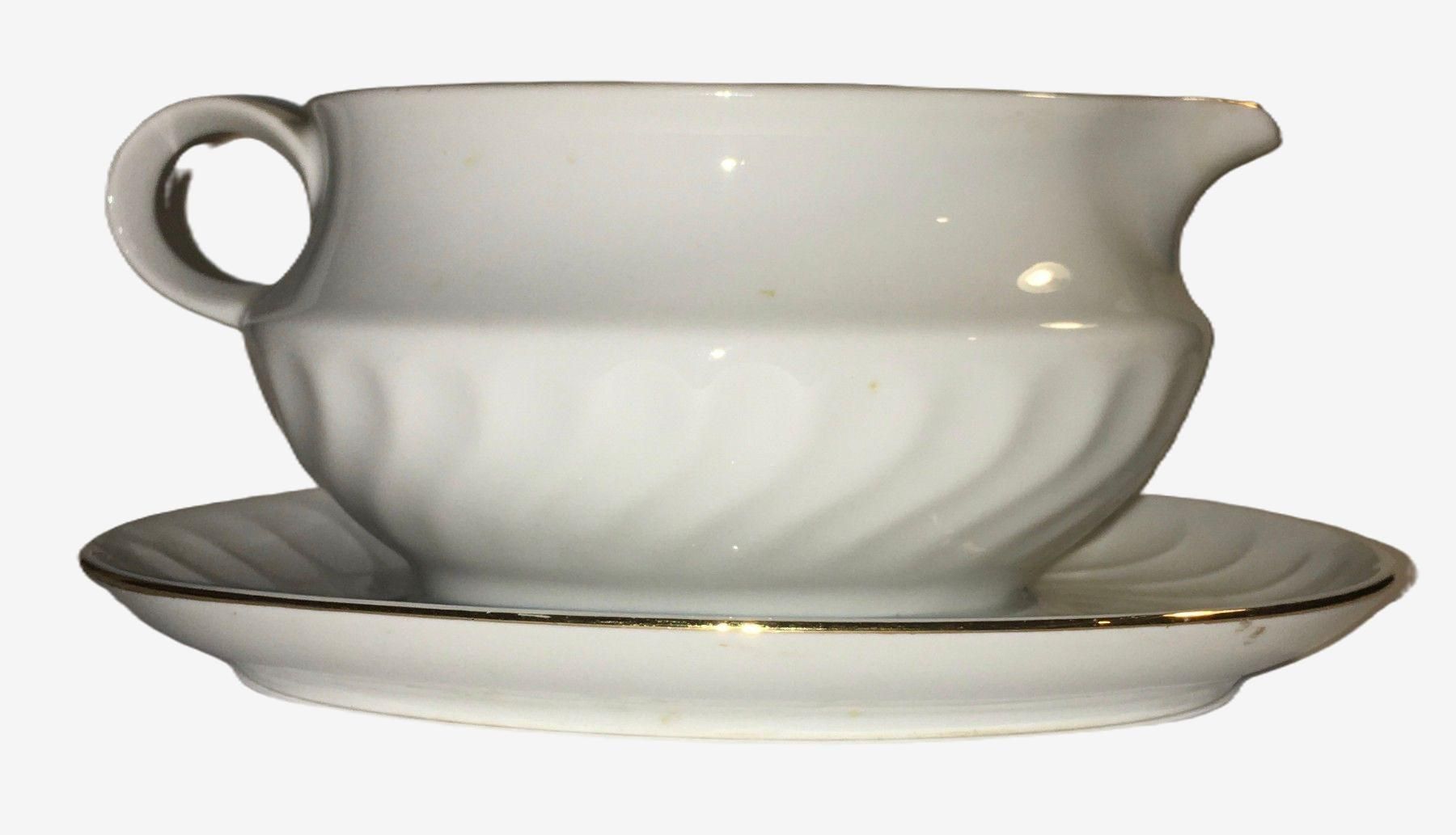 Edle Sauciere mit fest verbundener Unterplatte aus weißem Bavaria-Porzellan.