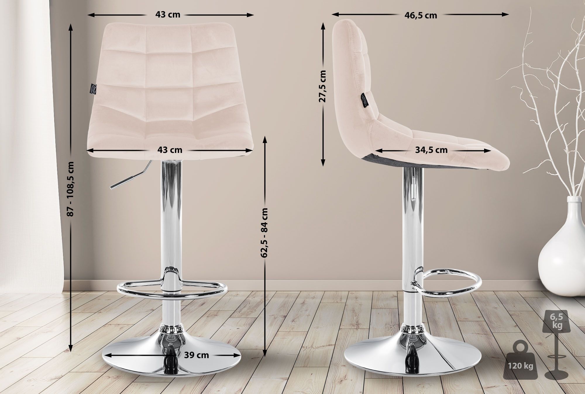 Barhocker 2er Set DUBAI Beige Samt Chrom Barhocker mit Lehne Barstuhl Tresenhocker