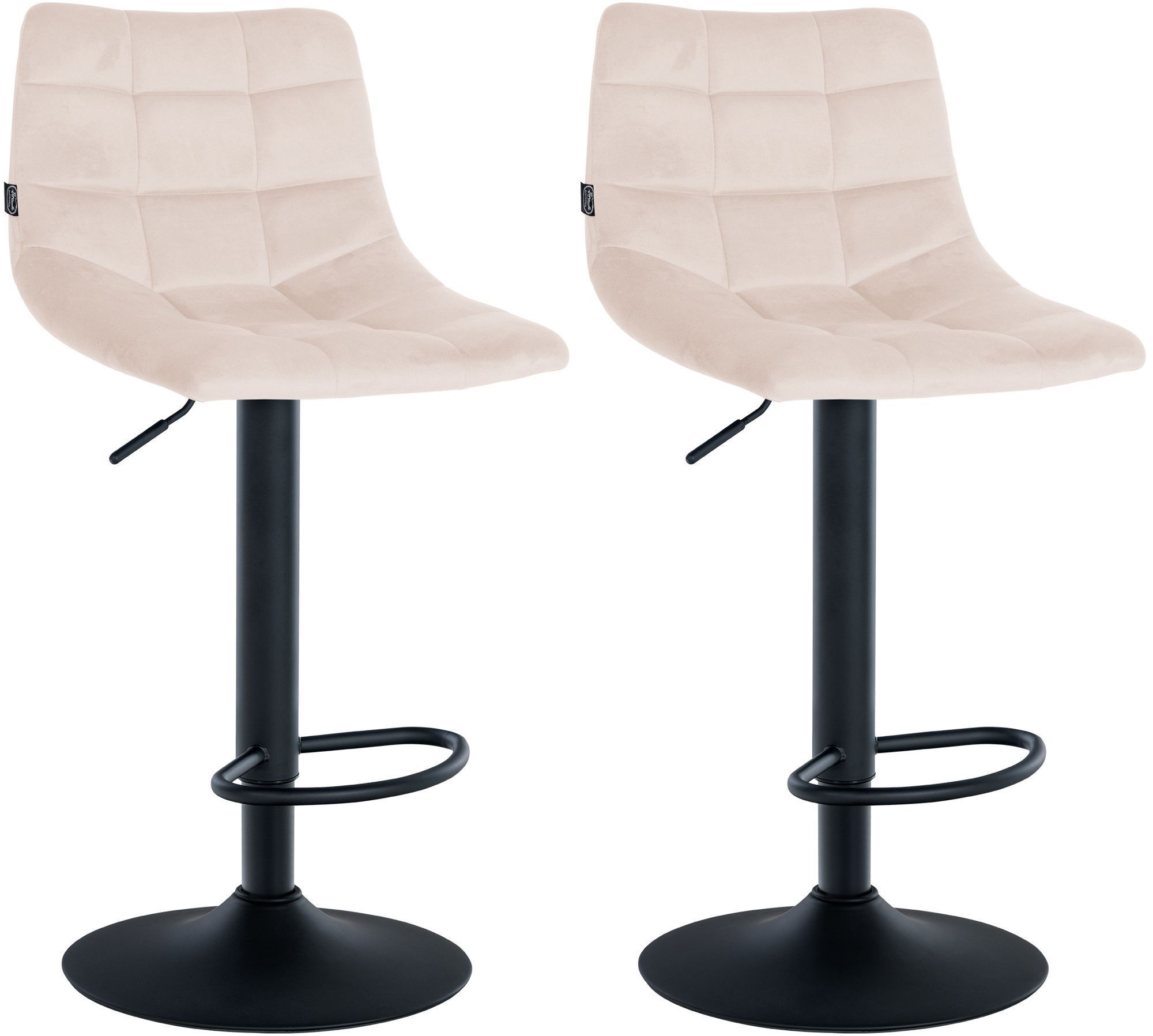 Barhocker 2er Set DUBAI Beige Samt Schwarz Barhocker mit Lehne Barstuhl Tresenhocker