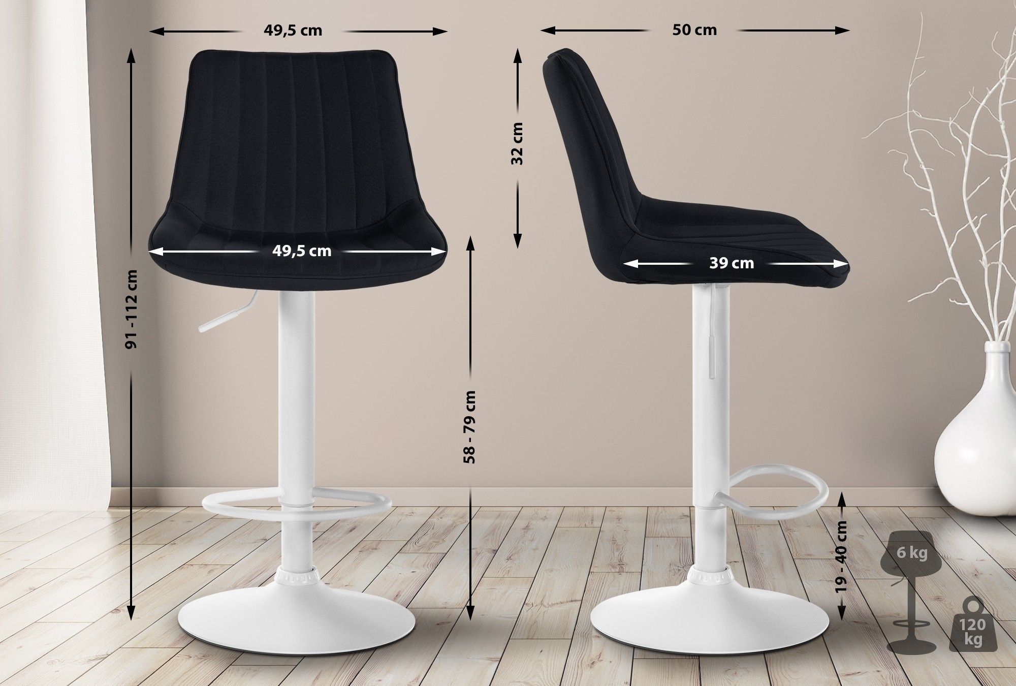 Barhocker 2er Set RIO Schwarz Stoff Weiß Barhocker mit Lehne Barstuhl Tresenhocker