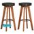 Barhocker FENI 2er Set Echtleder und Massivholz Akazie Schwarz Barstühle Küchenhocker