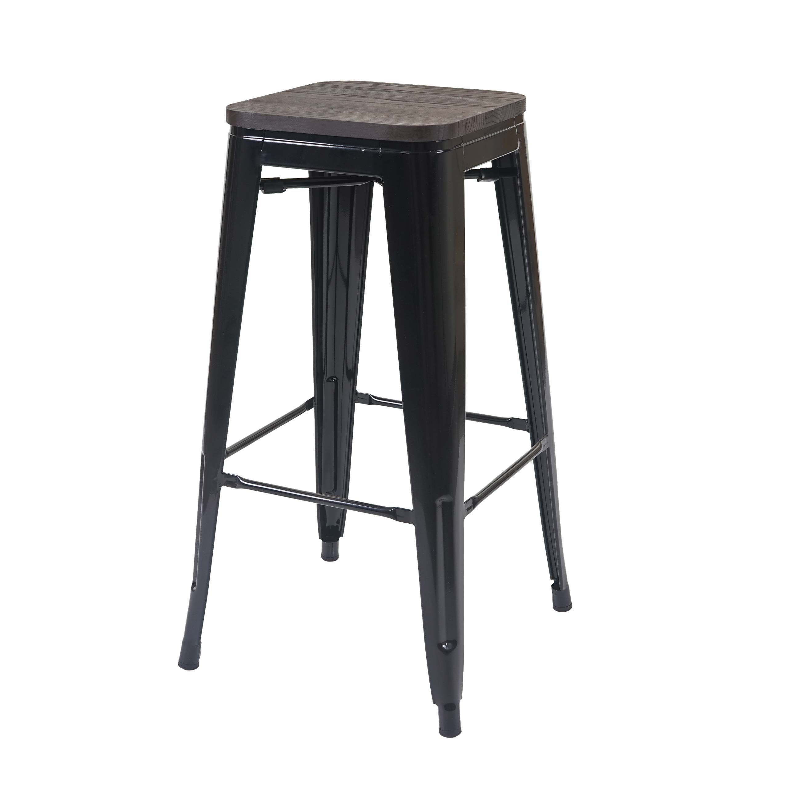 Mendler Barhocker HWC-A73 inkl. Holz-Sitzfläche, Barstuhl, Industriedesign stapelbar