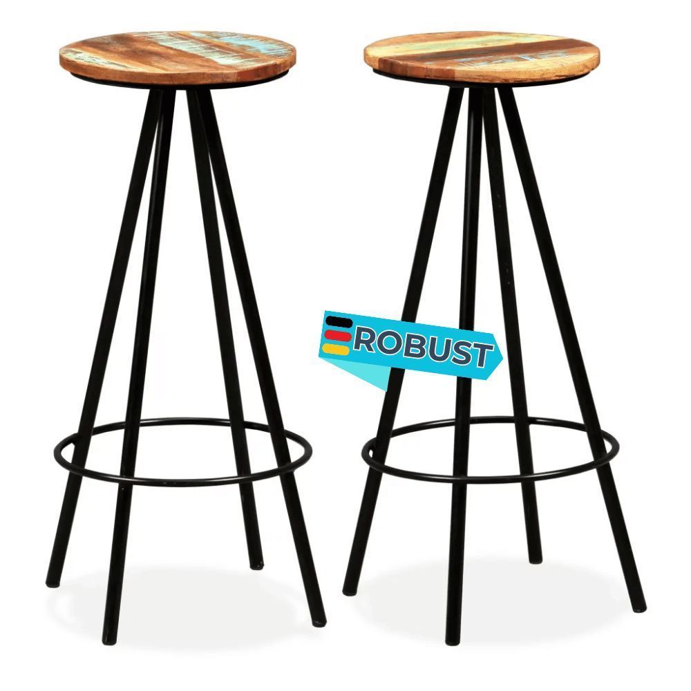 Barhocker LUKE 2er Set Massives Altholz Mehrfarbig Barstühle Küchenhocker