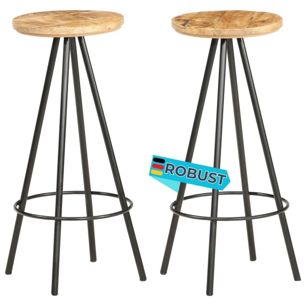Barhocker LUKE 2er Set Raues Mangoholz Braun Barstühle Küchenhocker Thekenhocker für