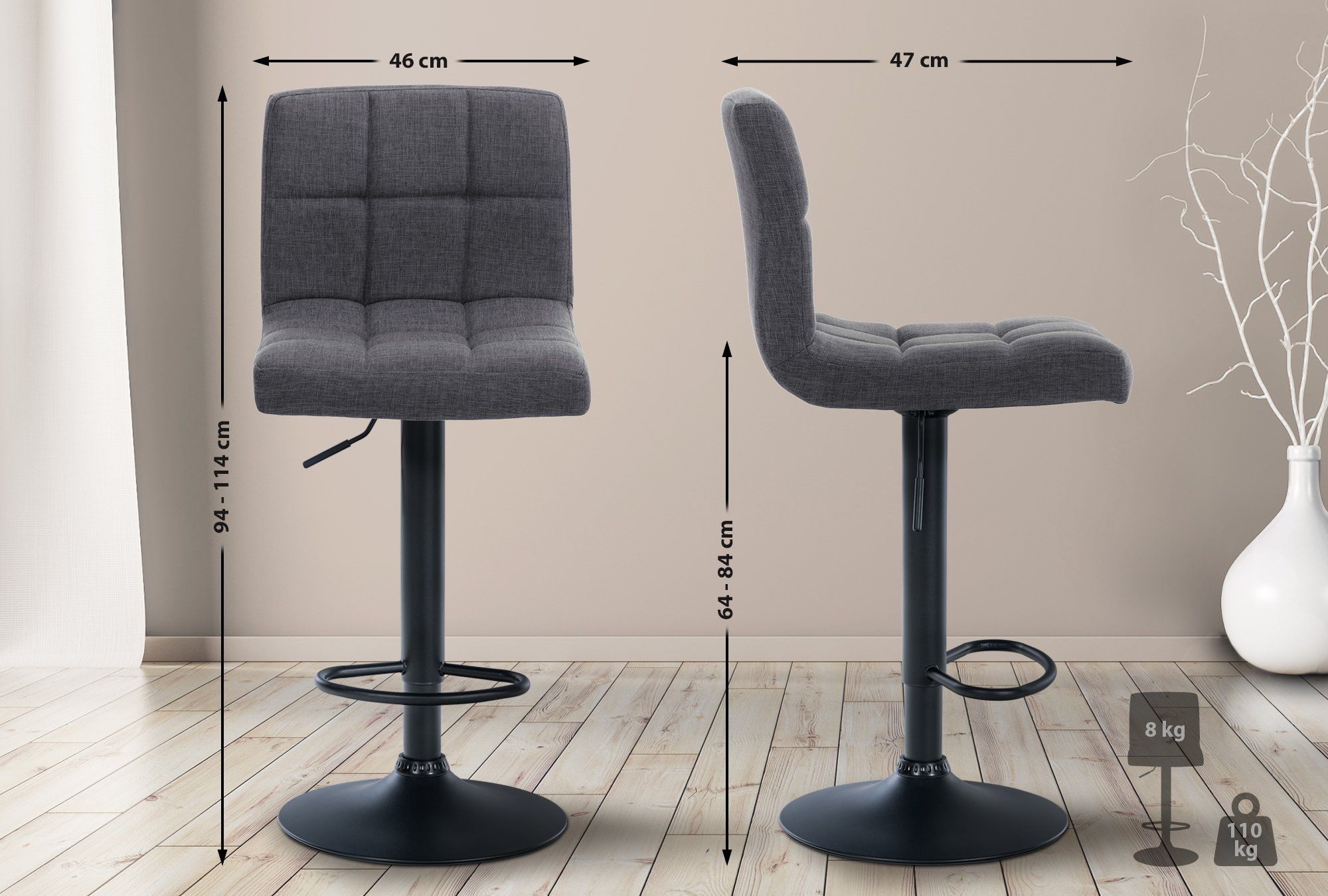 Barhocker MADRID Hellgrau Stoff Schwarz Barhocker mit Lehne Barstuhl Tresenhocker