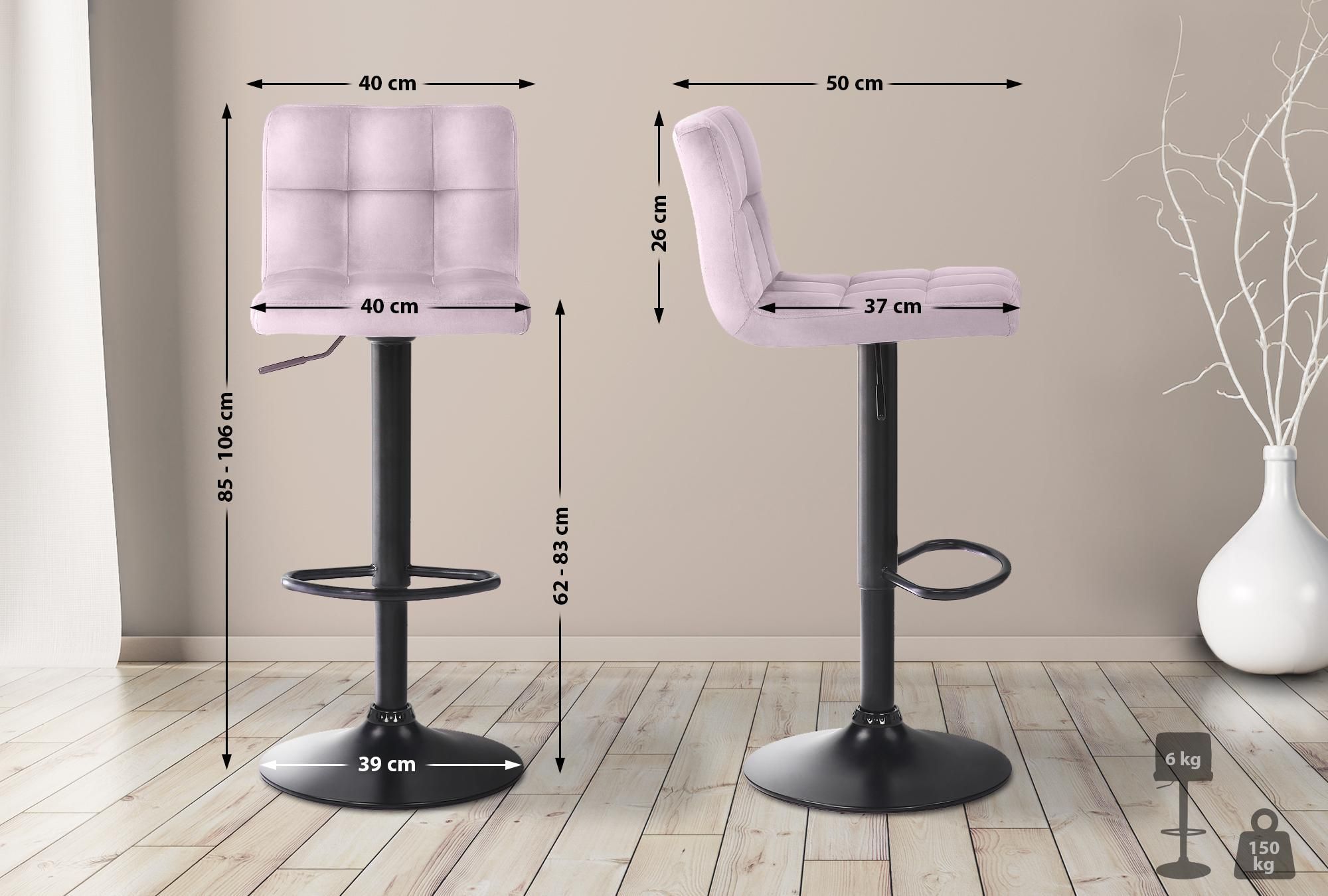 Barhocker RIVAN Samt Rosa 40x40x85 cm Barstuhl Mit Lehne Tresenhocker Tresenstuhl