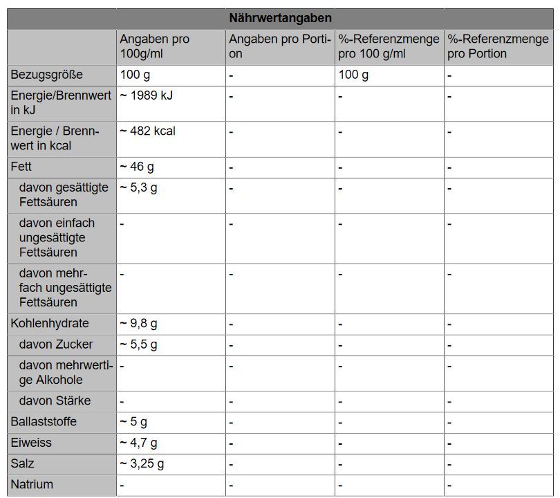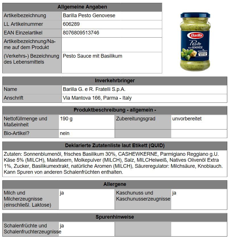 Lebensmittelspezifikationen: